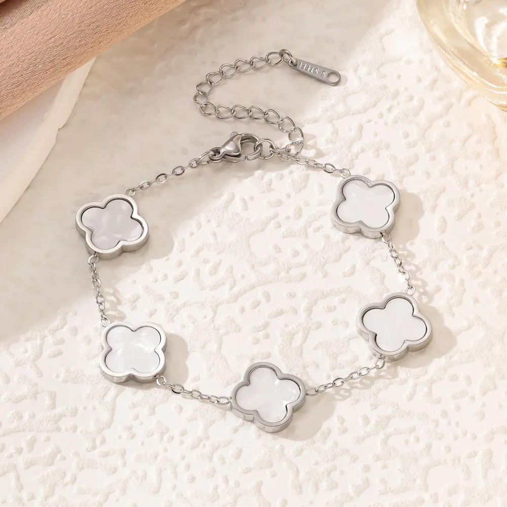 18K Gold Four Leaf Clover Bracelet Stainless Steel Non Tarnish Waterproof Factory Wholesale for Woman Men