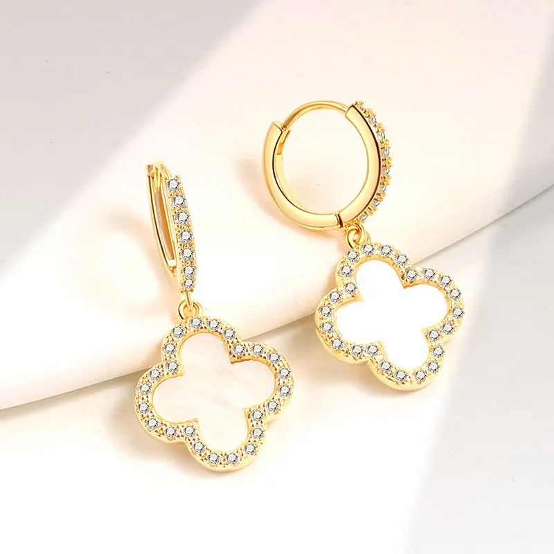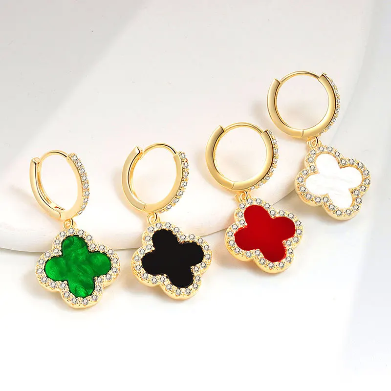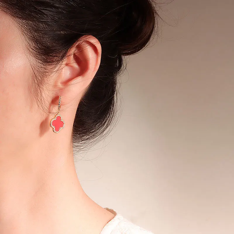 Vintage Earrings Four-leaf Clover Fashion Hoop Earrings Temperament Gold Earrings for Women