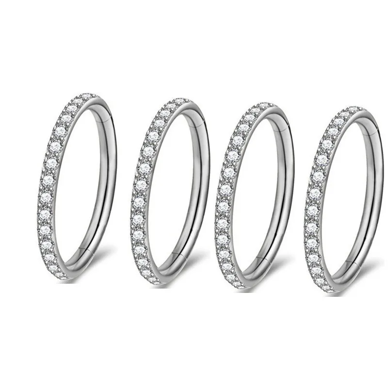 Wholesale Stainless Steel 316L Punk 16G Piercing Jewelry CZ Segment Clicer Hoop Ring Cartilage Daith Conch Helix Earring