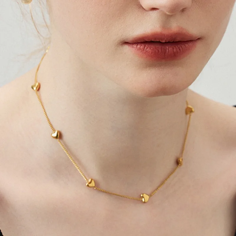 New 18K Gold Plated Tarnish Free Stainless Steel Trendy Anniversary Chains Cute Polished Love Dangle Pendant Necklace