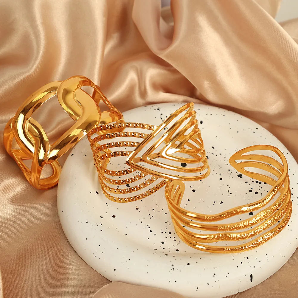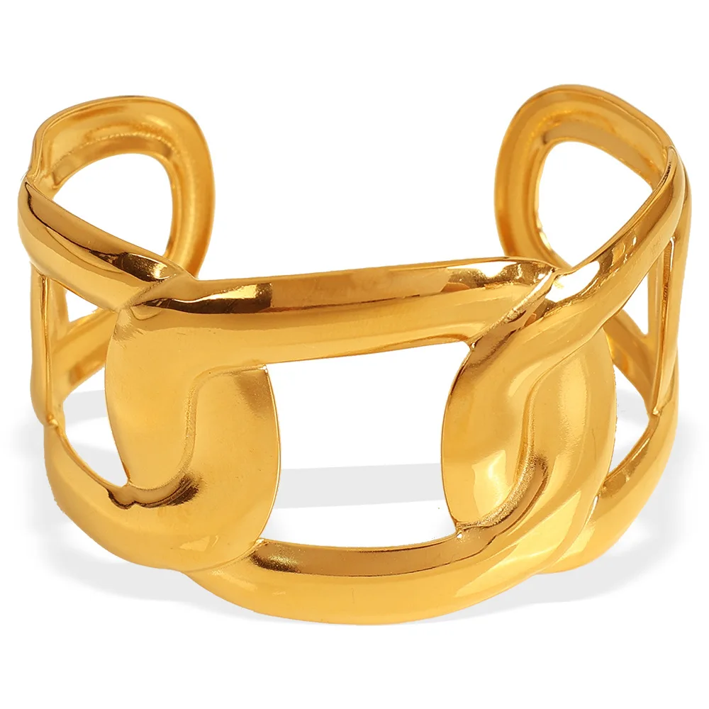 Fashion Design Trendy Hollow Cuff Bracelet Bangle 18k Gold Plated PVD Waterproof Stainless Steel for Women Engagement Jewelry