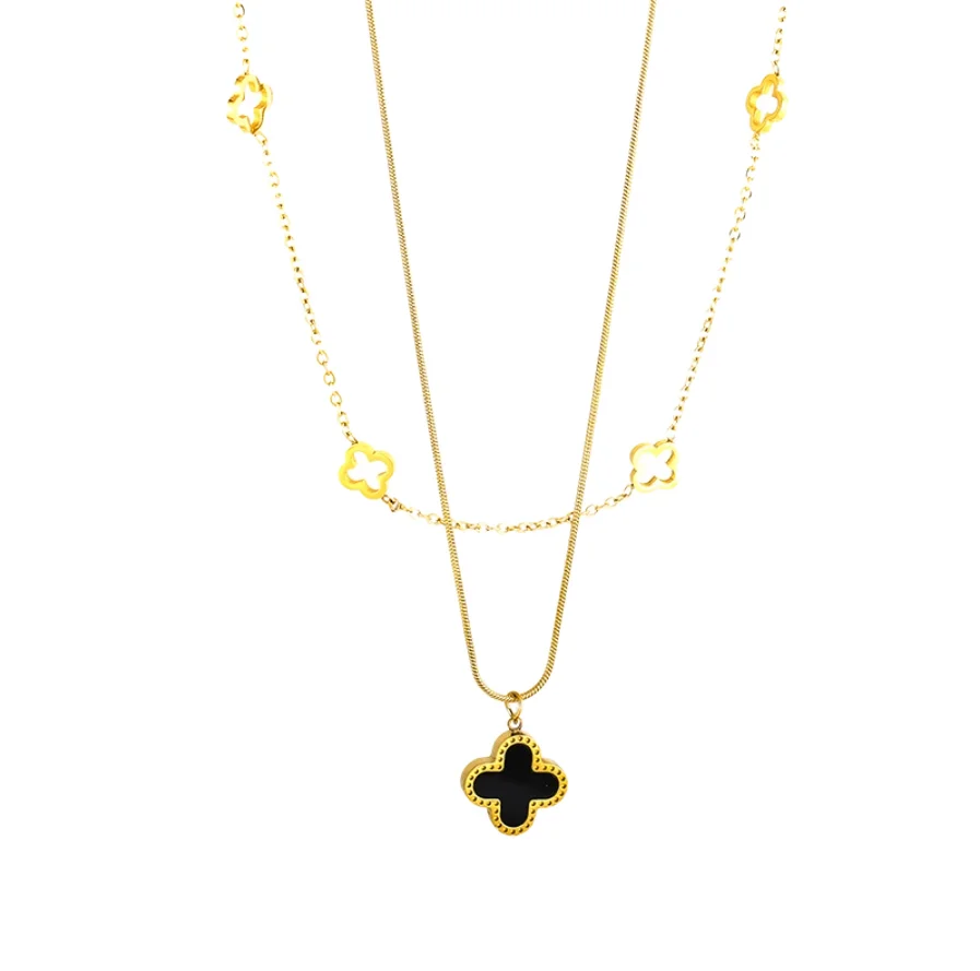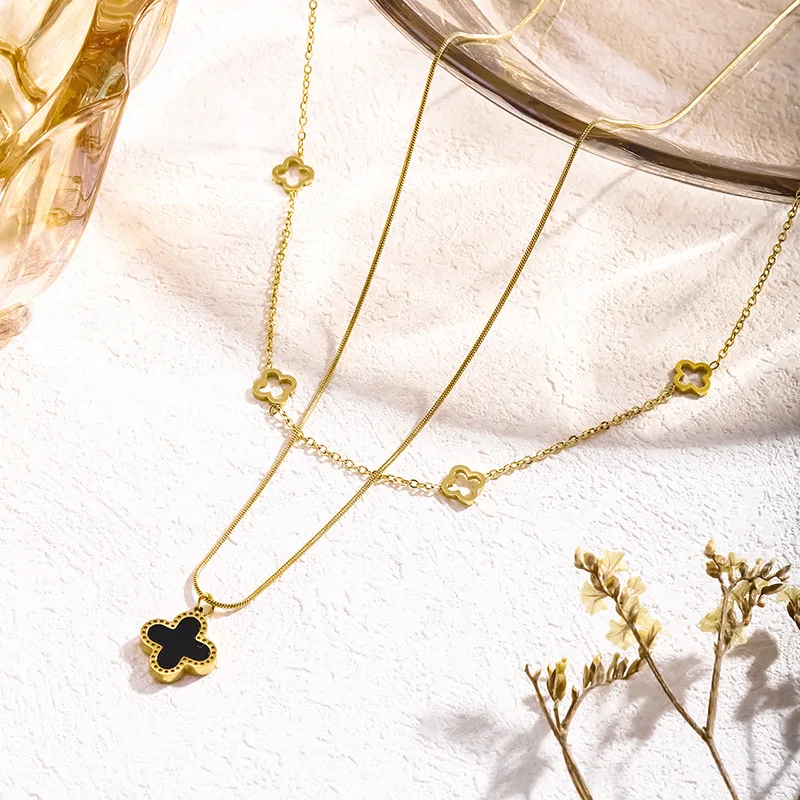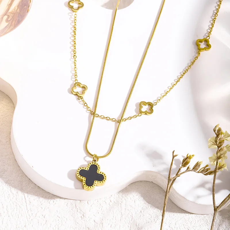 Four Leaf Clover Necklace18k Gold Plated Stainless Steel Necklace Jewelry Women Double Layer