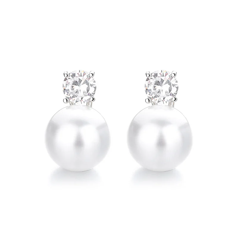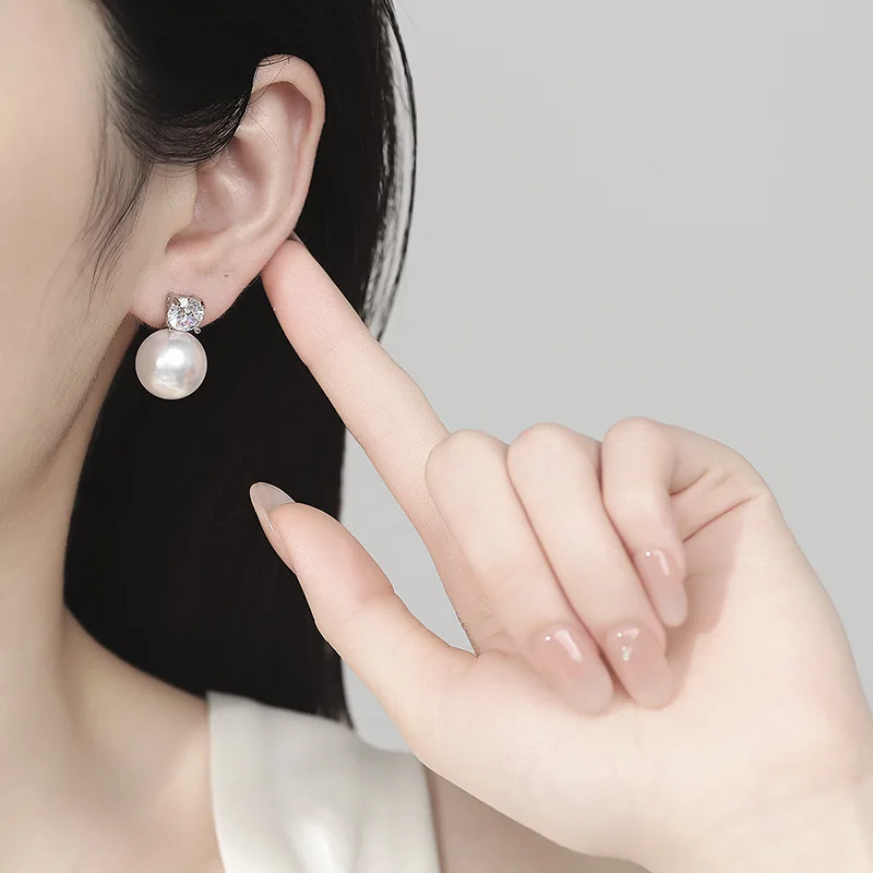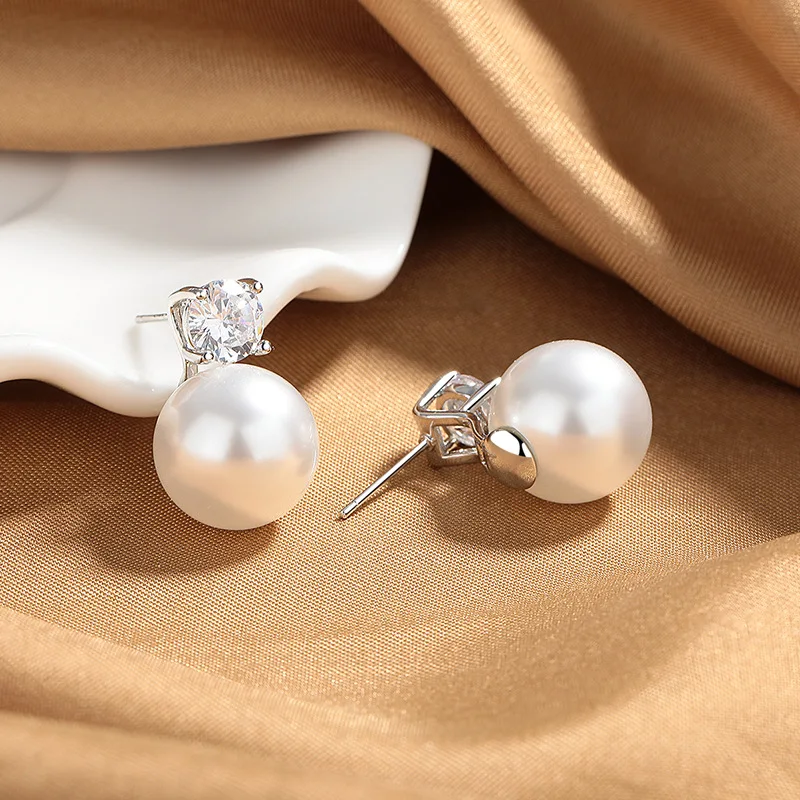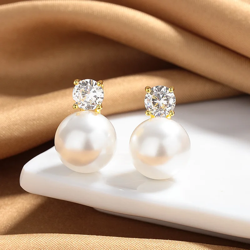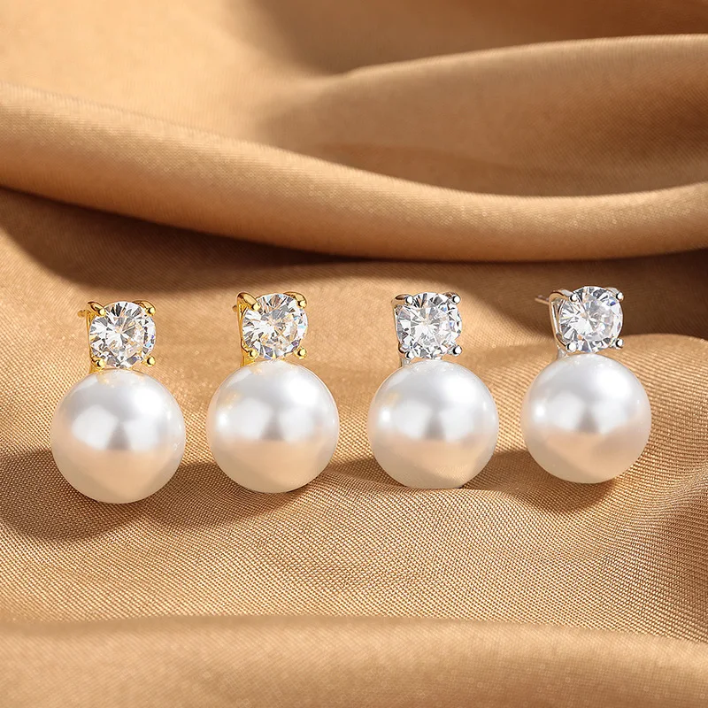 Large Imitation Pearl Stud Earrings for Women Trendy and Elegant Adorned with Zircon Stones New Jewelry Collection