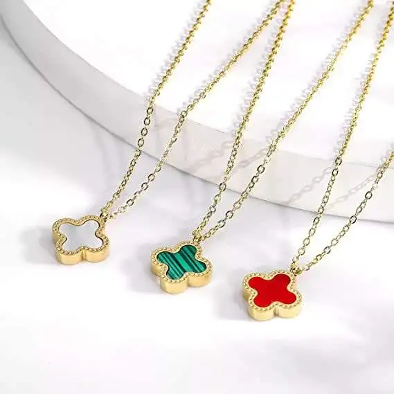 High Quality Trendy Shell Four Leaf Clover Necklace 18K Gold Plated Stainless Steel Unisex Factory Wholesale