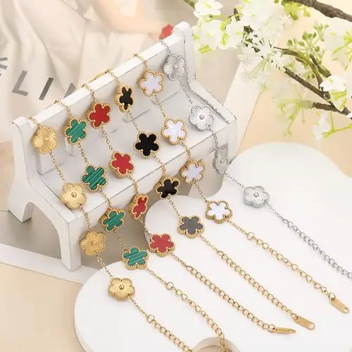 Four Leaf Clover Bracelet for Women 18K Gold Plated Stainless Steel Lucky 4 Leaf Gold Link Bracelet Jewelry Gift for Women
