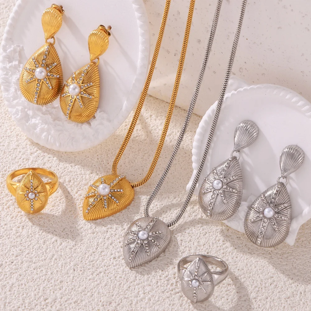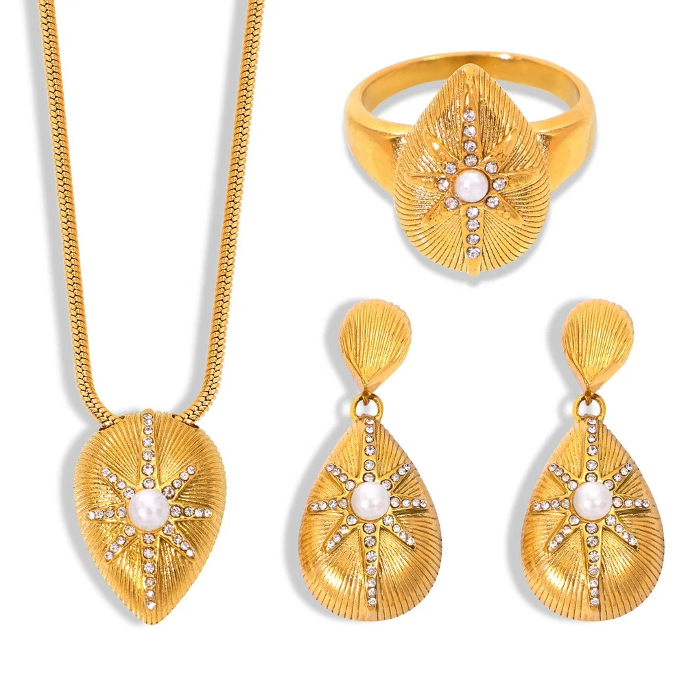 Ilona Elegant French Style Stainless Steel Jewelry Set Cold Style Personality with Water Drop Star Diamond Design for Wedding