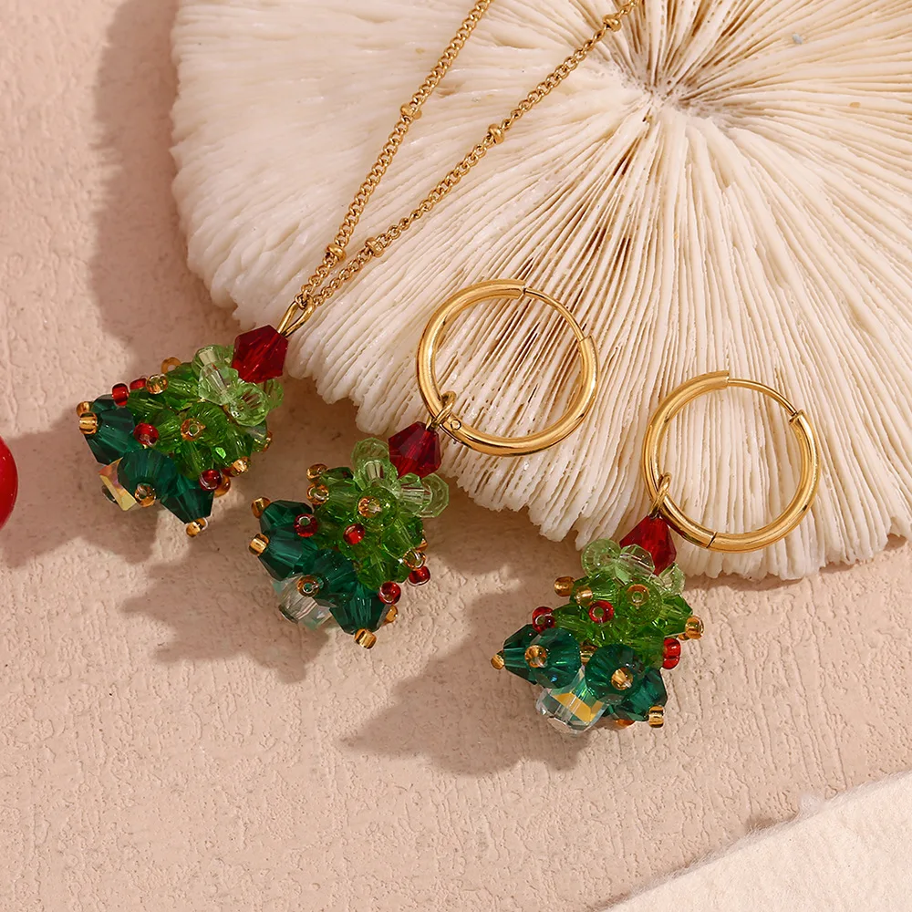 Ilona Christmas Style Stainless Steel 18K Gold Plated Necklace Earring Set Crystals Jewelry Set for Women Christmas Parties Gift