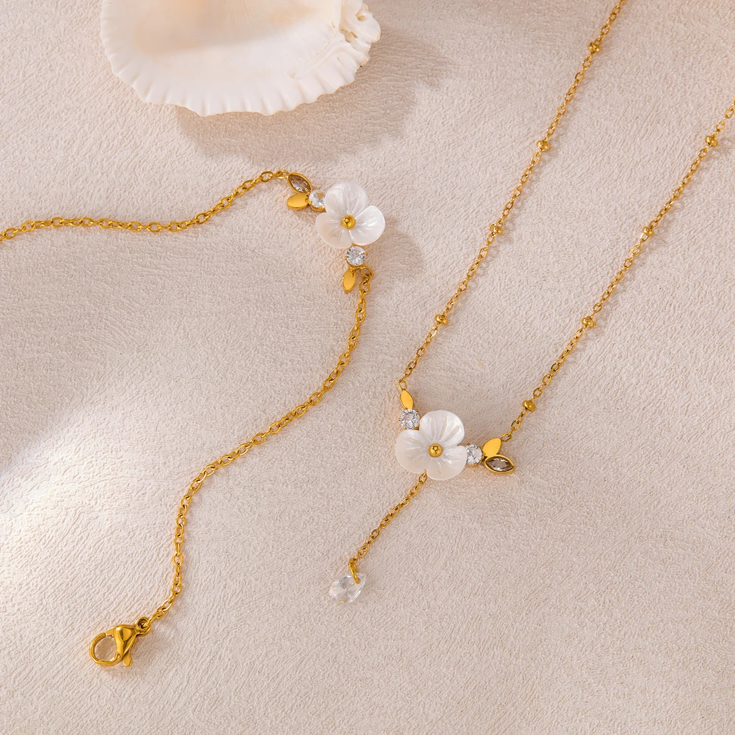 Ilona Camellia Zircon Stainless Steel Bracelet Necklace Fashion Design 18k Gold Plated Jewelry Sets Accessories for Anniversary