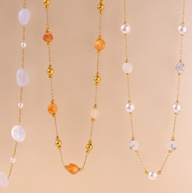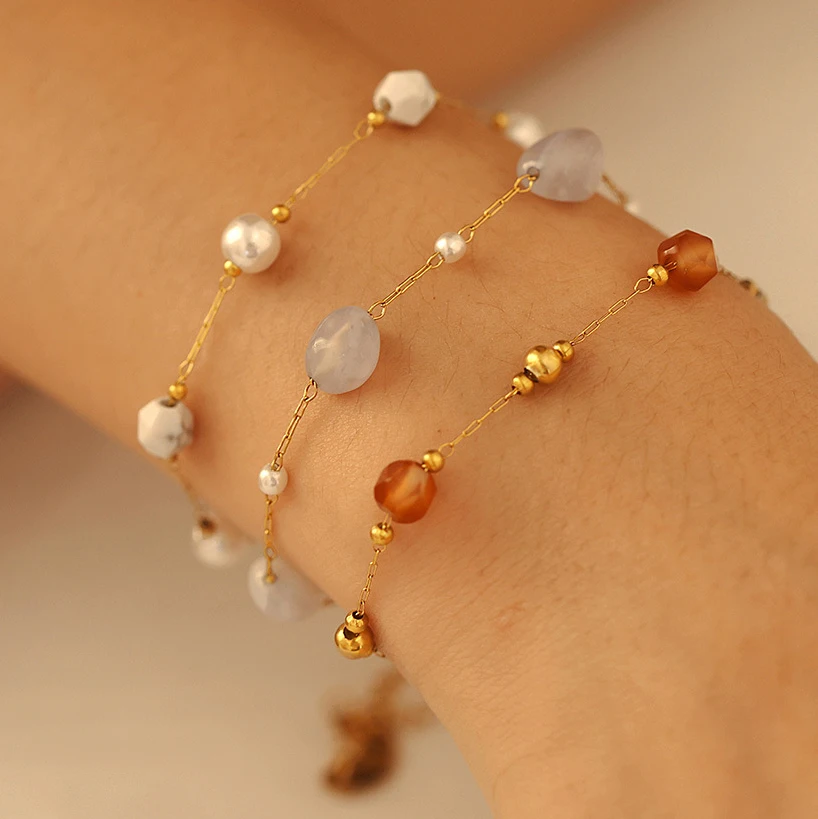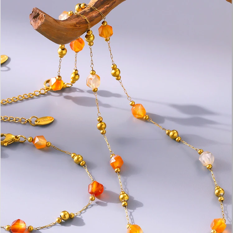 Ilona Fashion 18k Gold Plated Jewelry Set for Women Sweet Style Natural Stone Beads Necklace Bracelet for Party Engagement