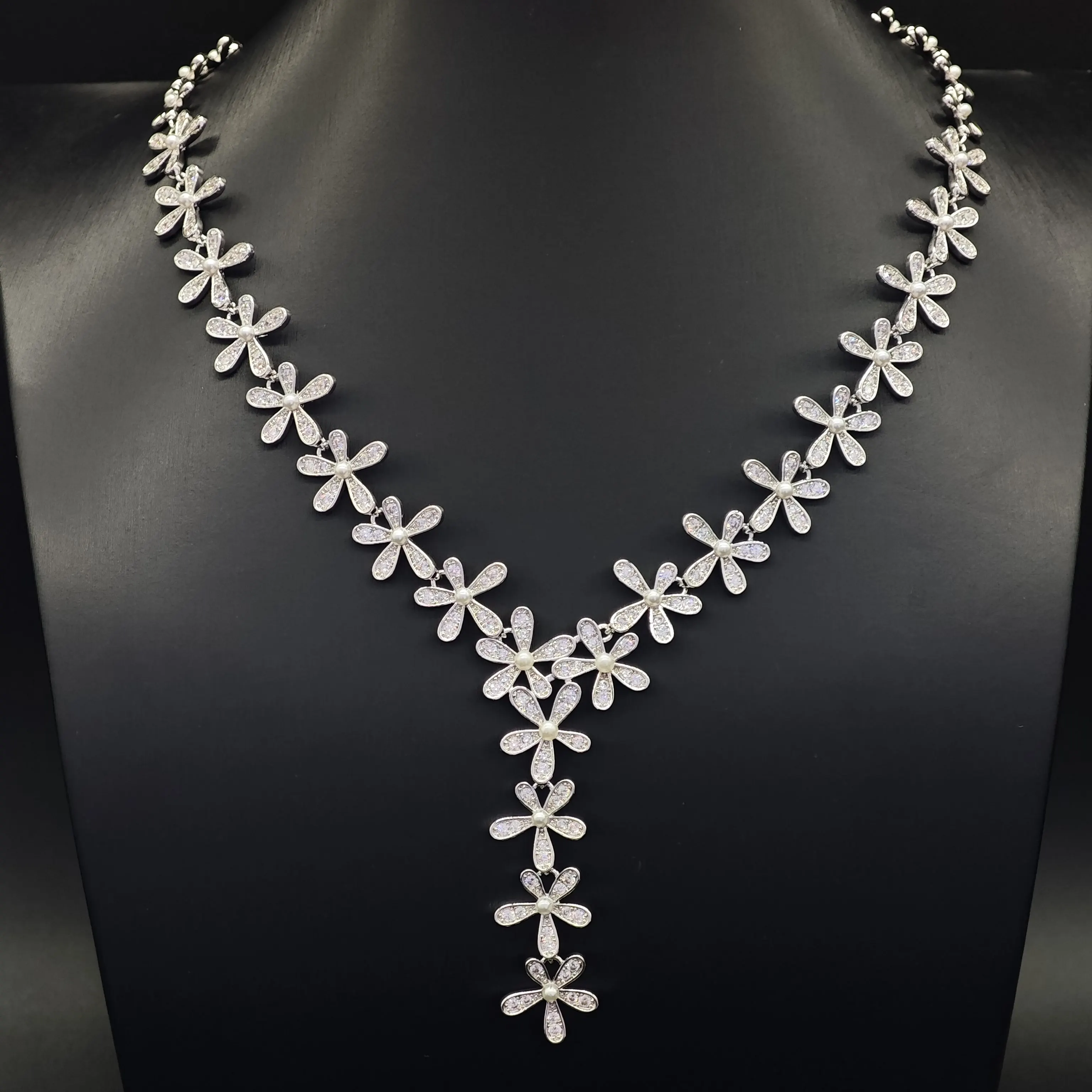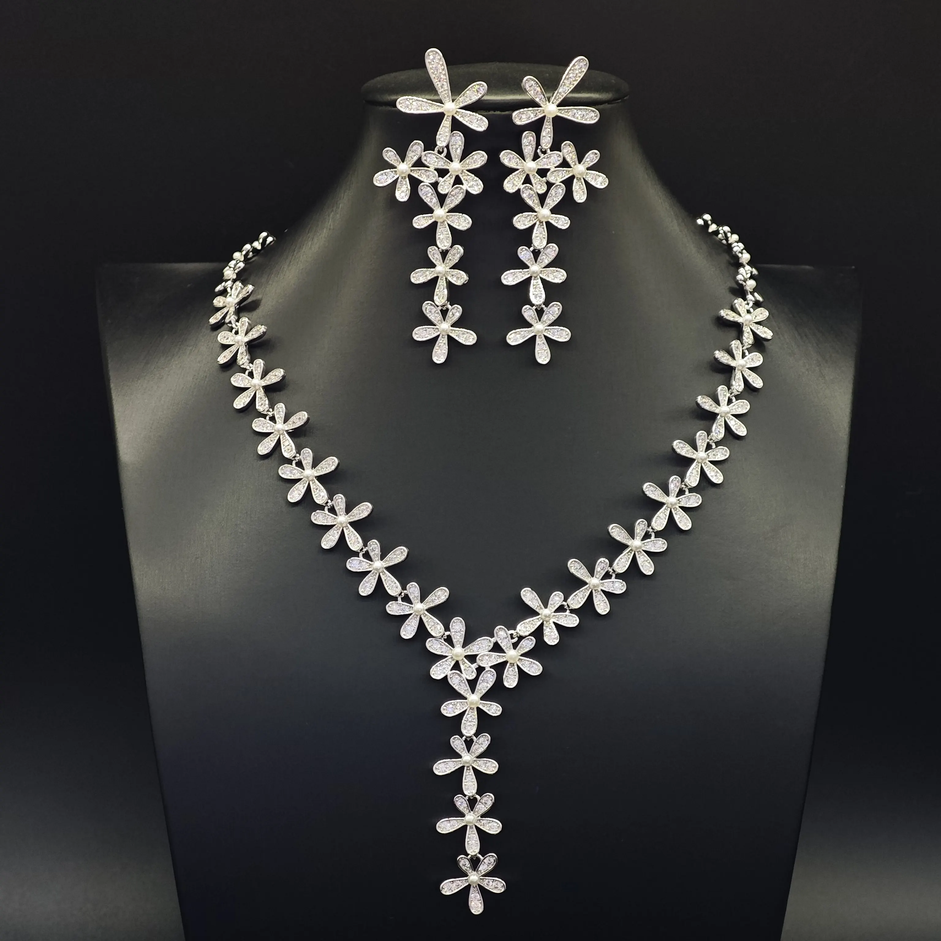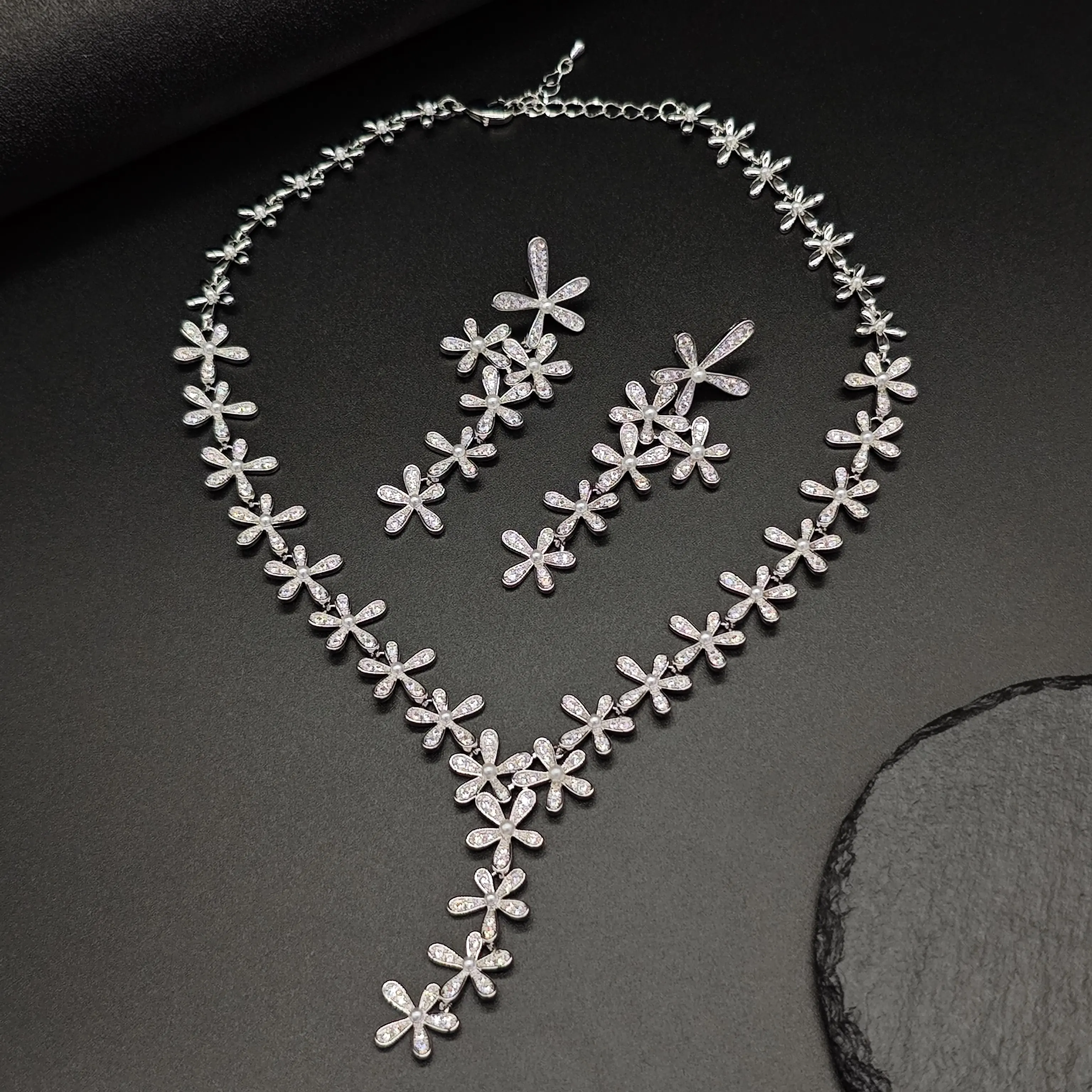 Ilona Women's Flower Copper Necklace and Earring Set New Arrival Fashion Jewelry Set with Zircon for Wedding Parties or Gifts