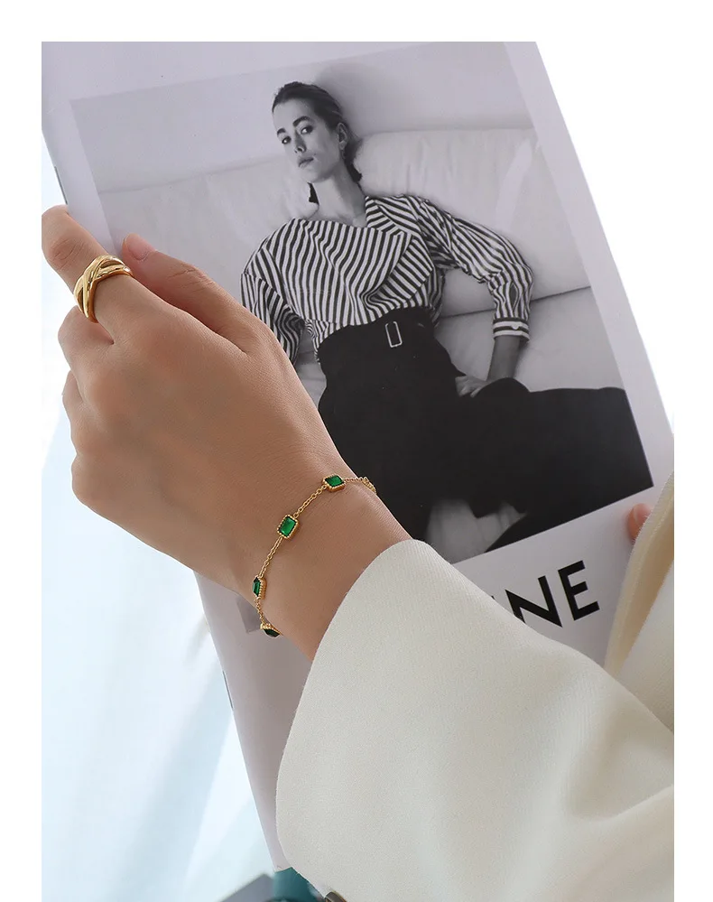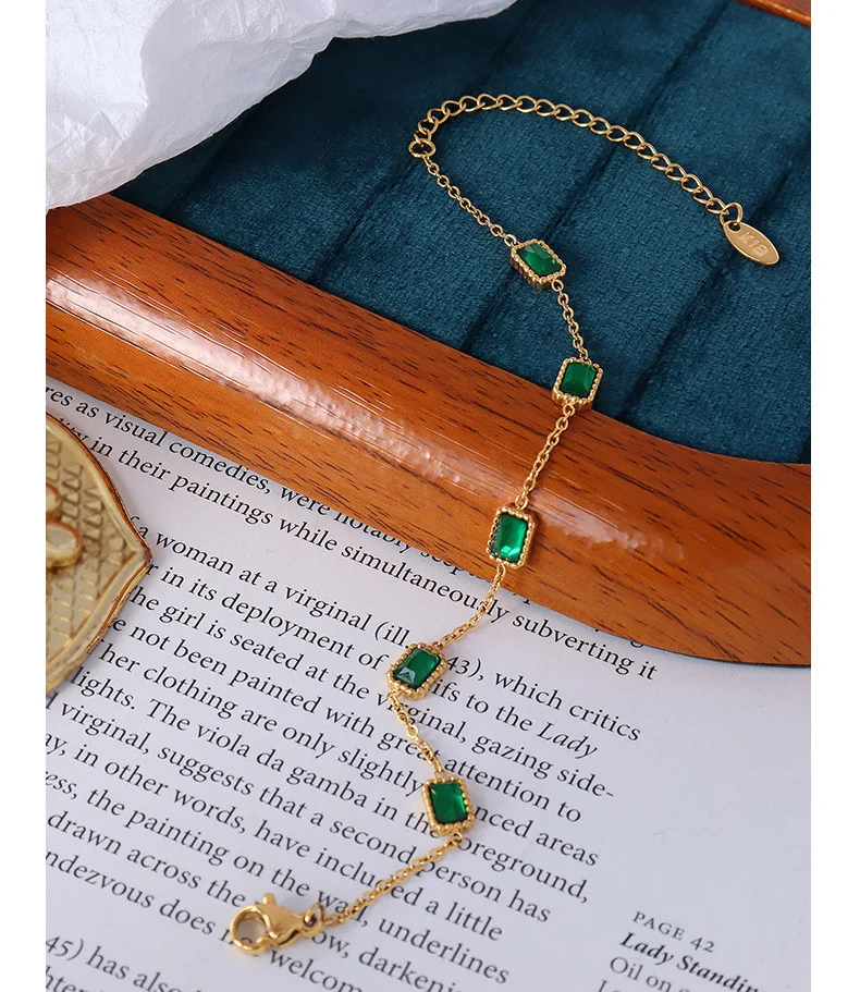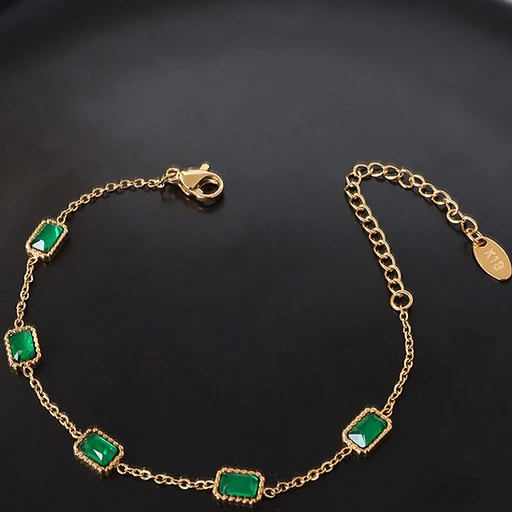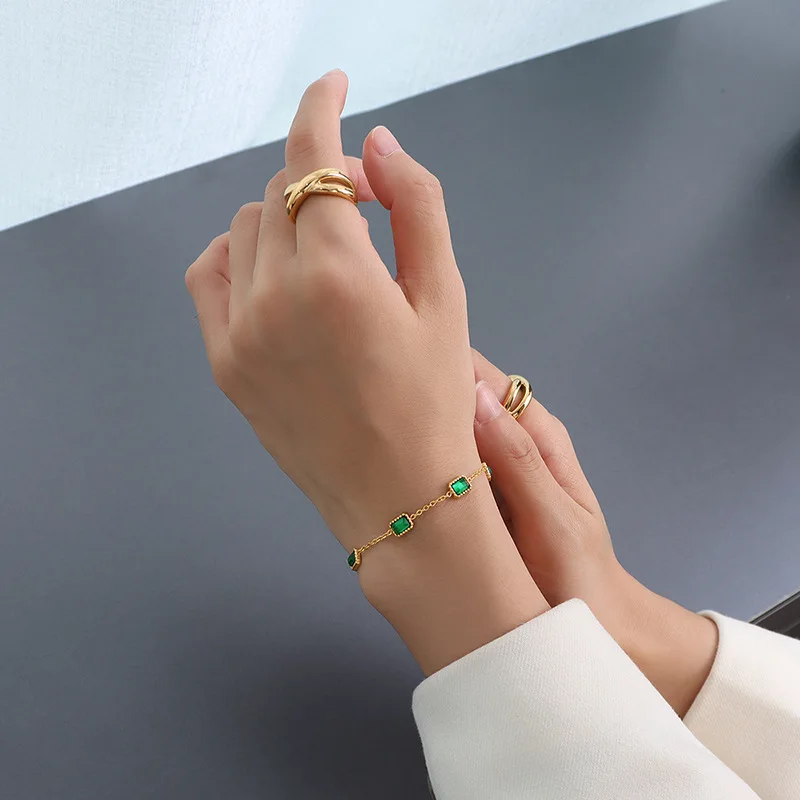 Ilona Simple Design Stainles Steel Bracelet Fashionable Emerald Green Zircon Bracelets Luxury Gold Plated Woman Bracelet Jewelry