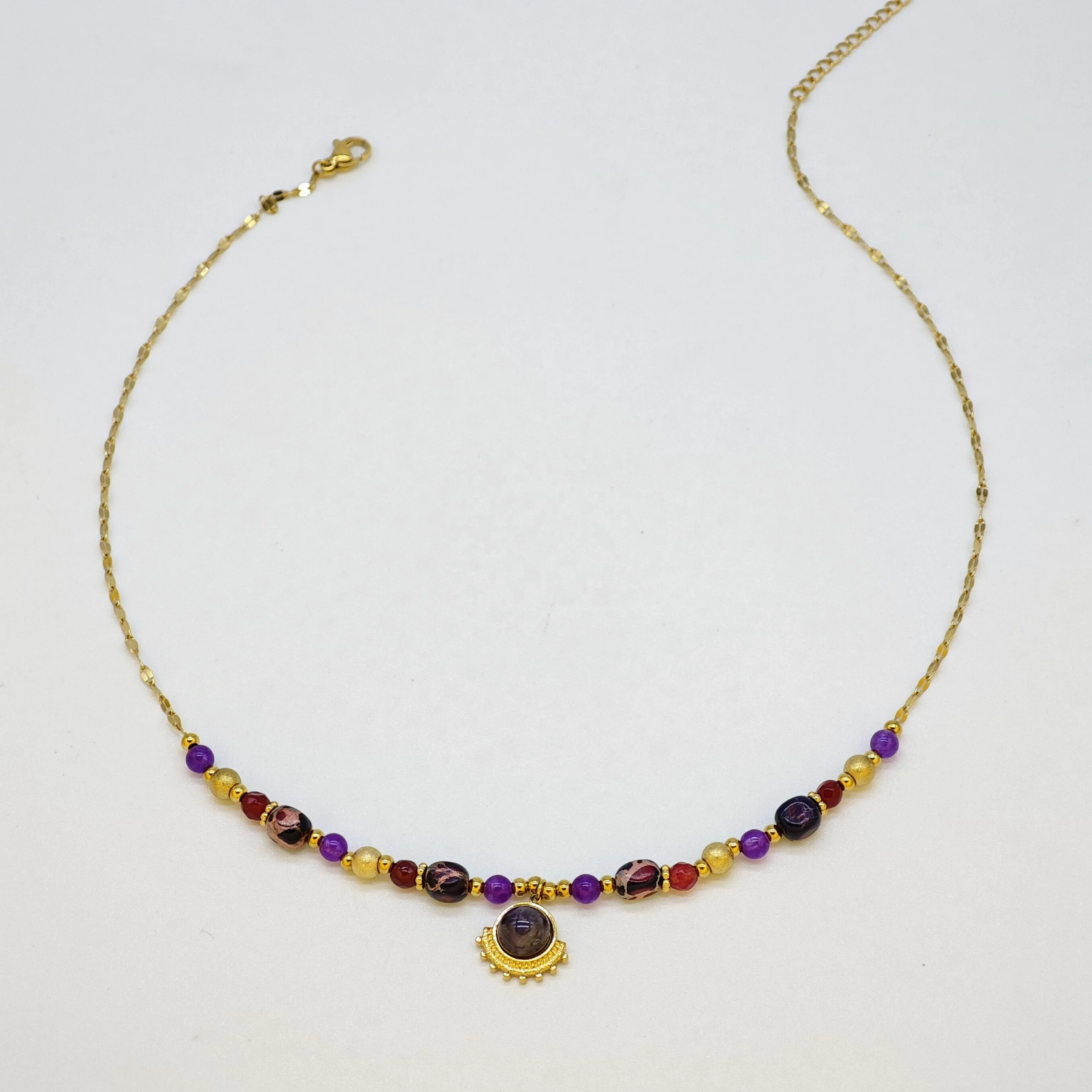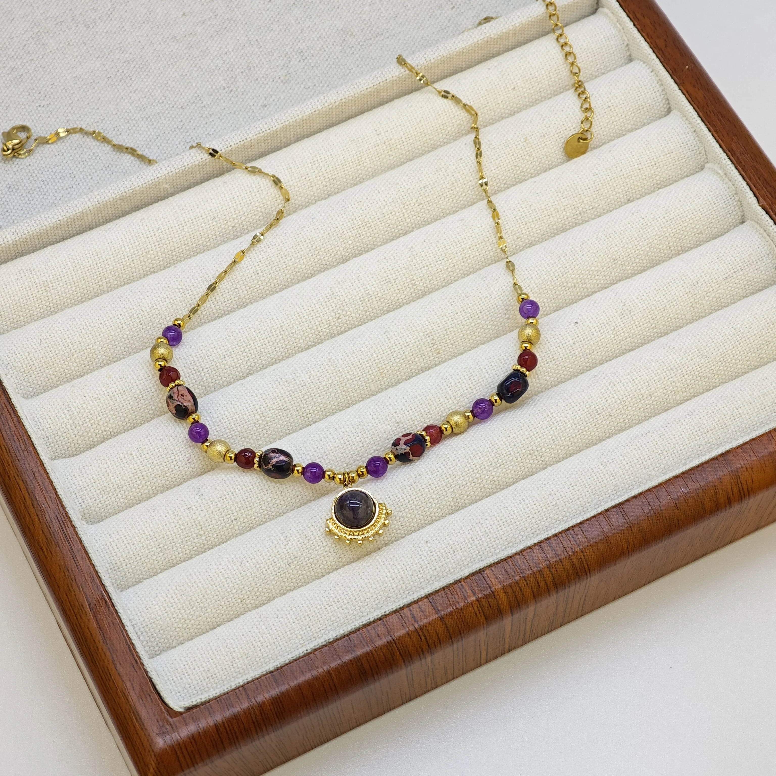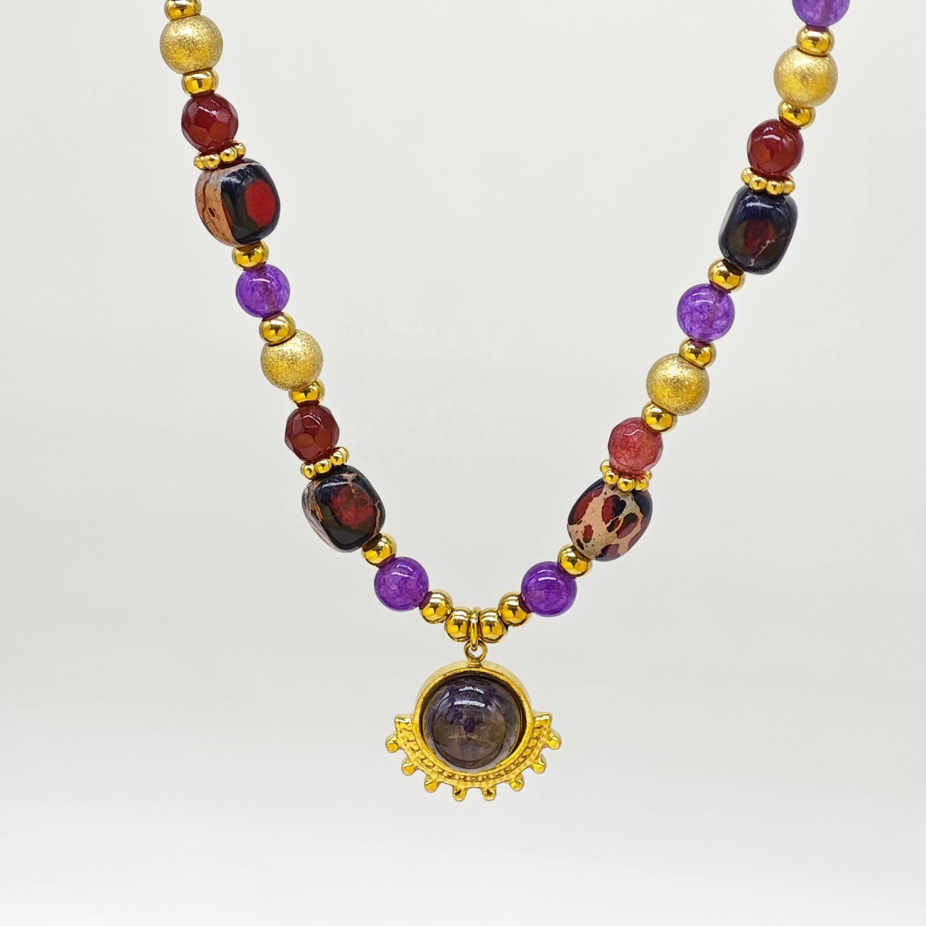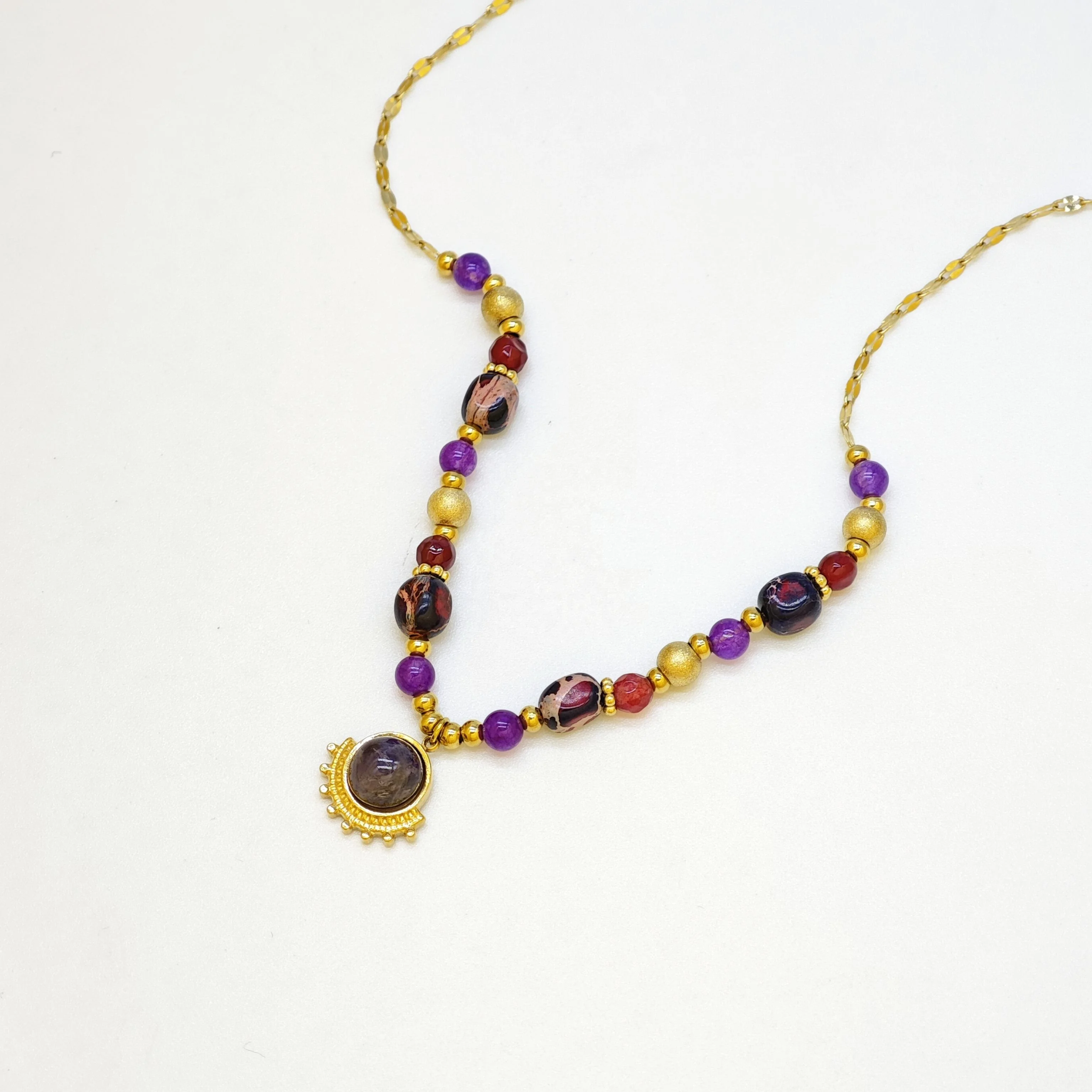 Fashion Women's Stainless Steel Necklace with Natural Pearl Beads Gold Plated and Special Religious Design Jewelry Customizable