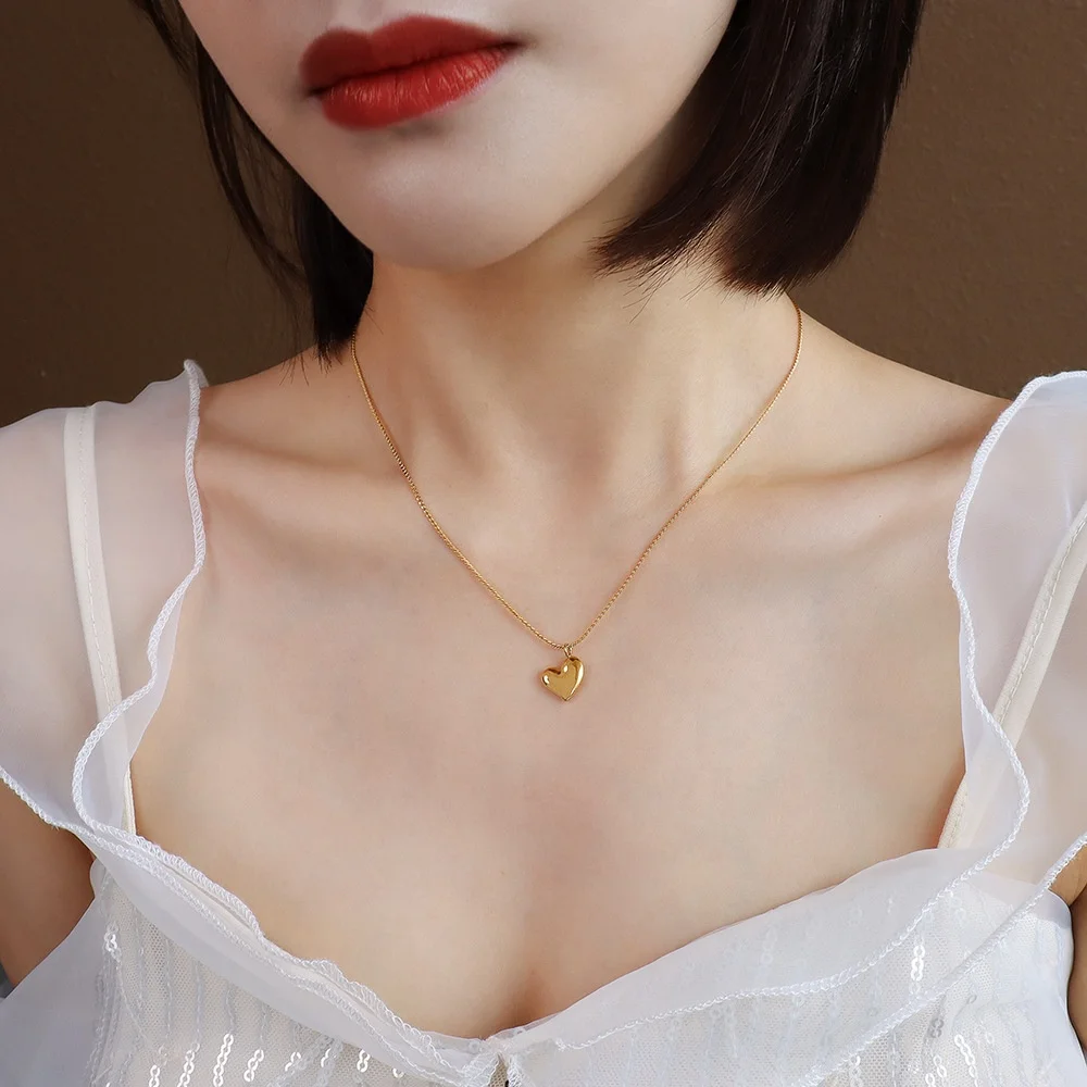 Ilona Korea Fashion Stainless Steel Plated 18k Gold Plated Jewelry Temperament Heart love Pendant Necklace Female Jewelry gift