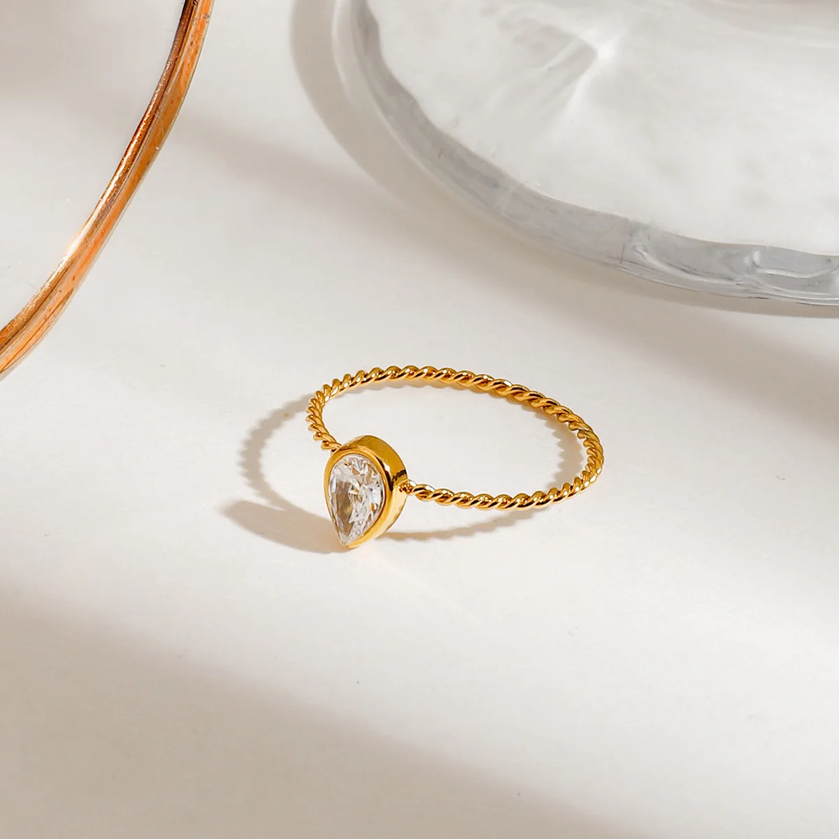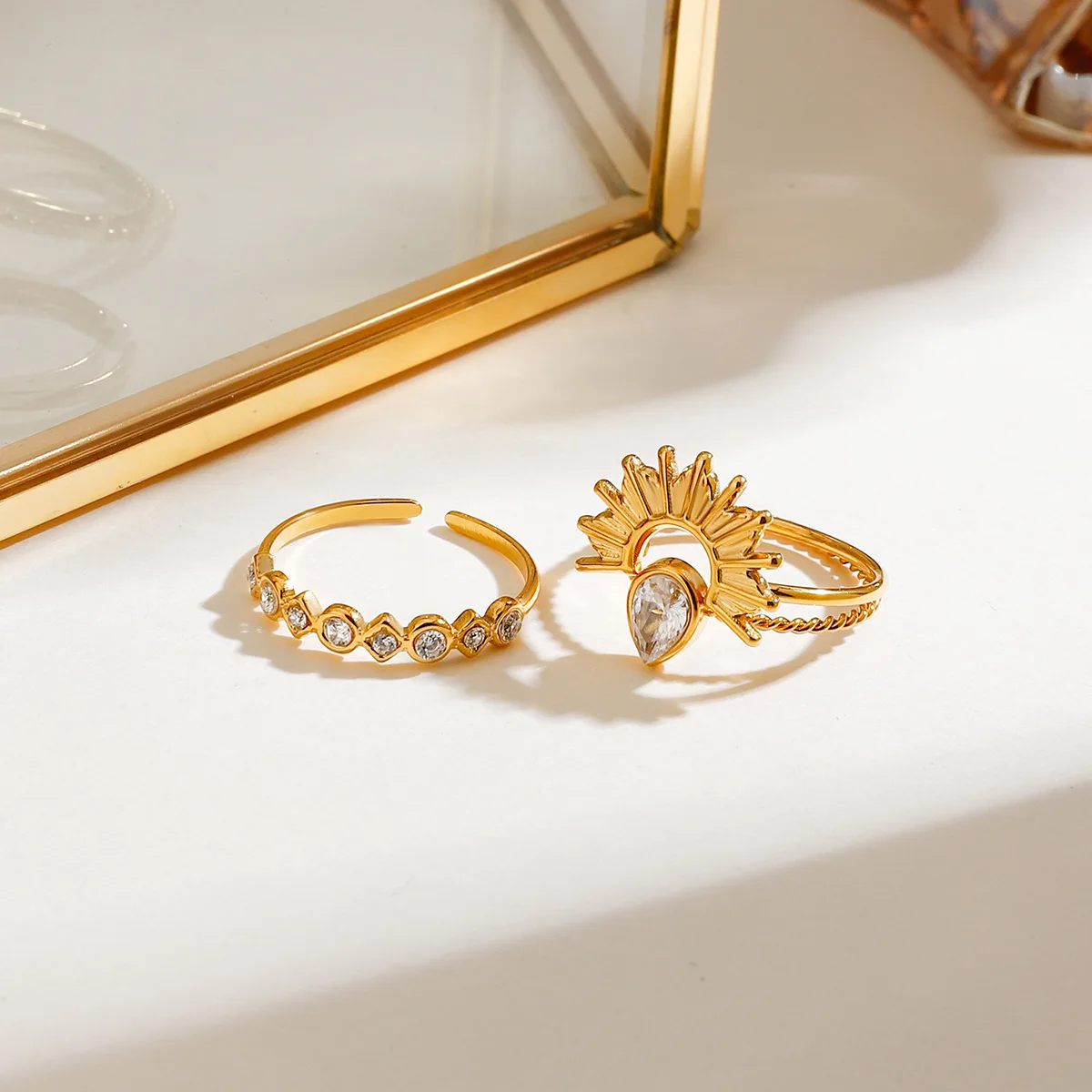 Ilona New Arrival Minimalist 18K Gold Lated Stainless Steel Ring Three Layer Cubic Zircon Adjustable Rings for Women