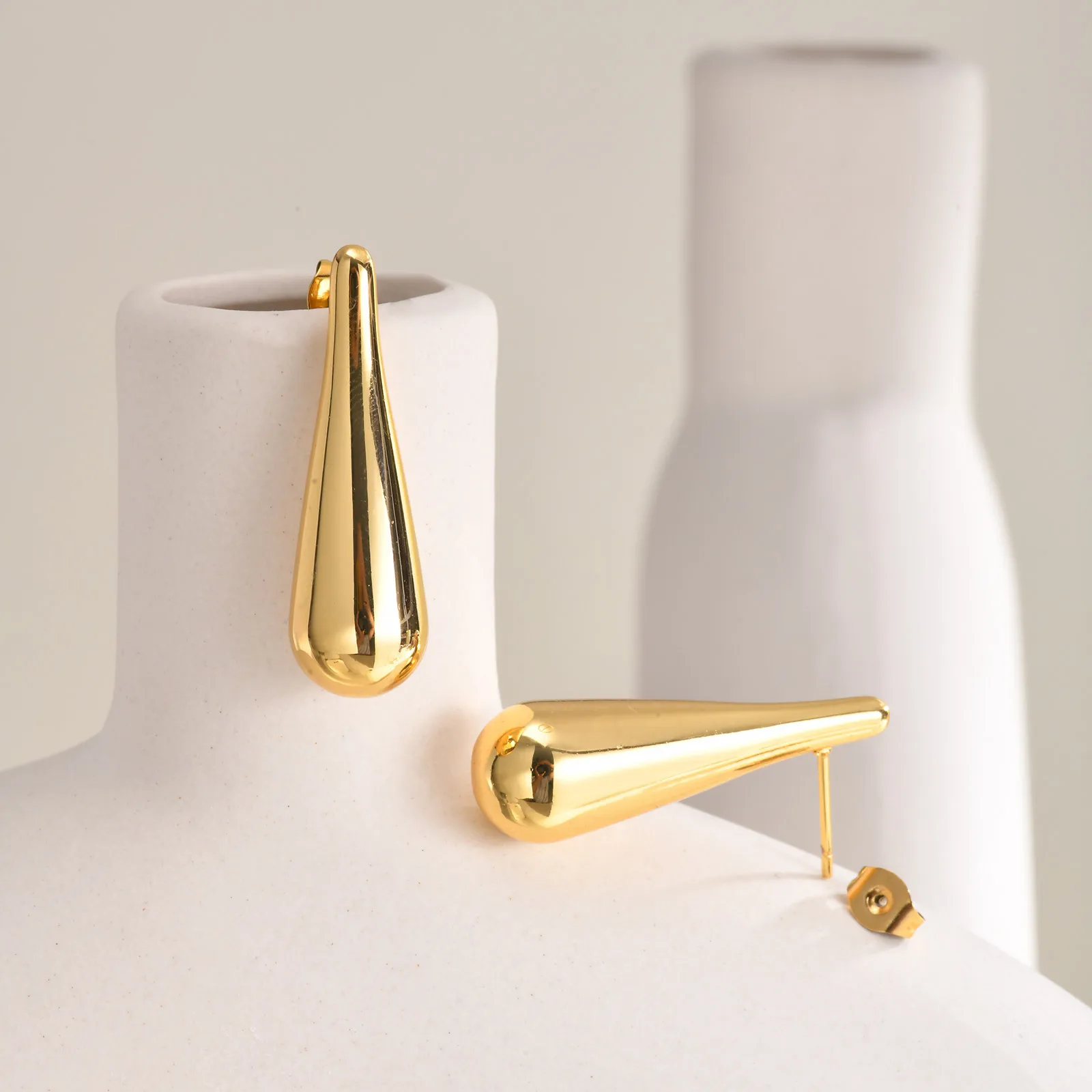 Ilona Wholesale Price 18k Gold Plated Vintage Long Water Drop Studs Earrings Stainless Steel Earring for Women