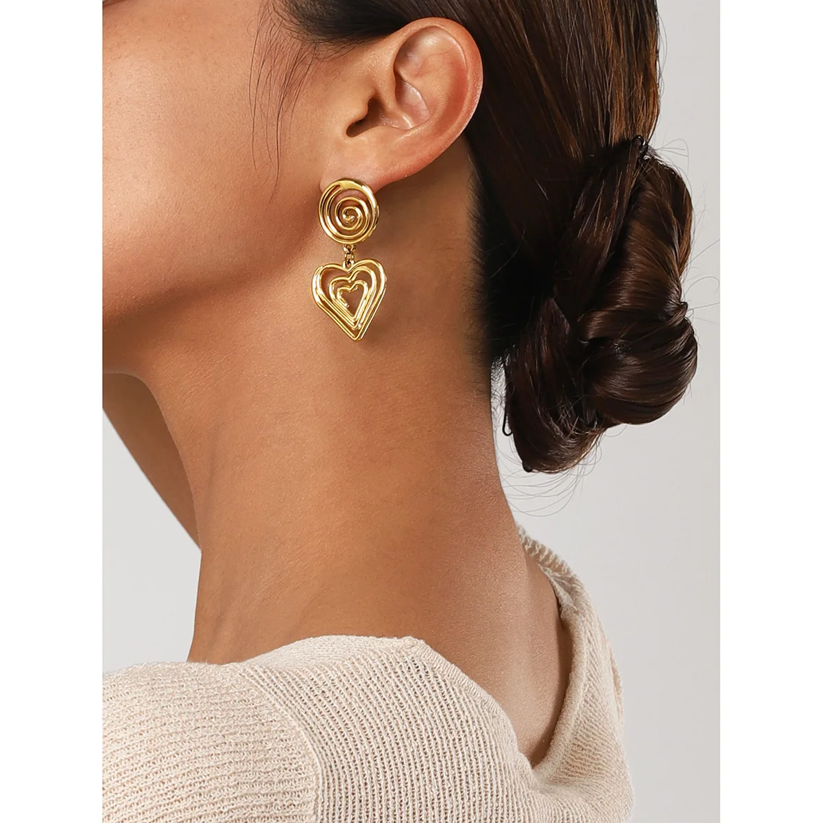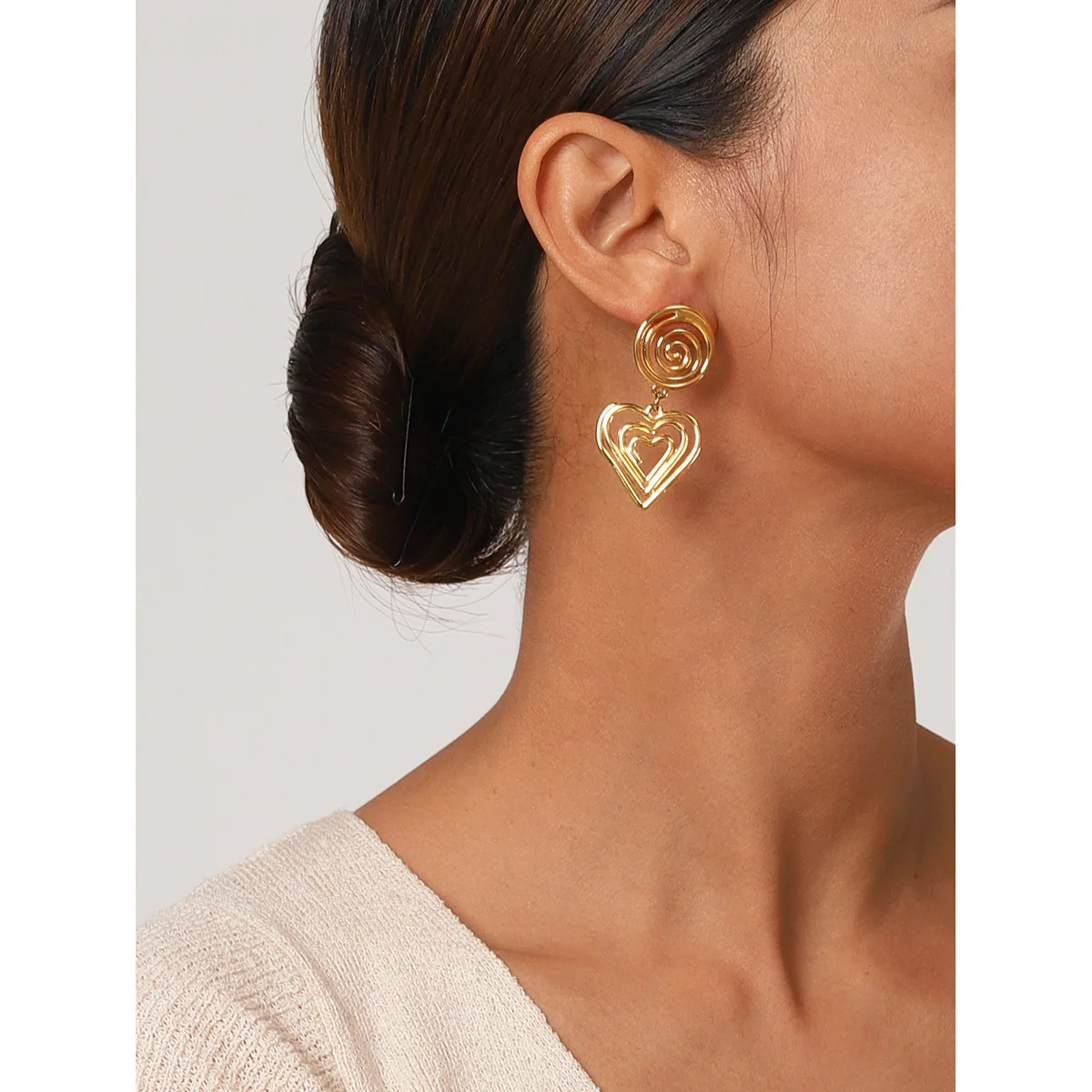 Ilona Vintage Style 18k Gold Plated Heart Thread Pendant Drop Earrings Trendy Women's Fashion Stainless Steel Jewelry for Gift