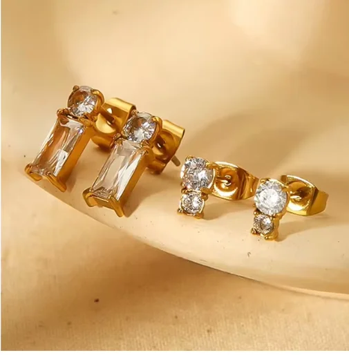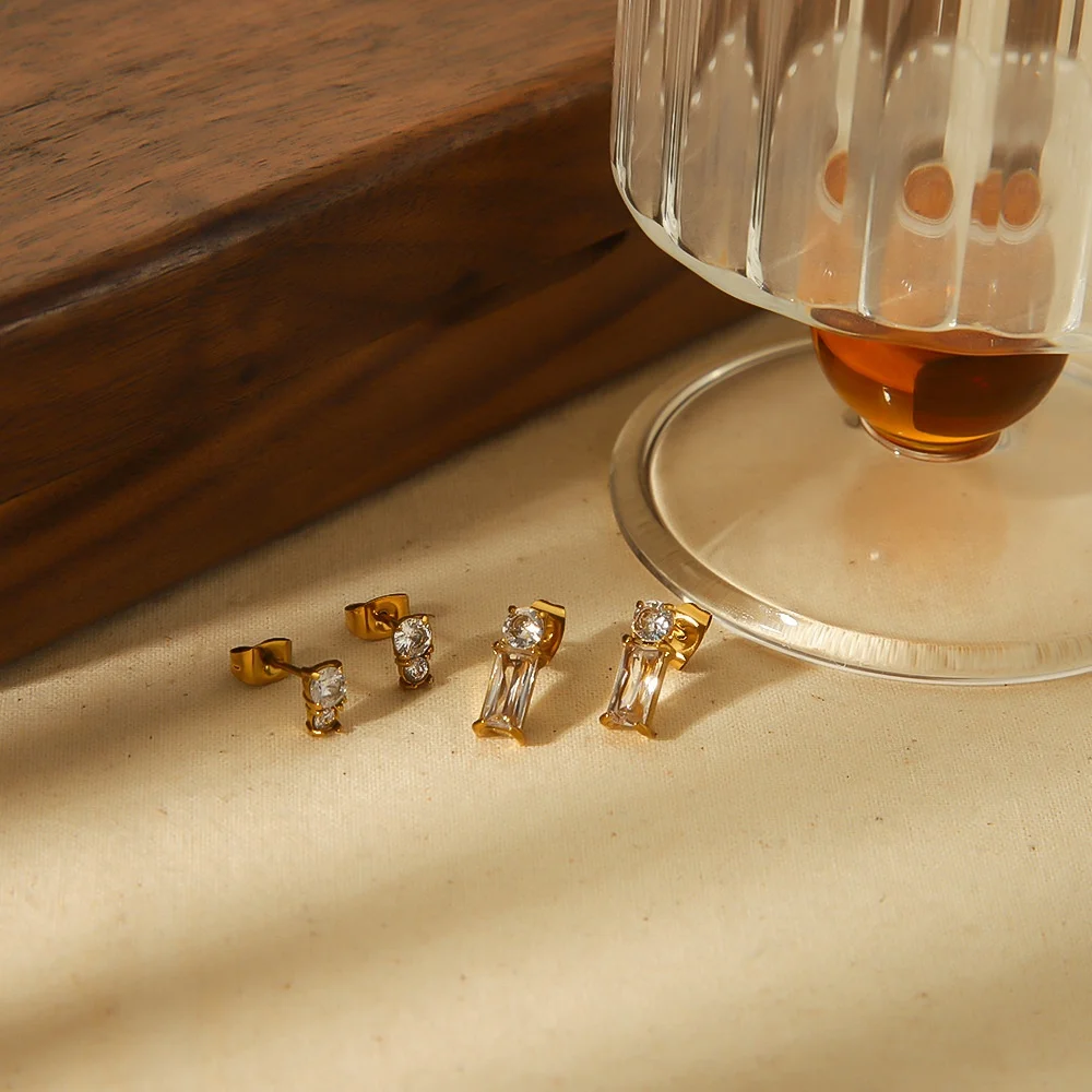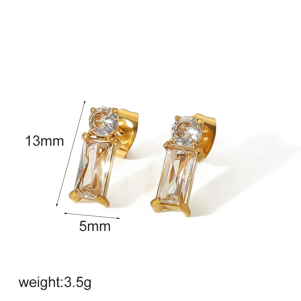 Ilona 18K Gold Plated Luxury Simple Style Stainless Steel Cubic Zircon Stud Earrings for Women
