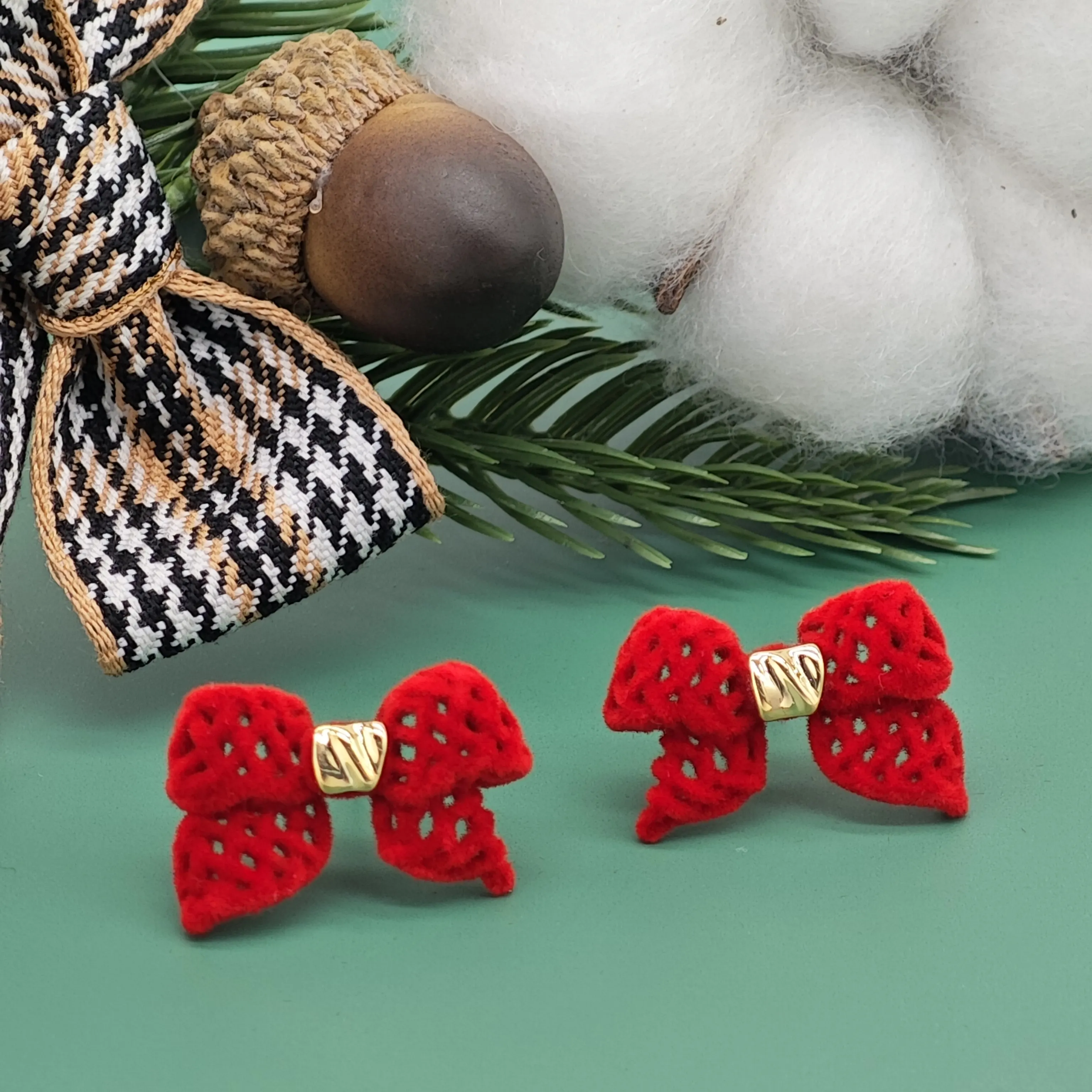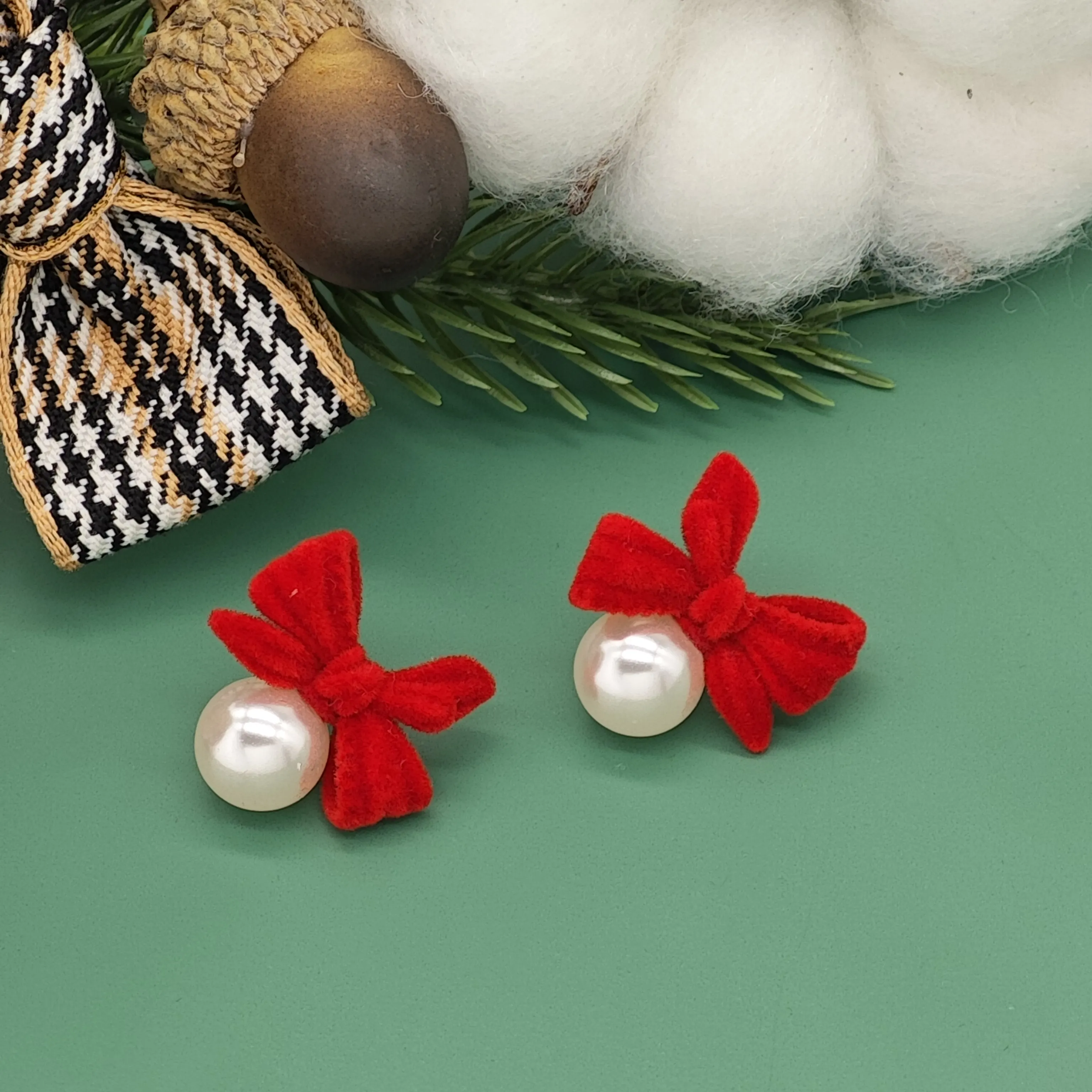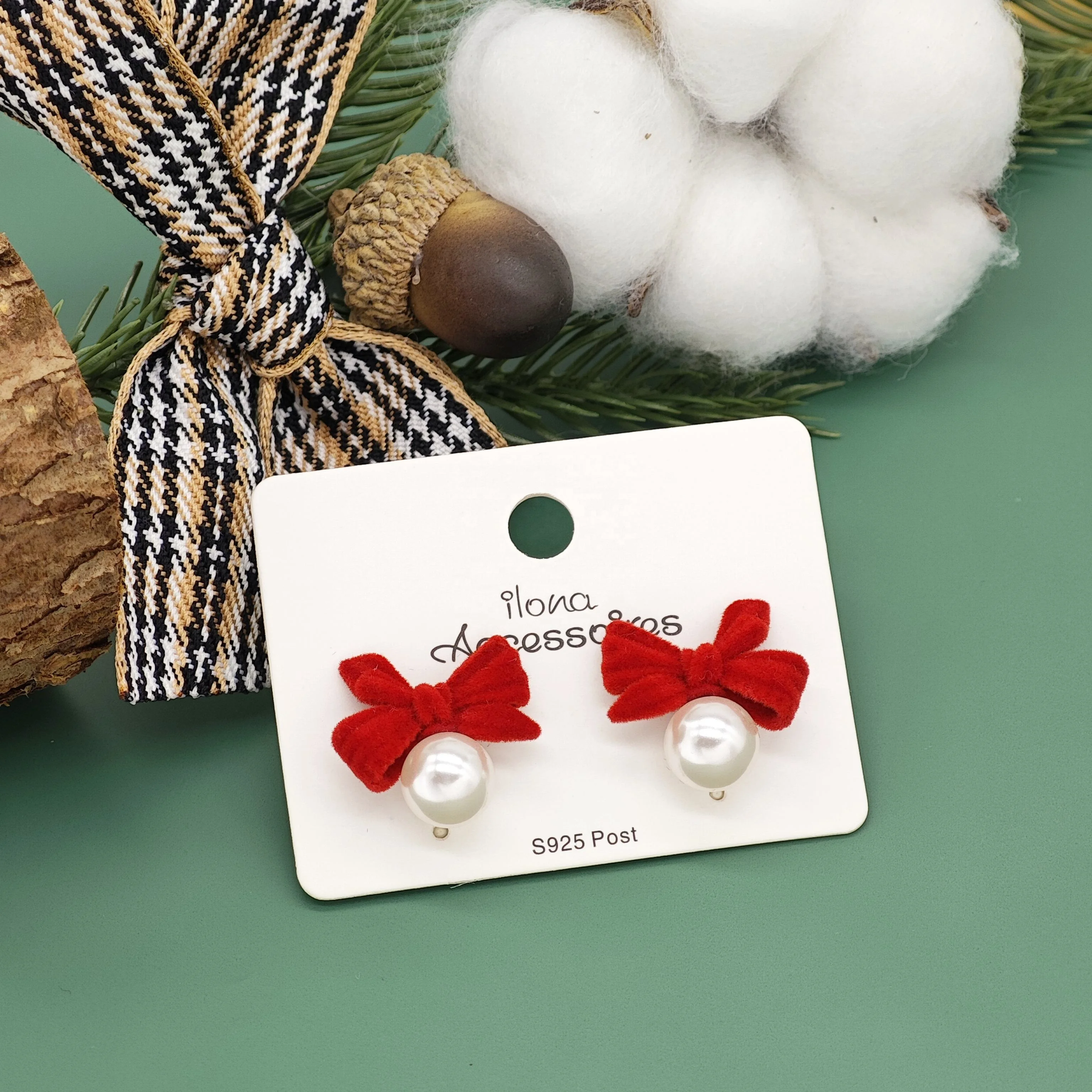 Ilona Trendy Style Women's Jewelry Cute Girl Red Bow Gold Plated Stud Earrings Sets with Shell Pearl for Christmas Wholesale