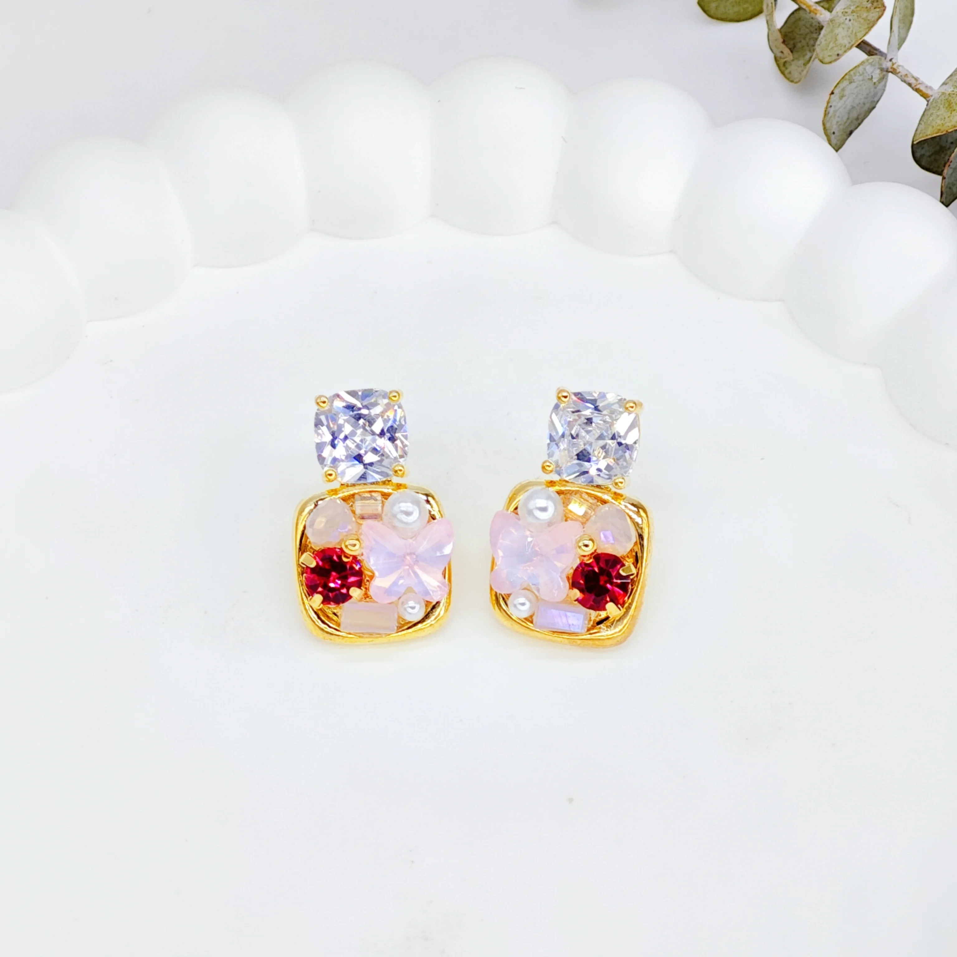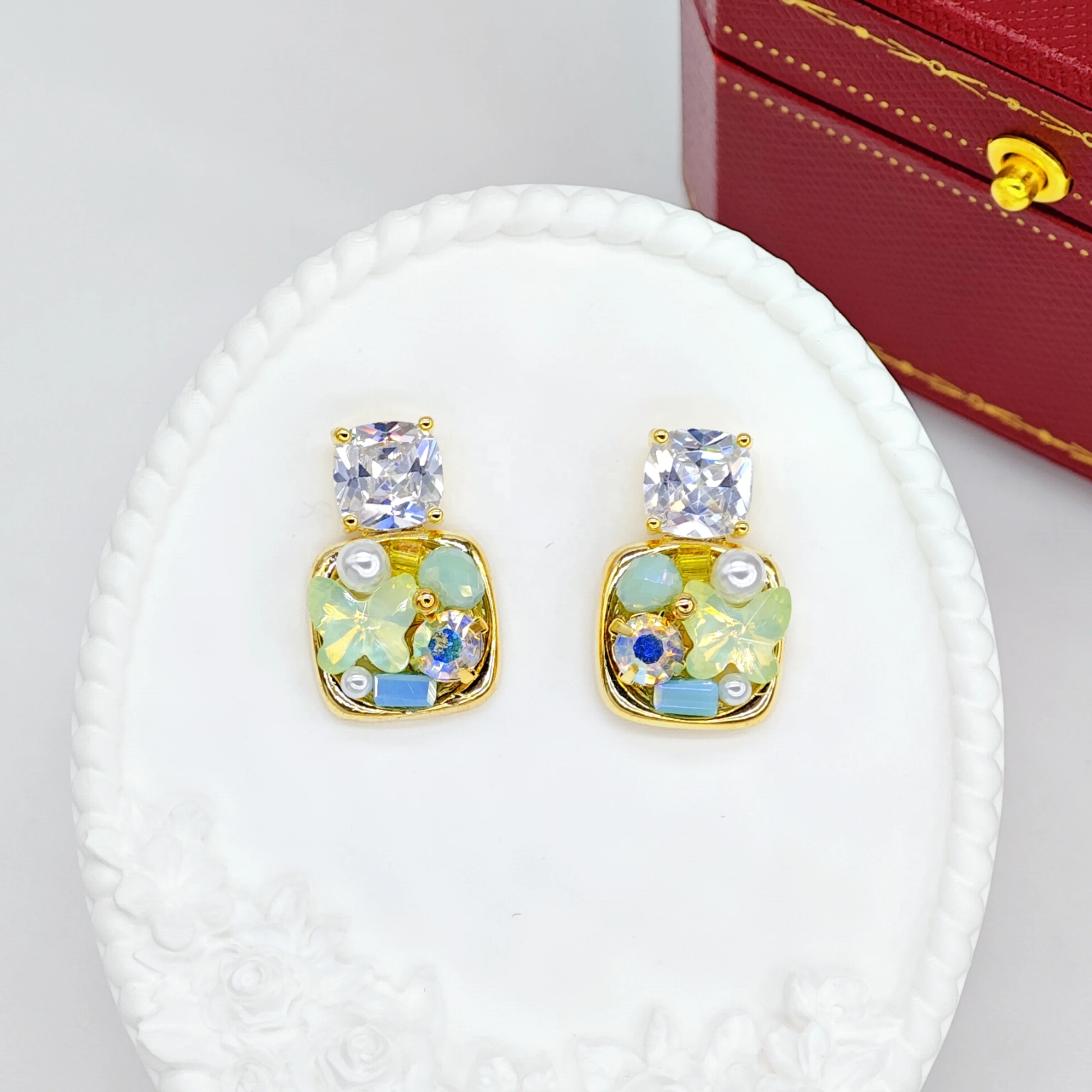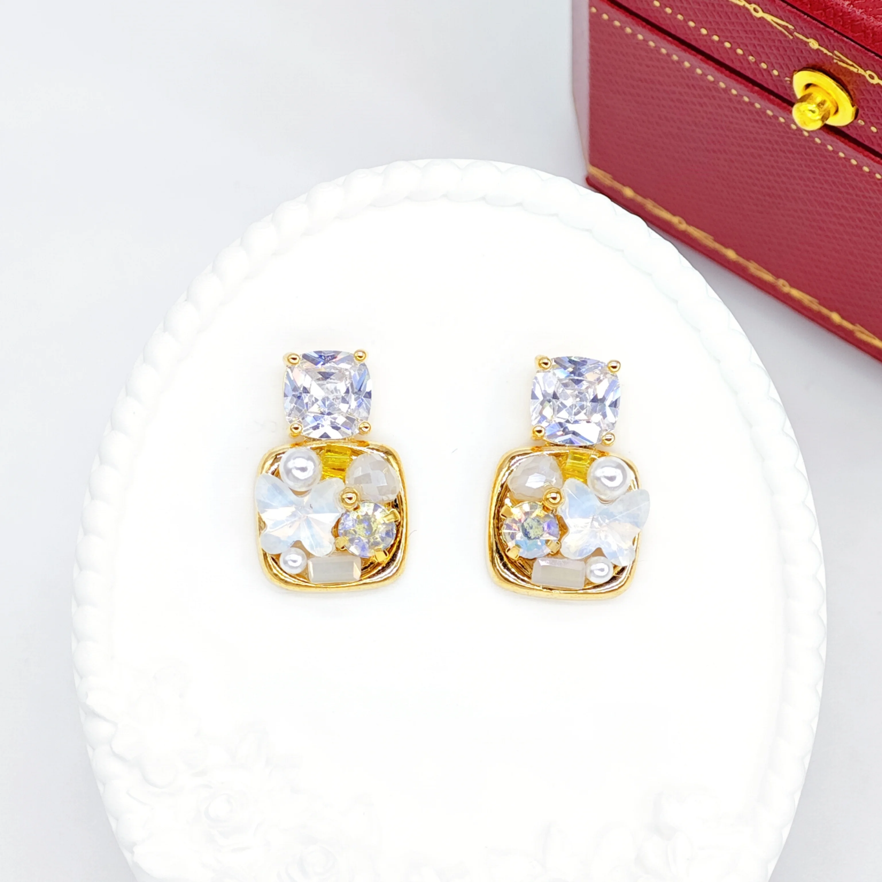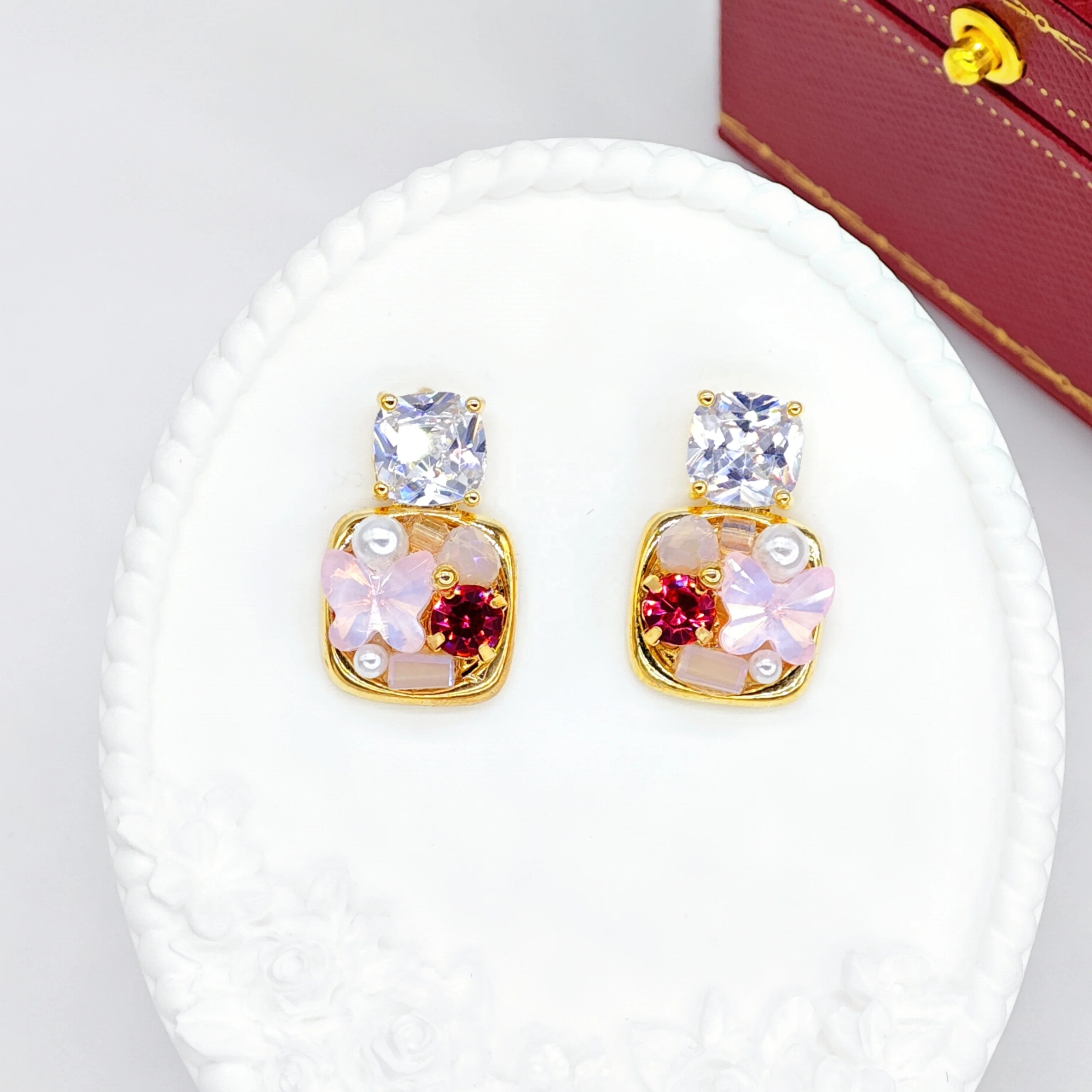 Ilona Handmade 18K Gold Plated Ear Studs Small and Exquisite Geometric Butterfly Zircon Earrings Trendy Style for Anniversary