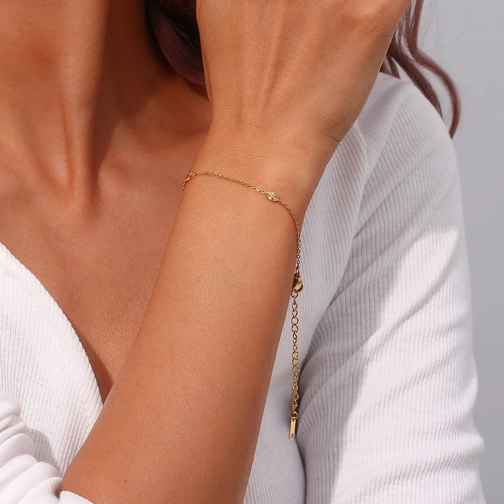 Ilona Fashion 18K Gold Plated Stainless Steel Flower Pendant Bracelet Set Chic Simple Link Bracelet Fashion Jewelry for Gift