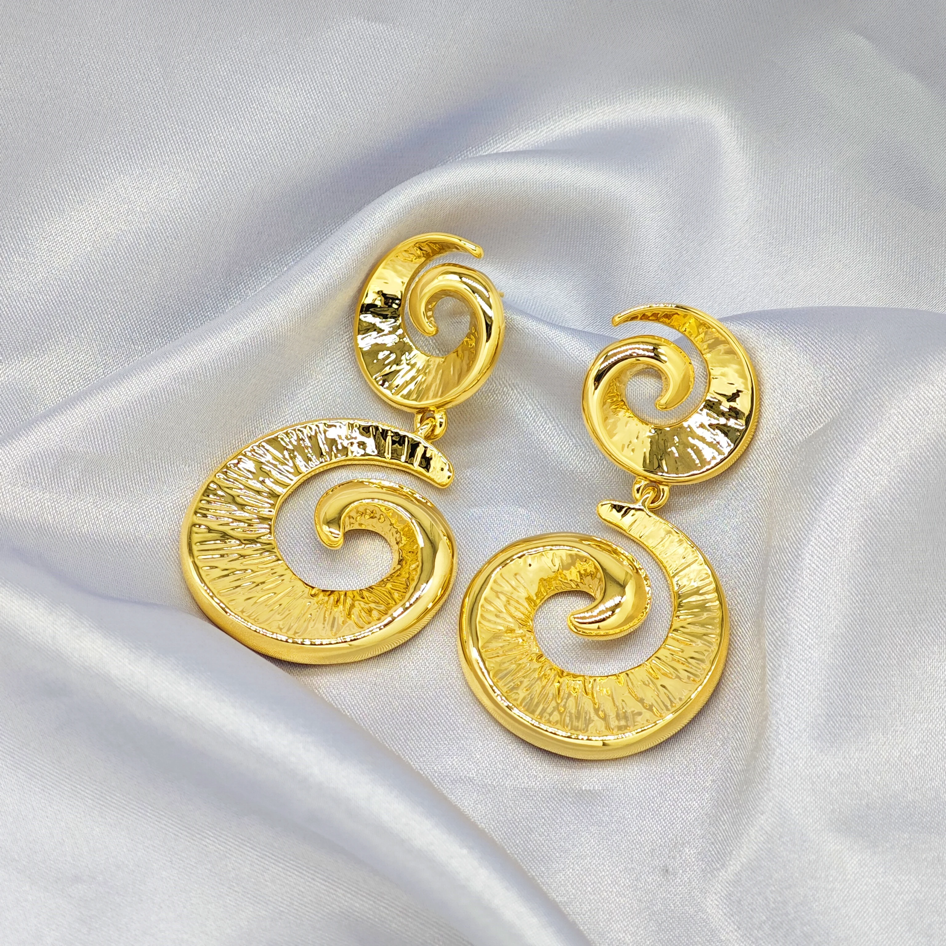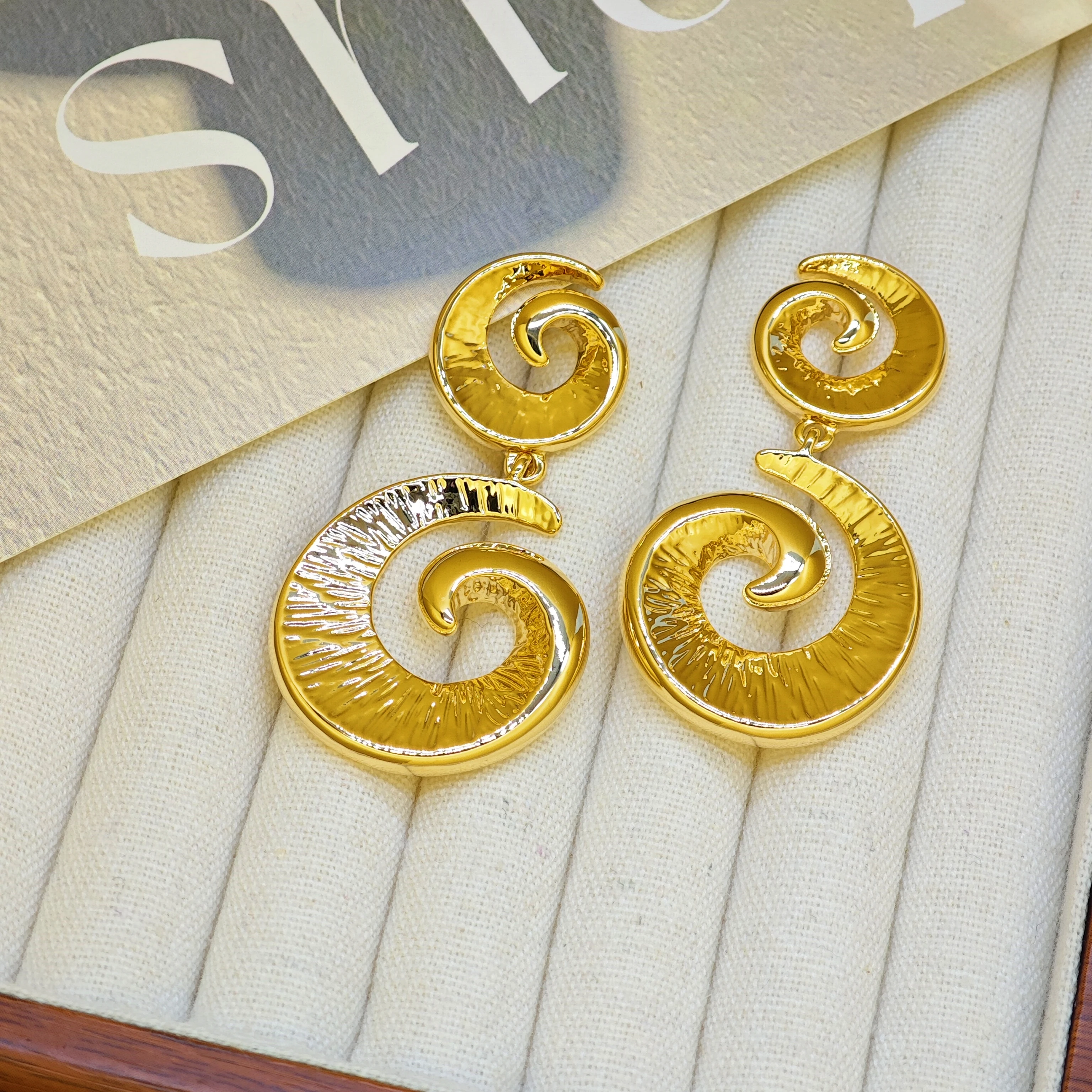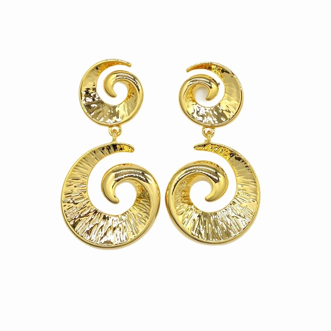 Ilona Fashion Jewelry Geometric Gold Plated Conch Symbol Earrings with Round Copper Spiral Pendant Elegant Chandelier Style