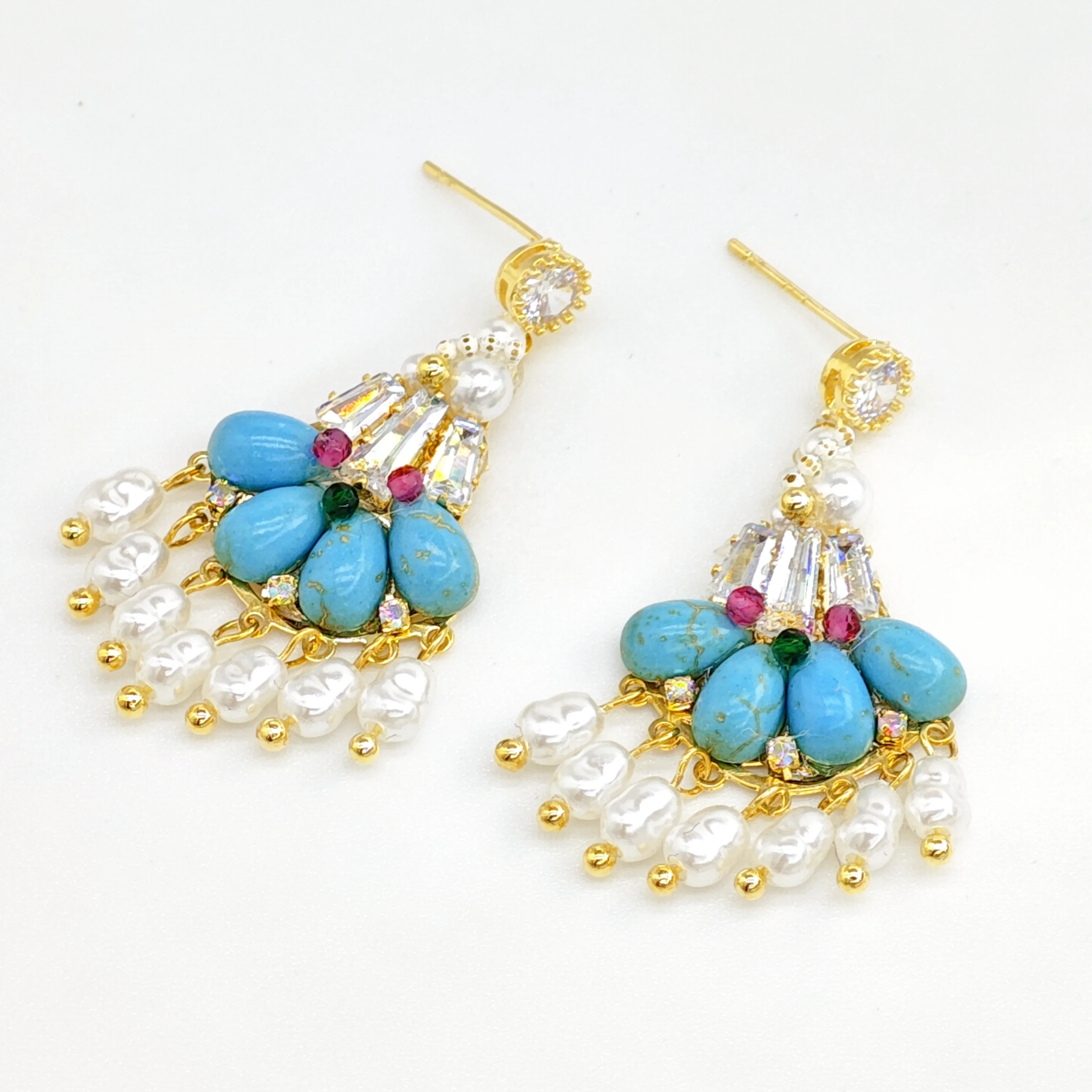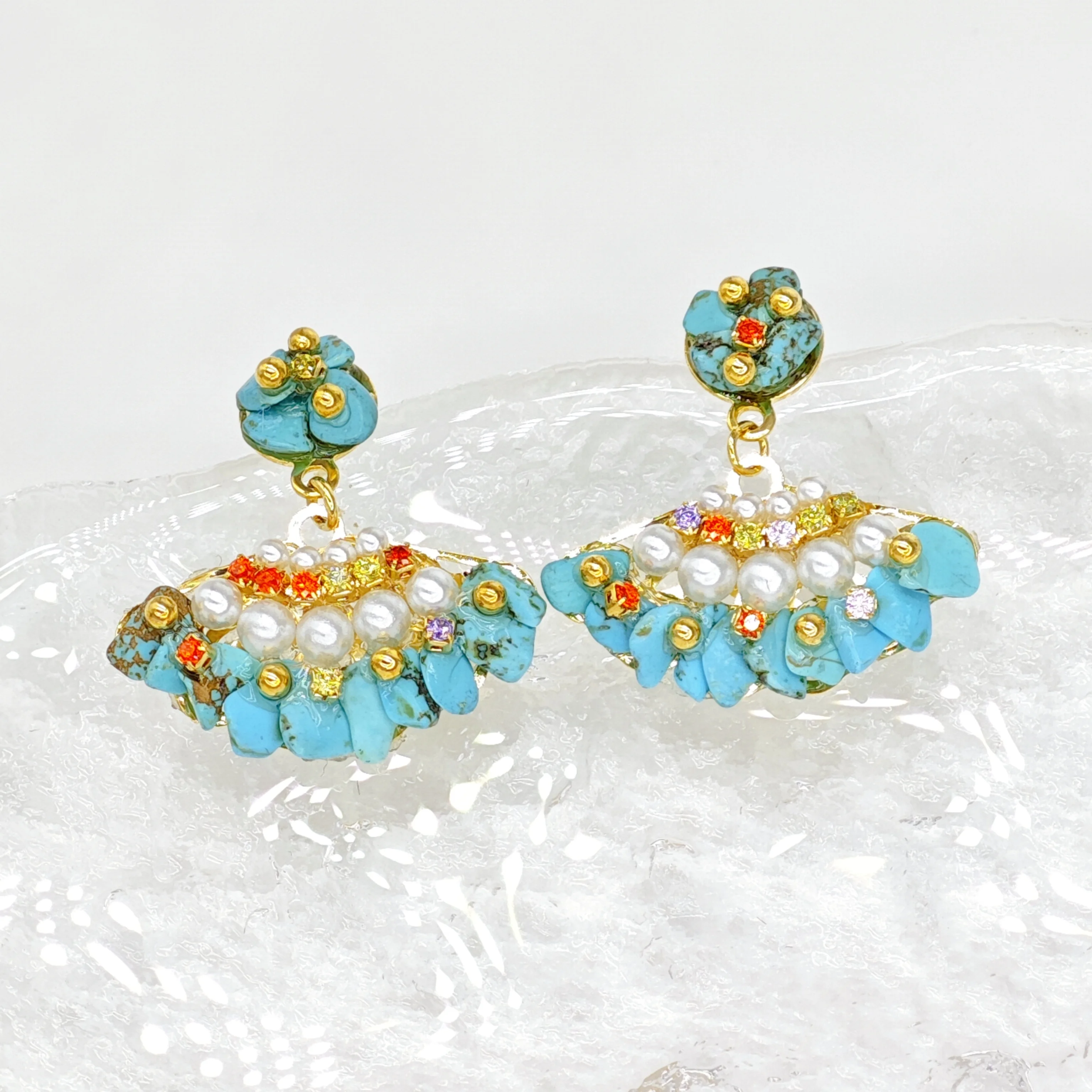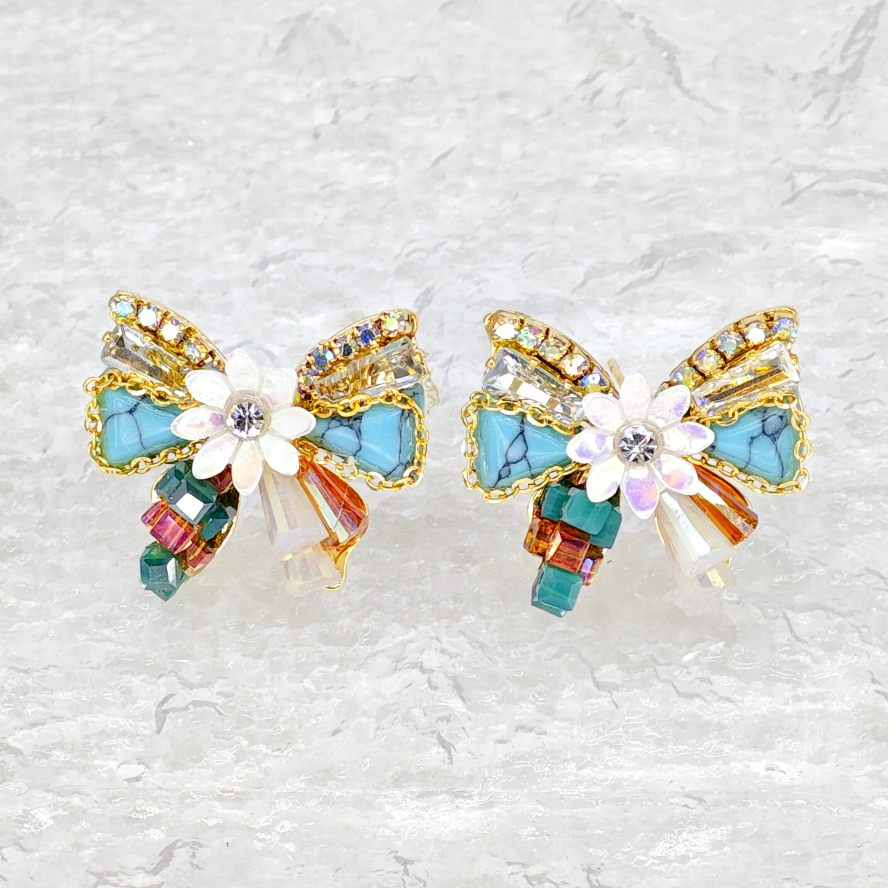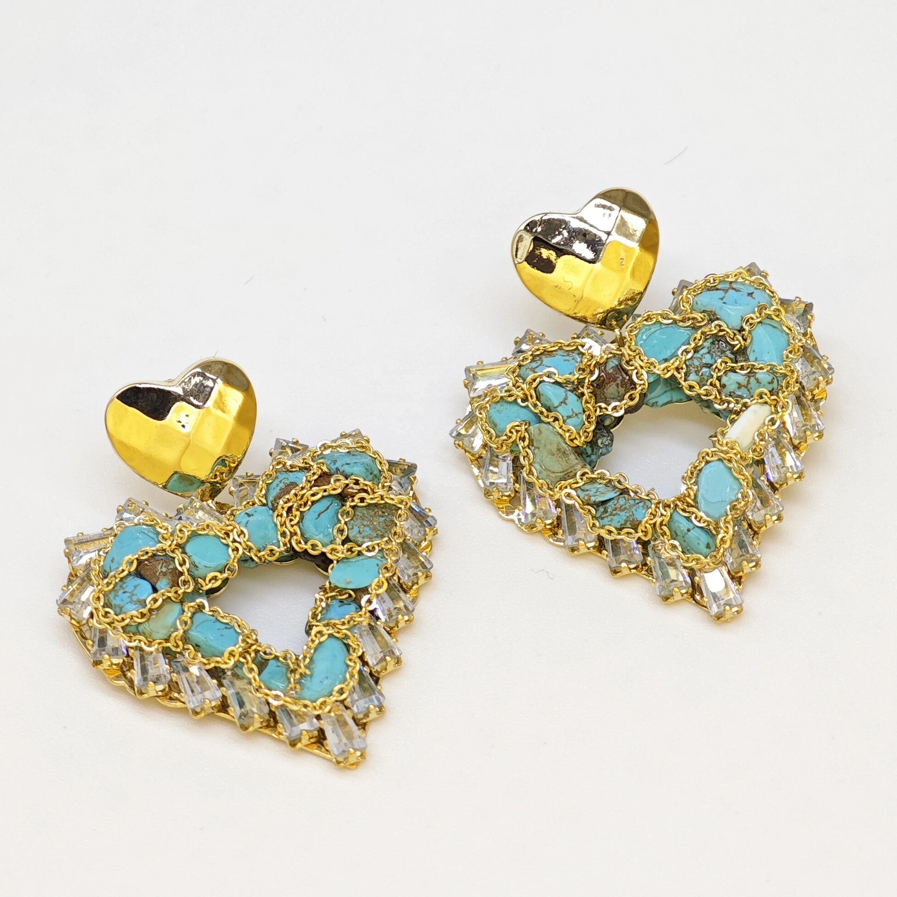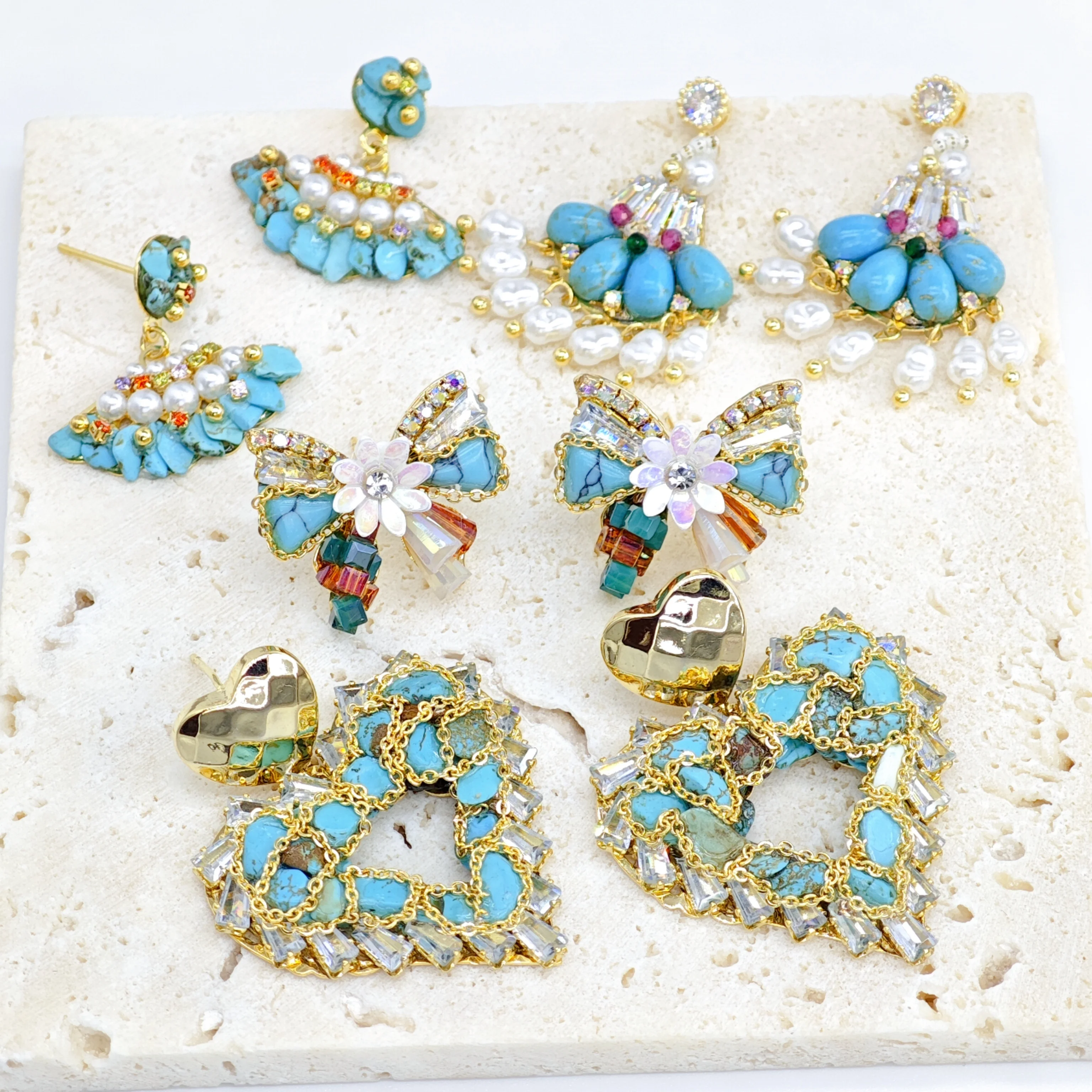 Ilona Vintage Turquoise Stud Earrings for Women Handmade Bohemian Fashion Dangle Heart-shaped Butterfly Design Natural Stone