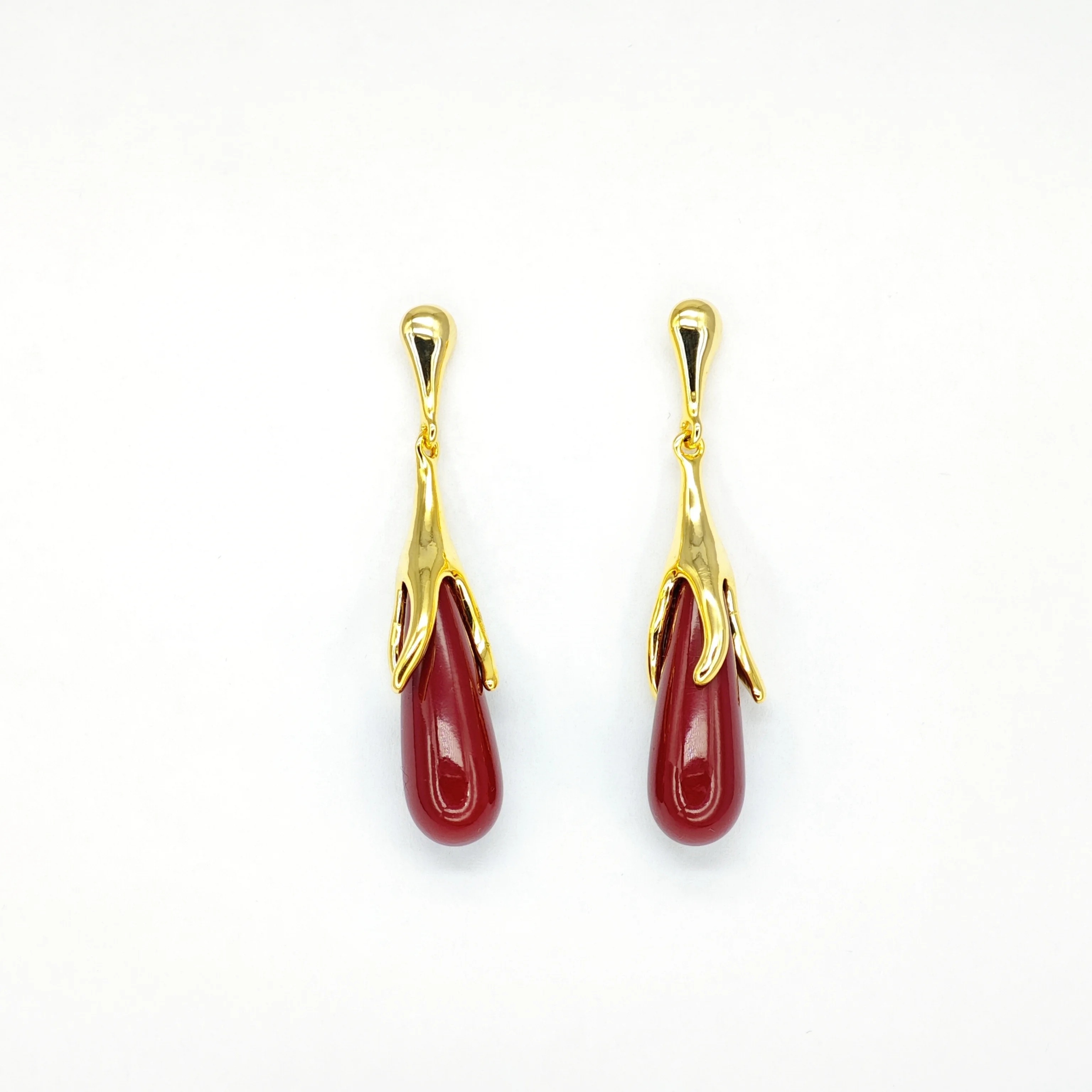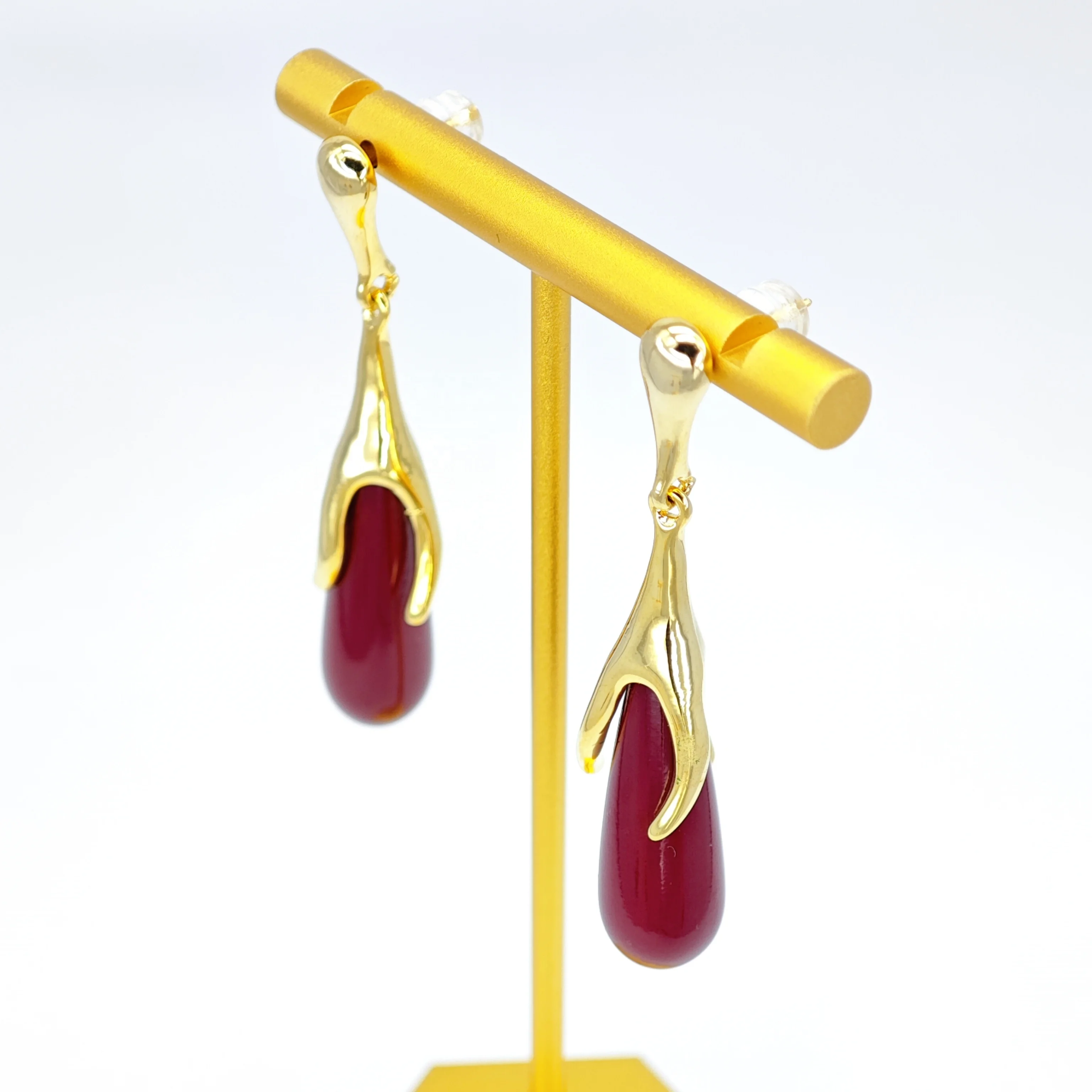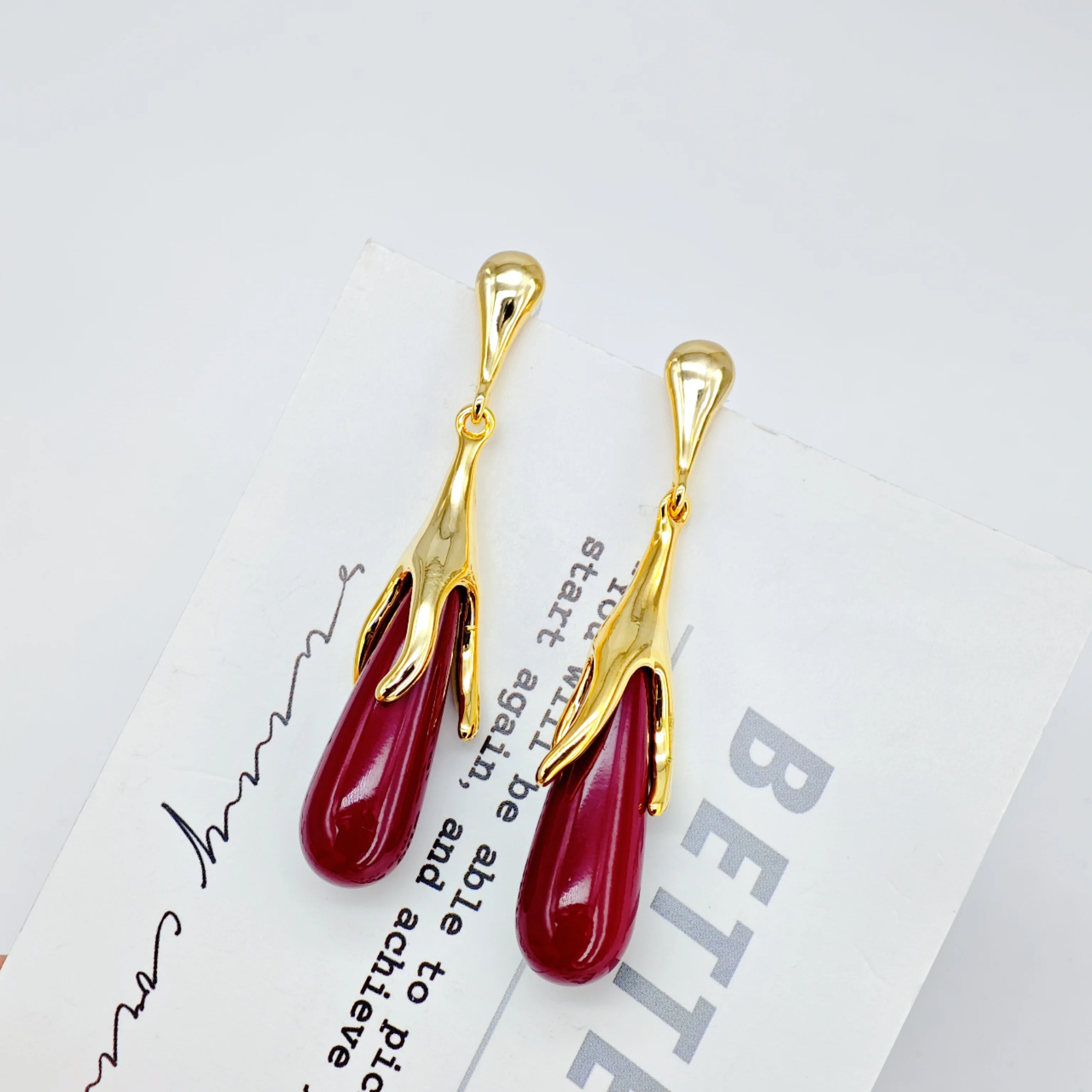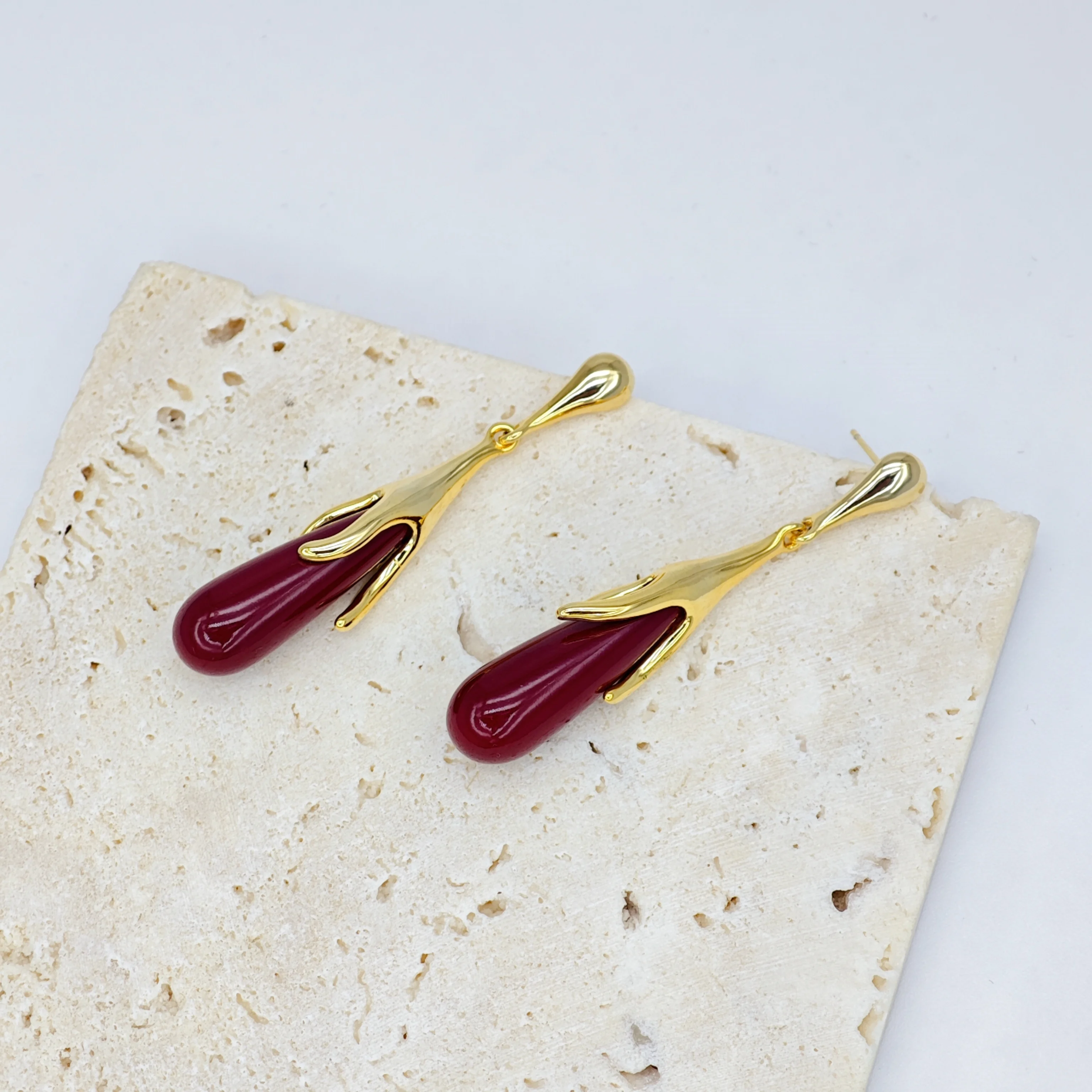 Ilona Women's Vintage Style 14k Gold Plated Copper Drop Earrings Creative Wine Red Irregular Dangle Accessories