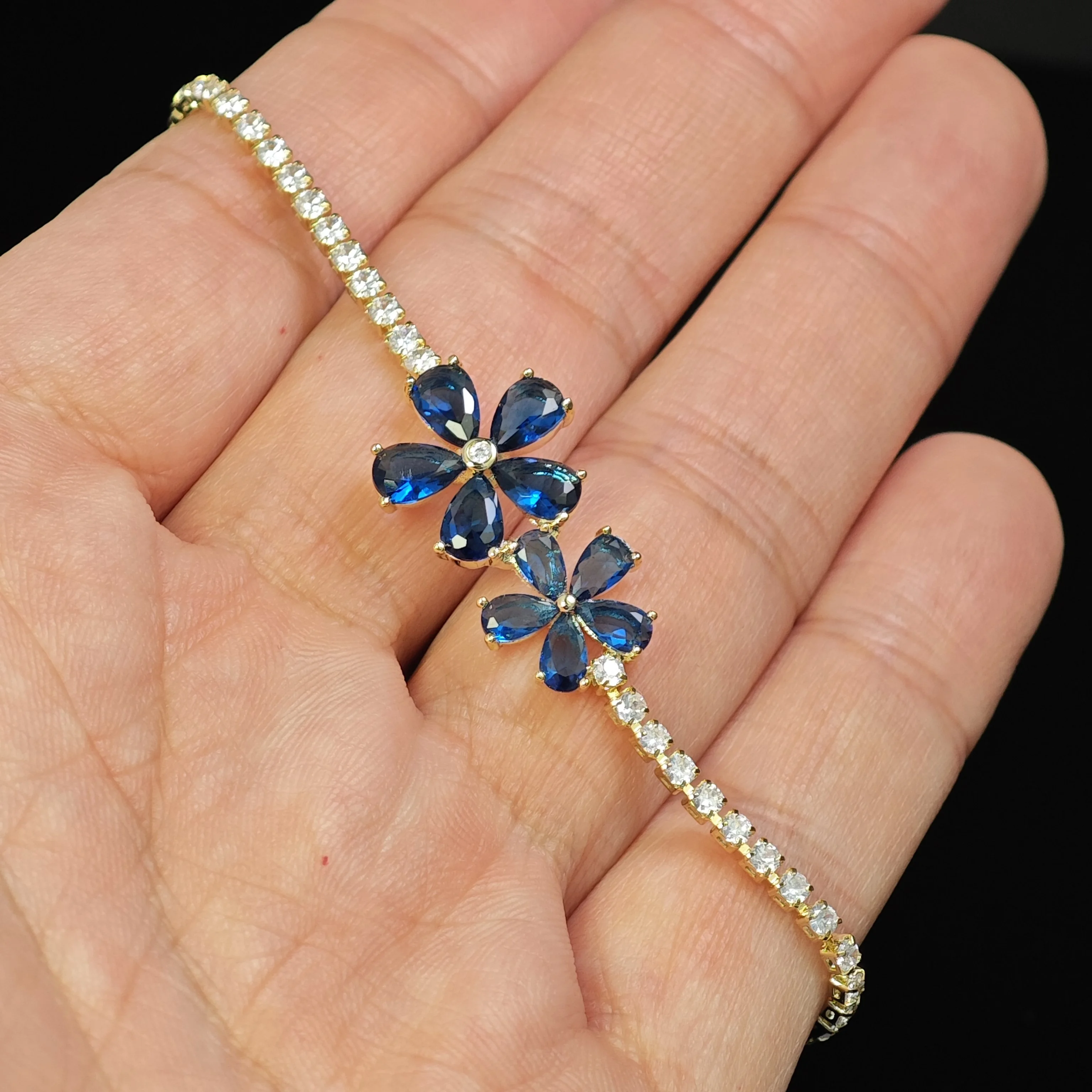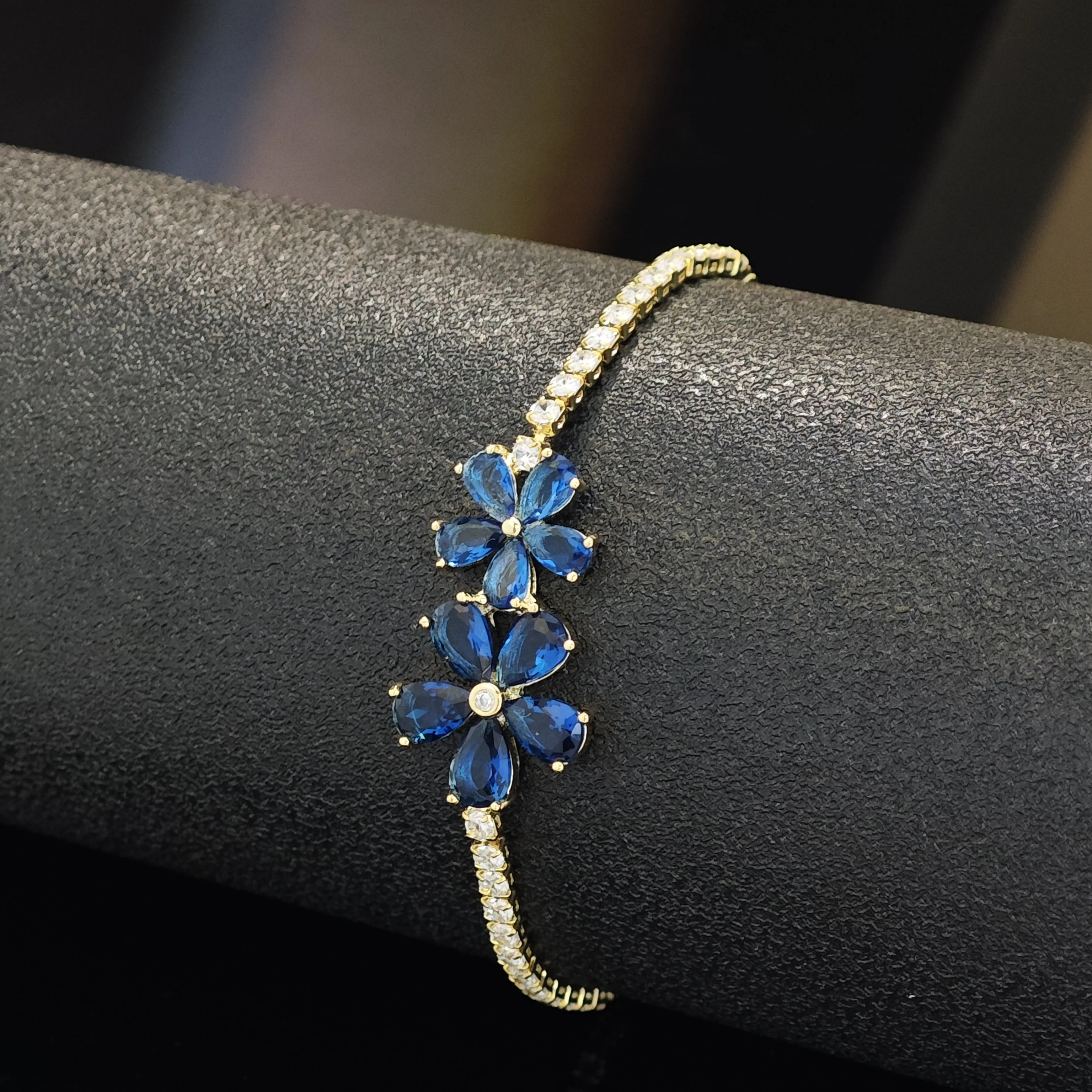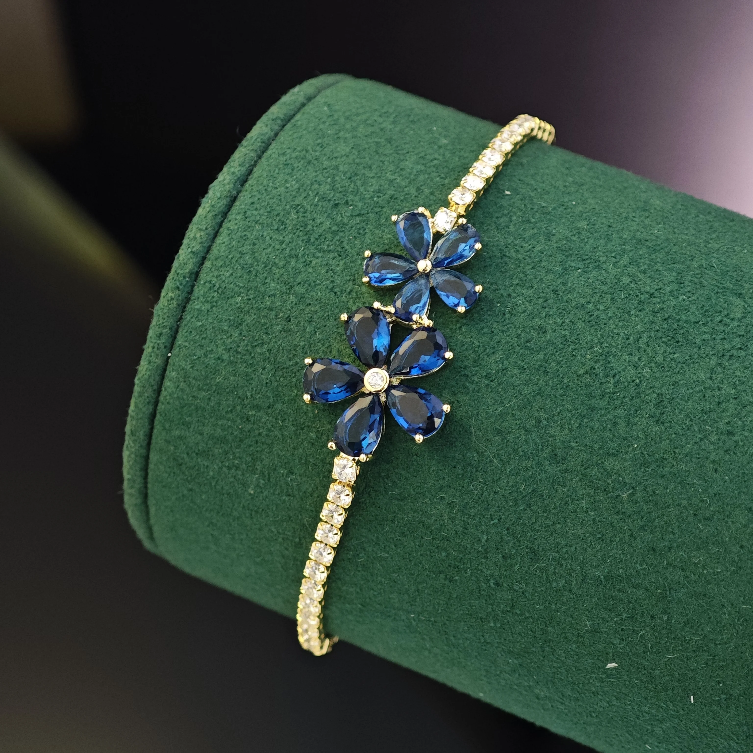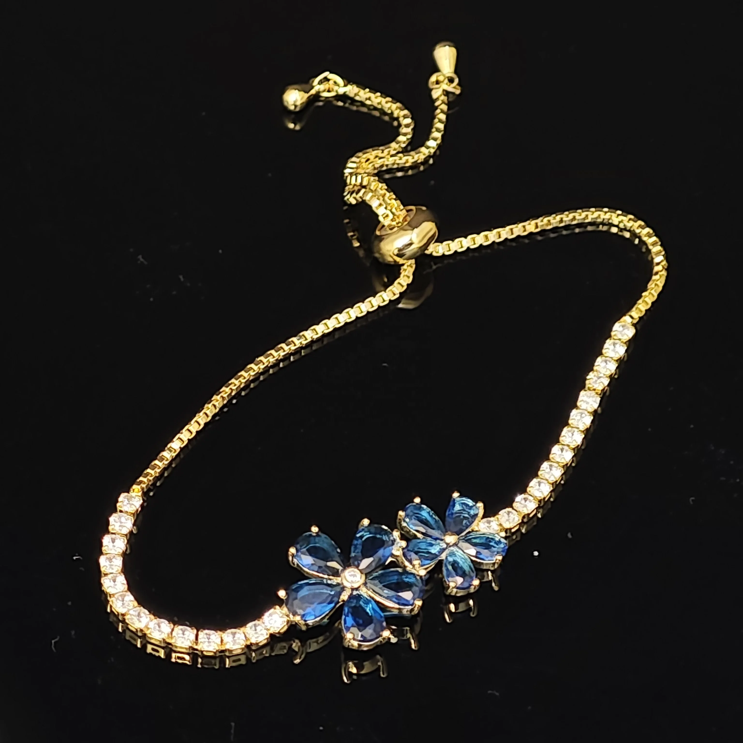Ilona New Trendy Blue Flower 14K Gold Plated Zircon Copper Bracelet Women's Fashion Adjustable Pull Cord Bracelet Wholesale