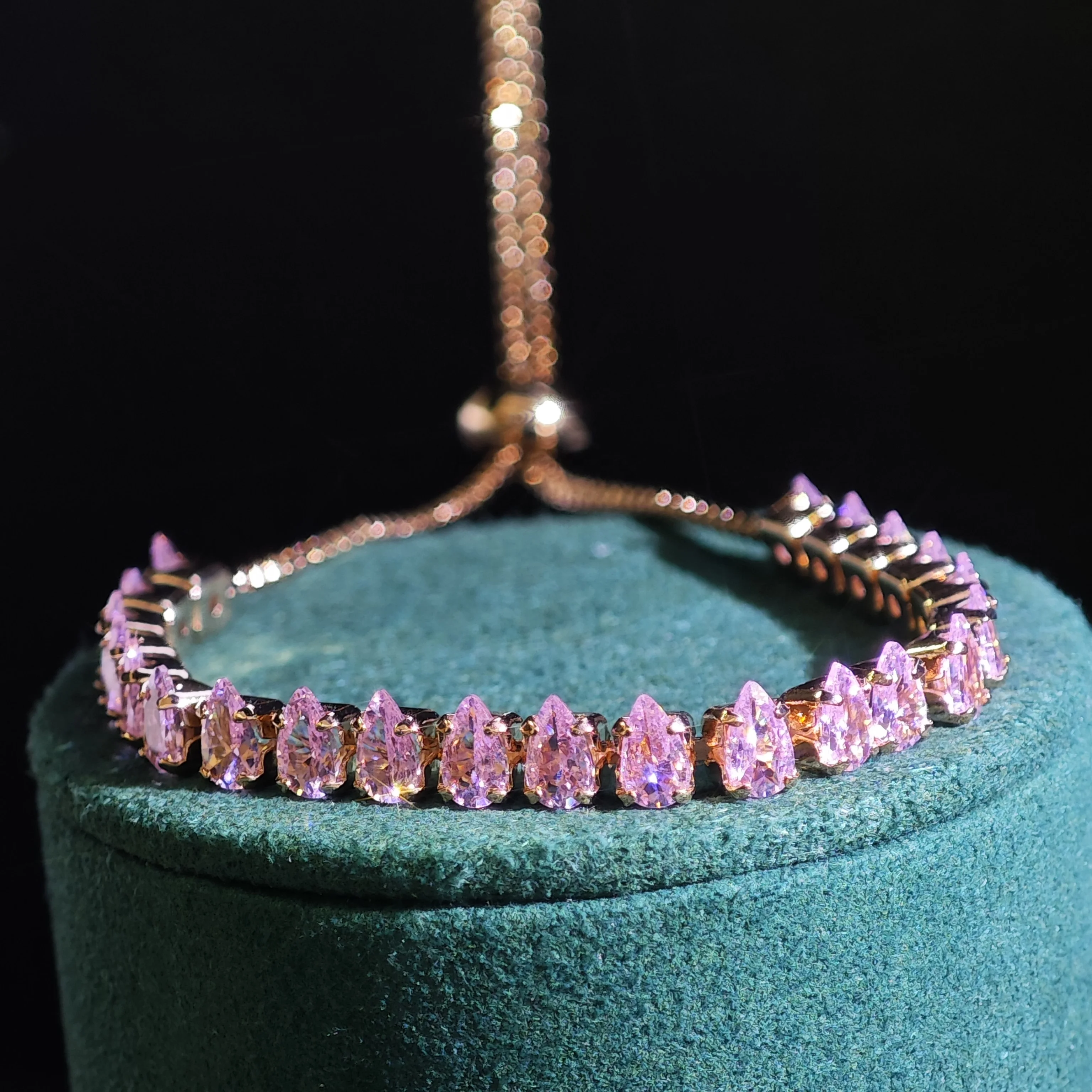 Ilona Wholesale Price Gold Plated Copper Bracelet Fashion Minimalist pink Cubic Zircon Adjustable Bangle Bracelets for Women