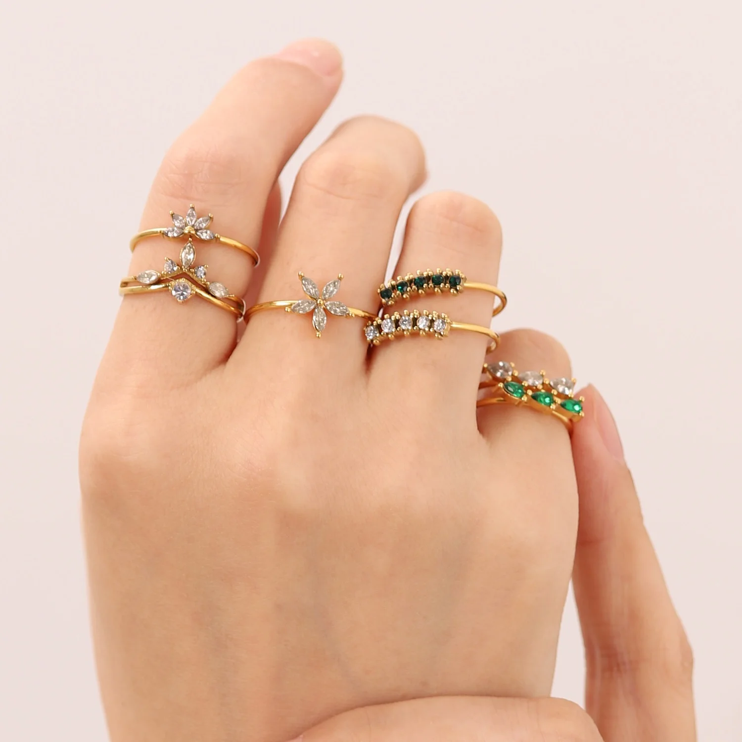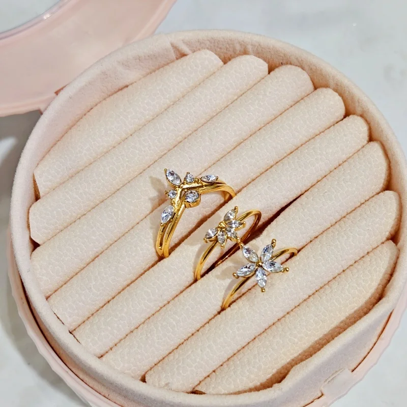 Ilona New HOT 18k Gold Plated Rings Stainless Steel Cute Korean Style Zircon Ring Women Jewelry