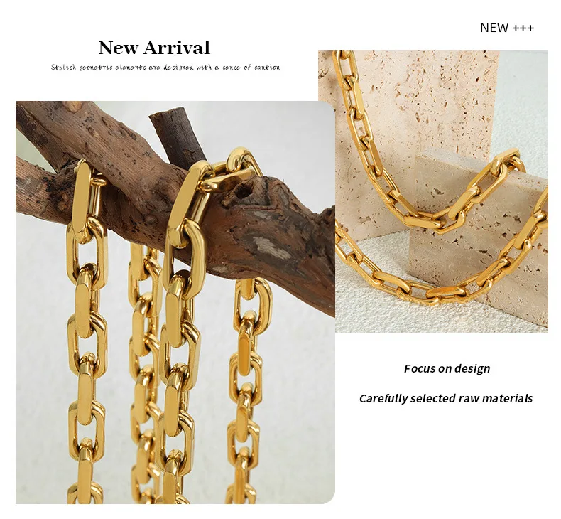 Ilona 18k Gold Plated Hip Hop Anti Tarnish Stainless Steel Jewelry Sets Thick Cuban Link Chain Necklace Bracelet Sets for Women