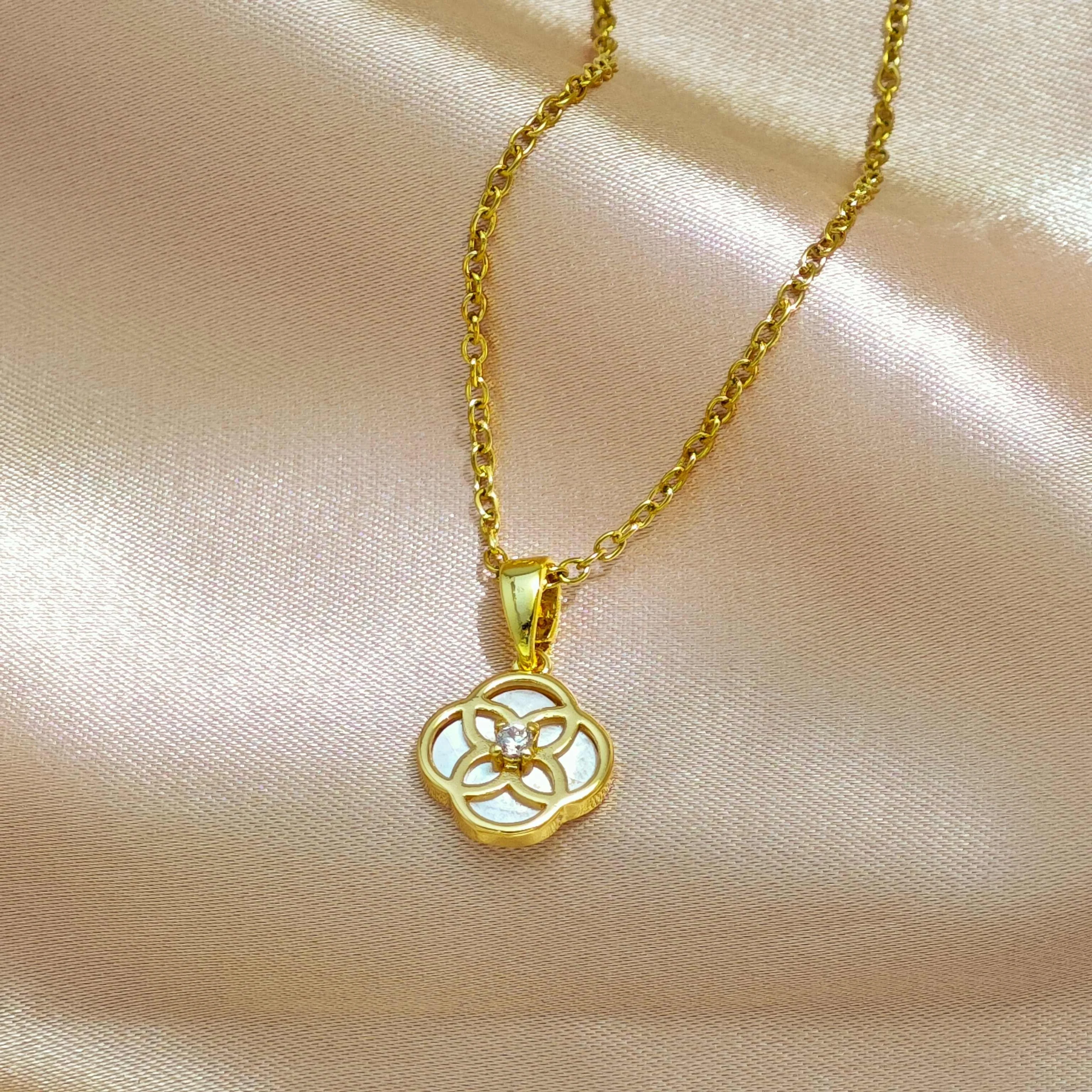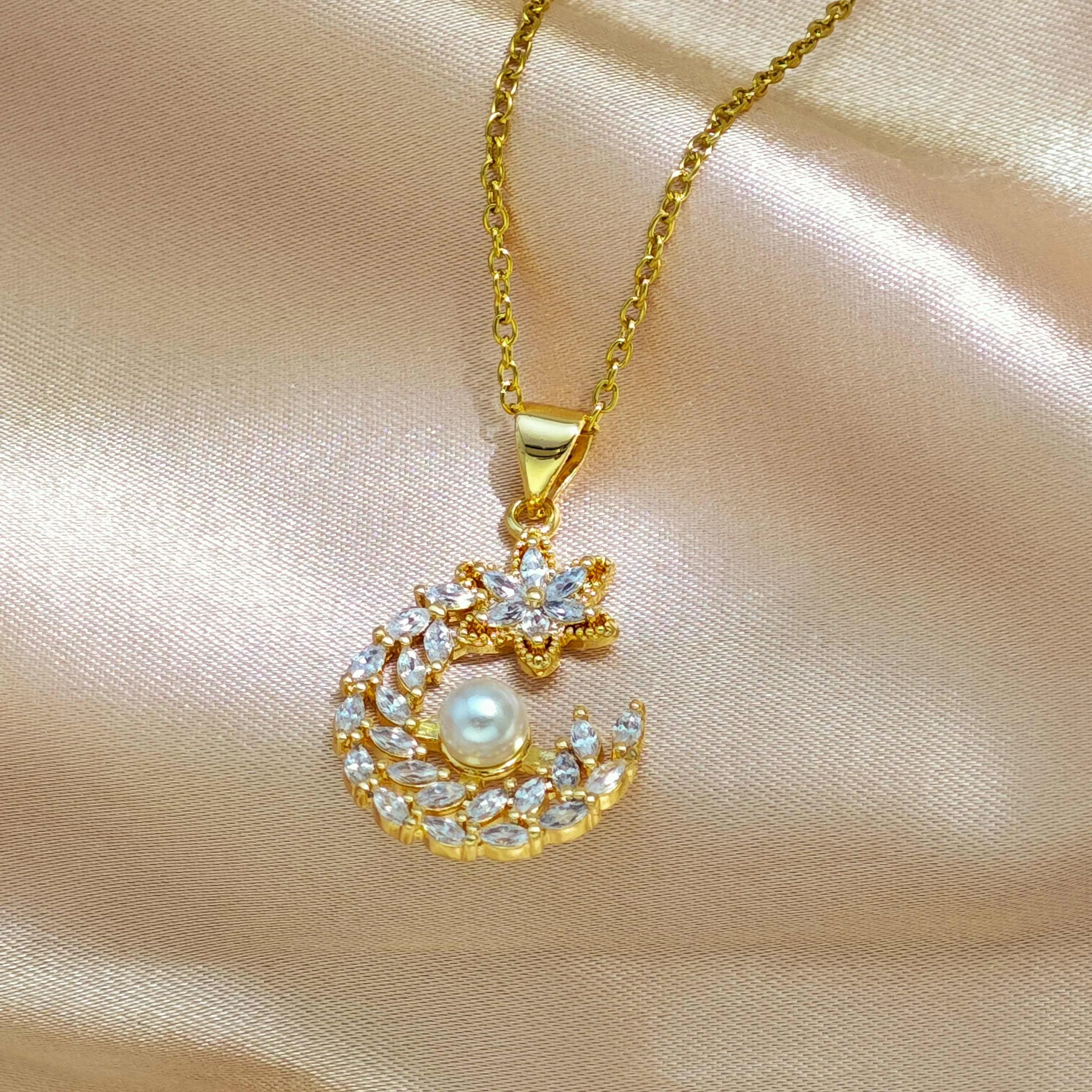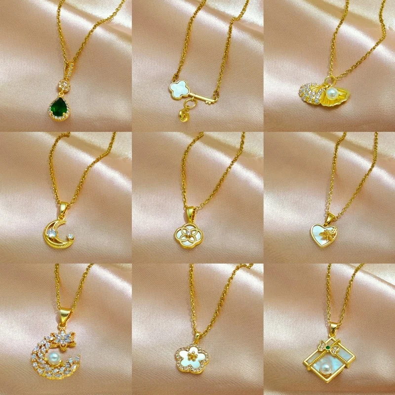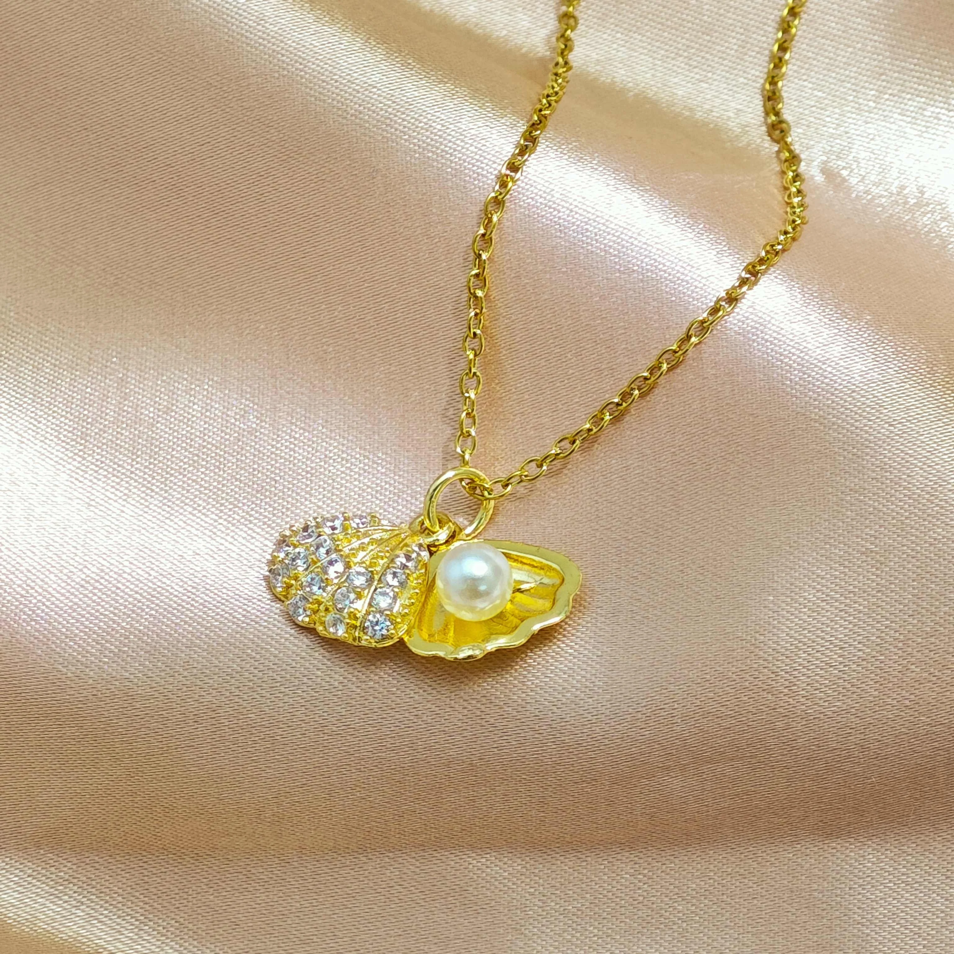 Ilona Fashion Natural Shell Pearl Heart-shaped Copper Pendant Necklace 18k Gold Plated Stainless Steel Jewelry for Women's Gift