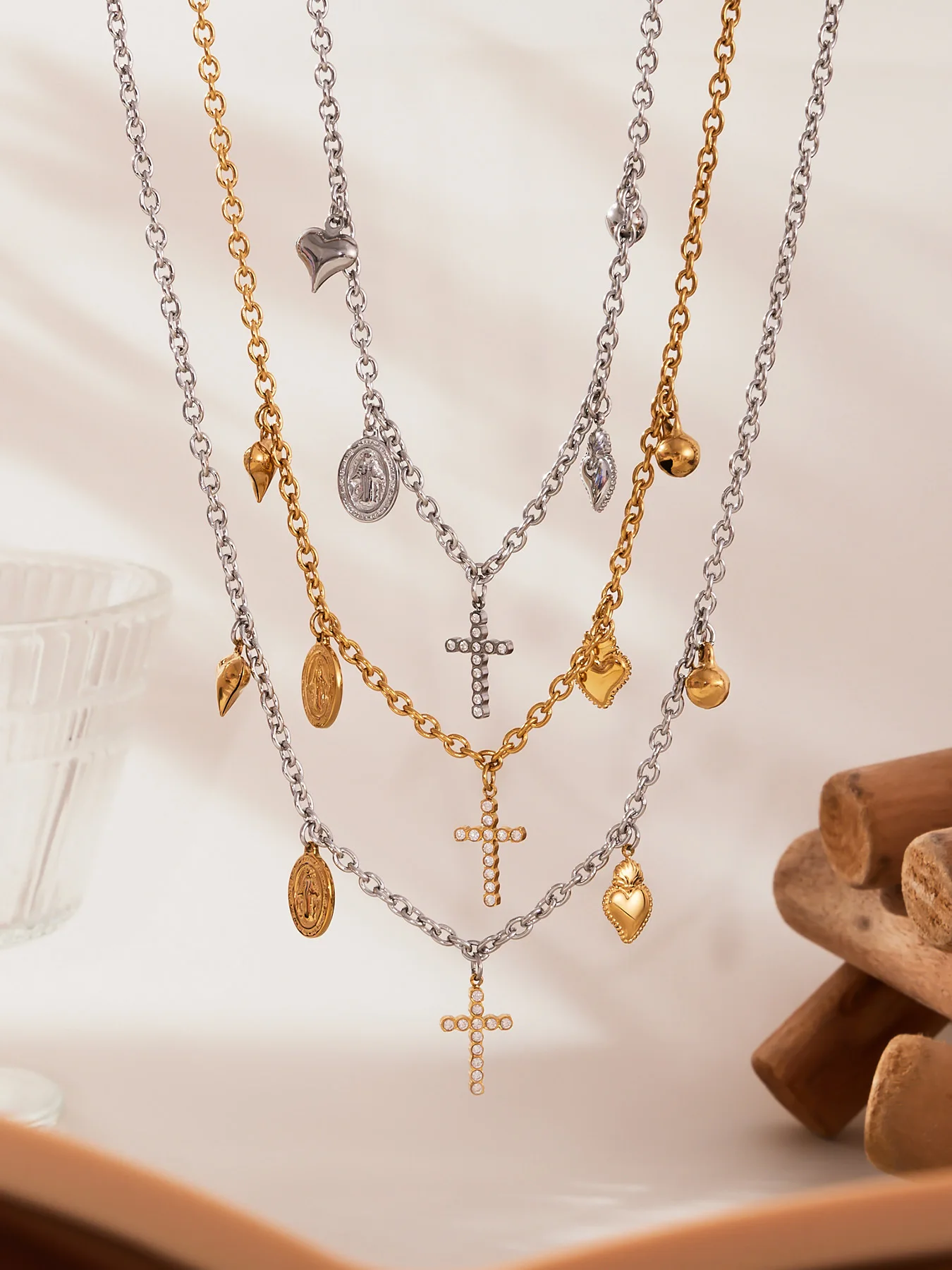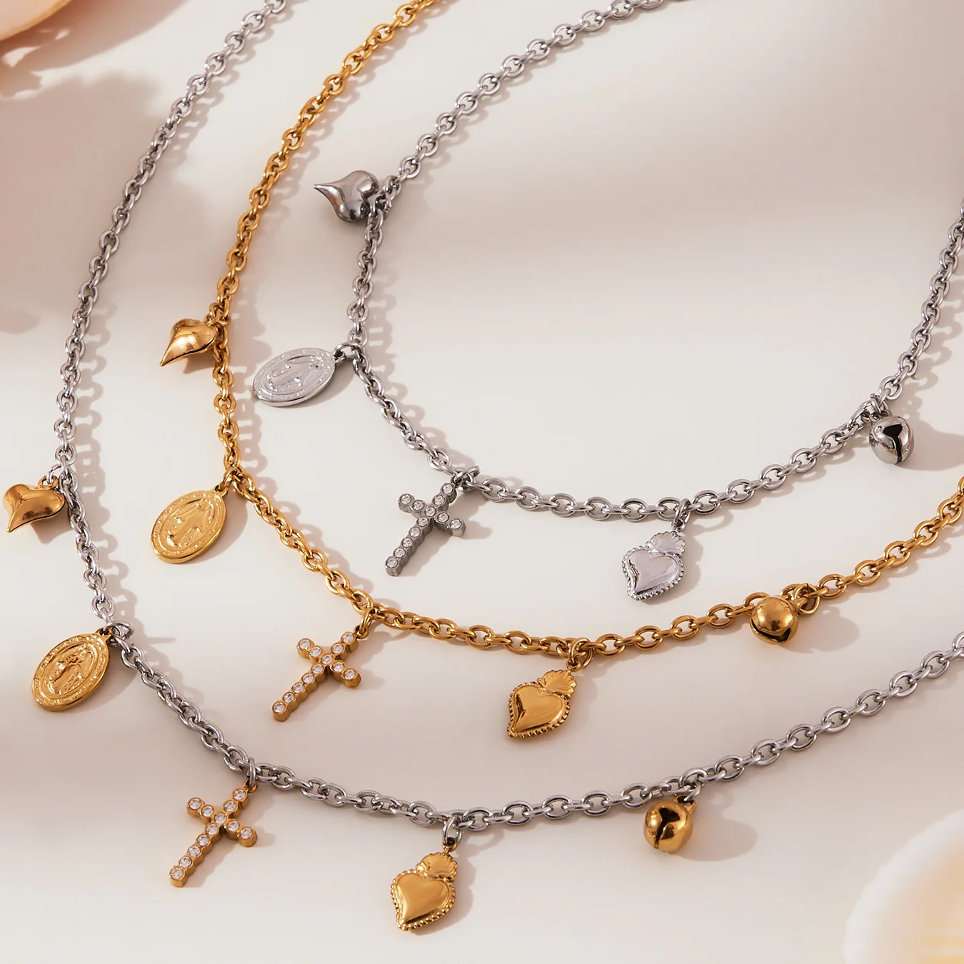 Ilona 5A Zircon Cross Heart 18k Gold Plated Stainless Steel DIY Unisex Trendy Bracelet Necklace Set Women's Fashion Jewelry Set