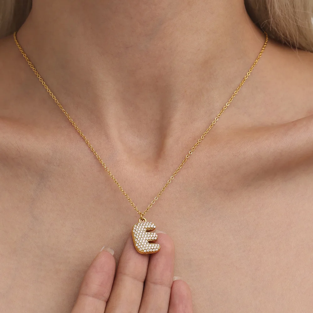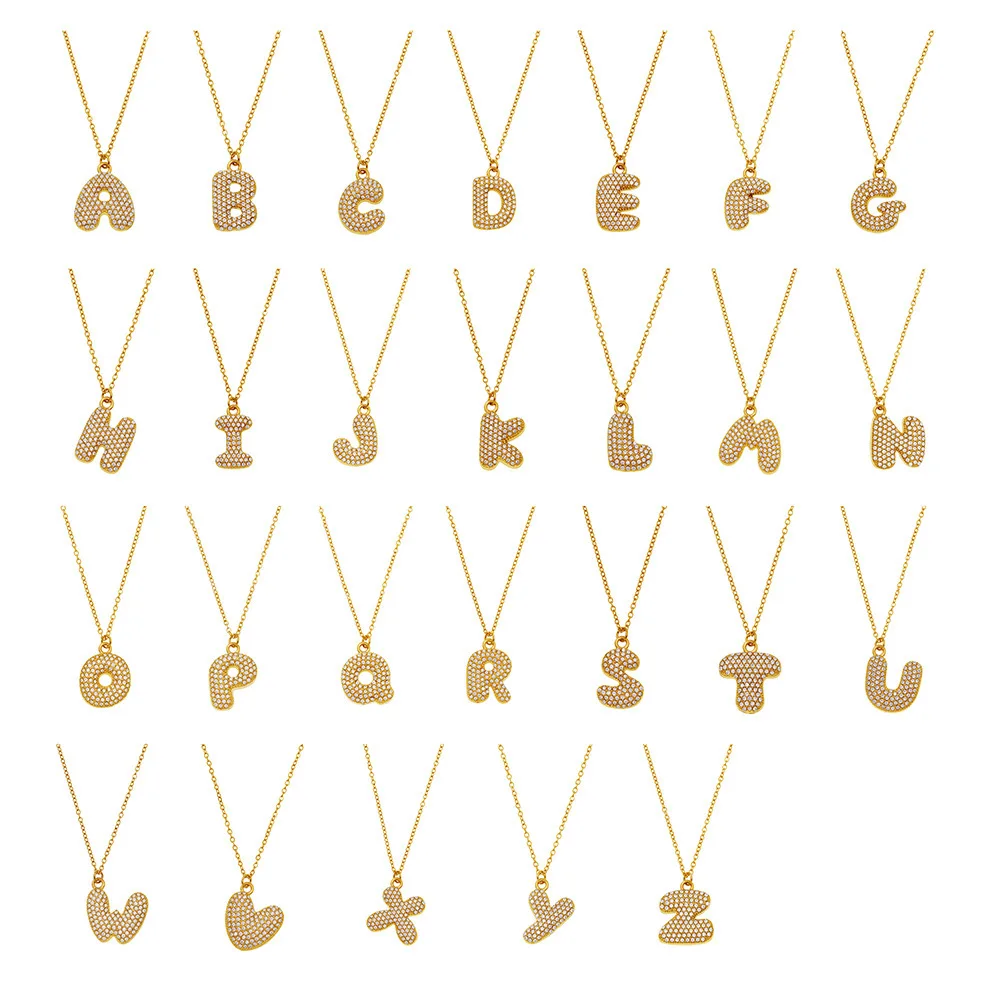 DIY 26 Flat Letter Zircon Pave Cute Stainless Steel Alphabet18K Gold Plated Mini Pendant Necklace for Women Fashion Jewelry Gift