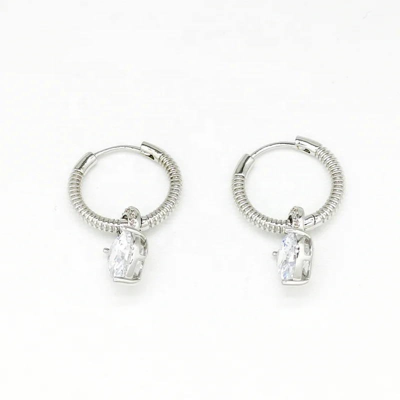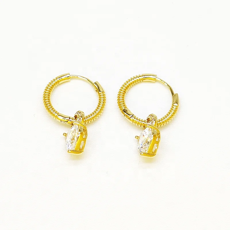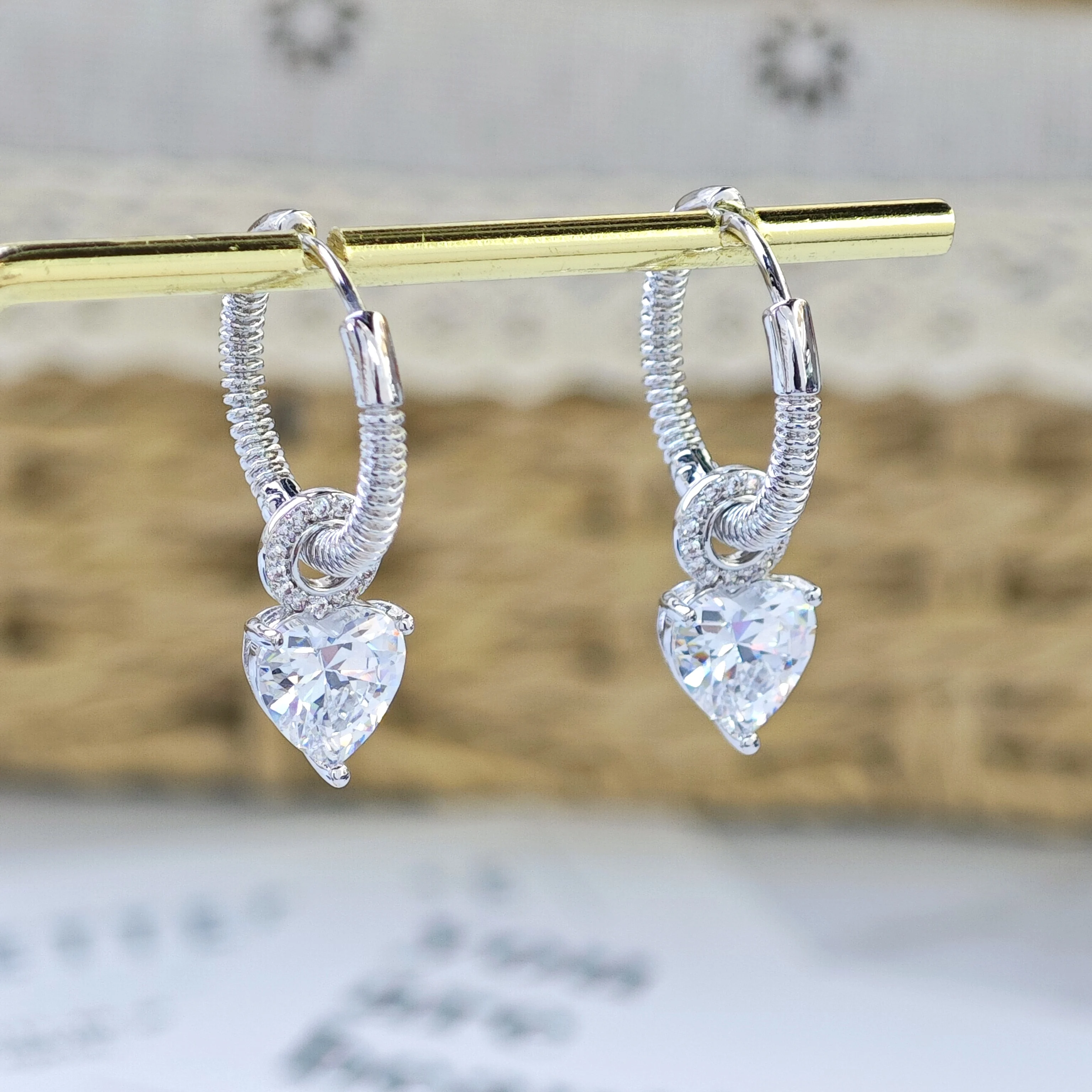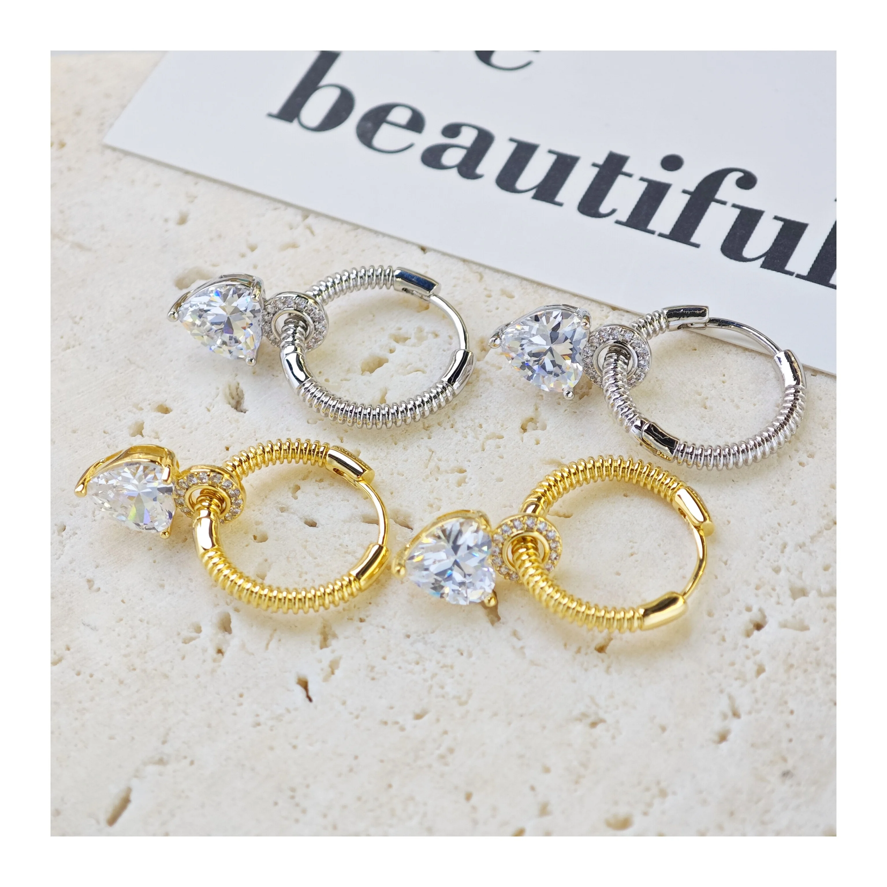 Ilona Fashion Women's 14K Gold Plated Drop Zirconia Heart Copper Pendant Earrings Trendy Round Hoop Huggie Earrings Jewelry