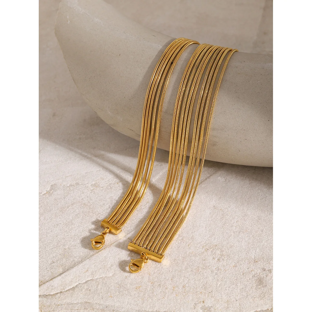 Ilona Trendy 18K Gold Plated Multi-Layer Round Snake Chain Bracelet Stainless Steel Geometric Bangle Jewelry for Party Wholesale