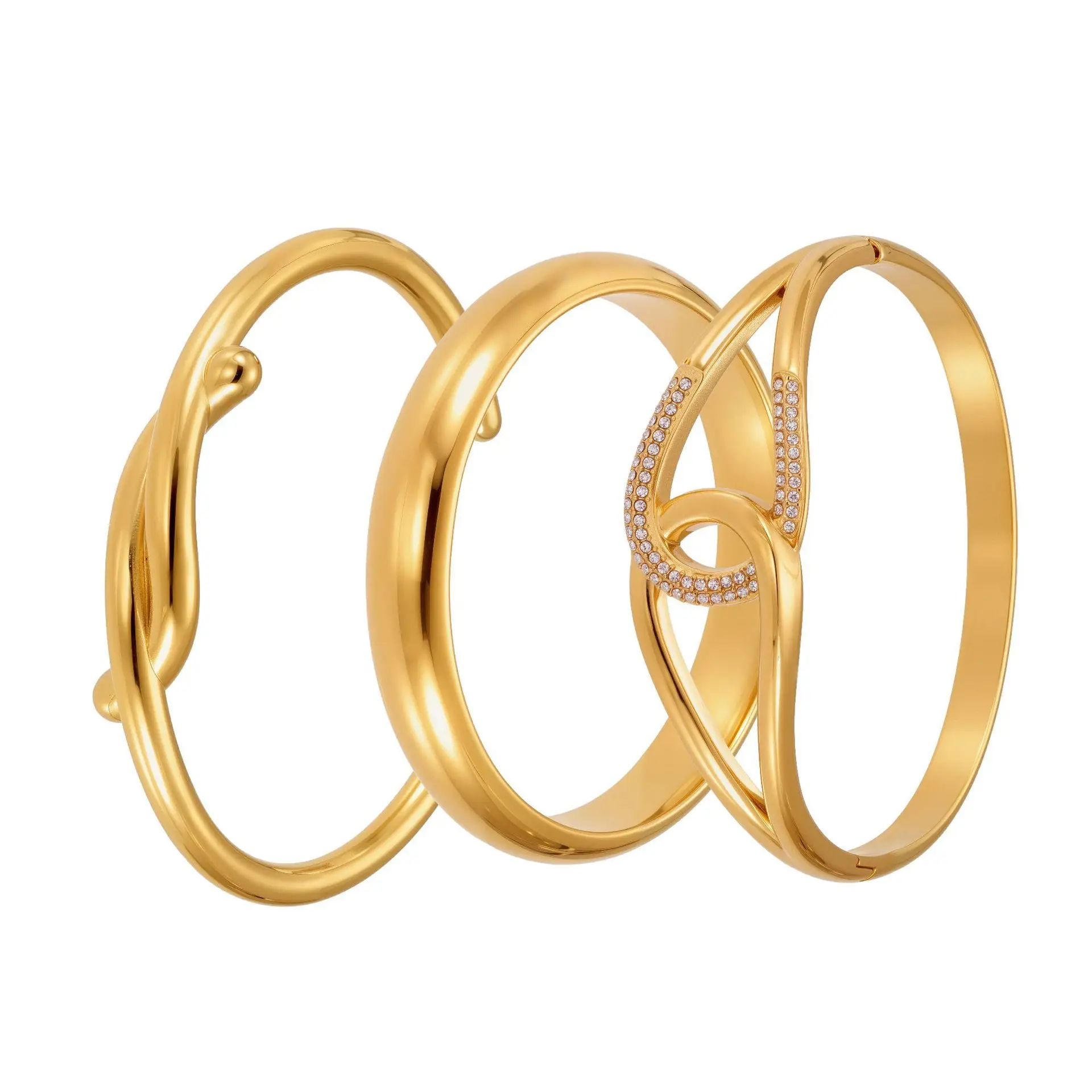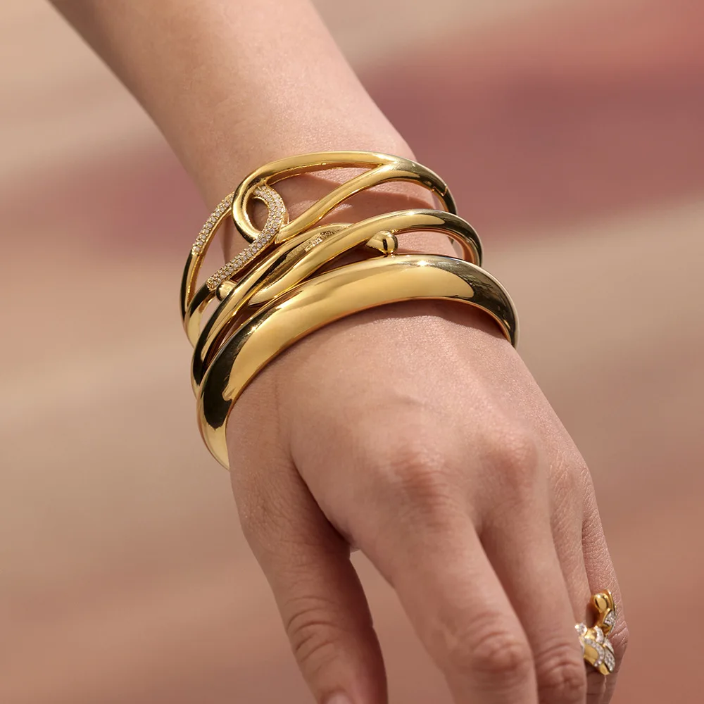 Ilona Fashion Simple Design Stainless Steel Horseshoe Buckle Open Zircon 18k Real Gold Plated No Fading Party Cuff Bangles