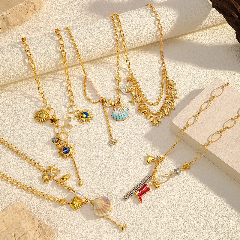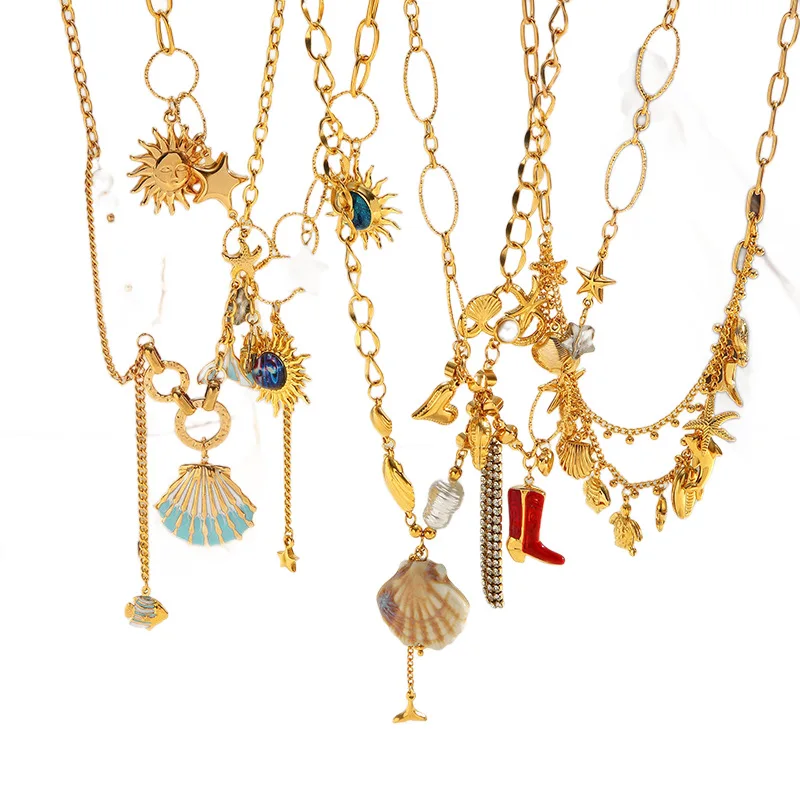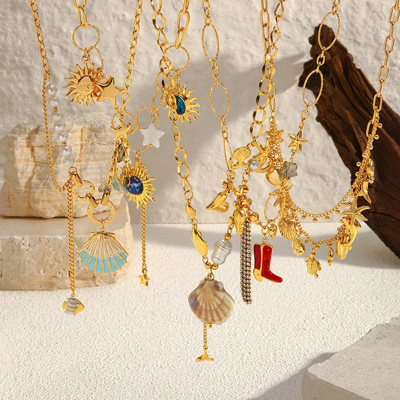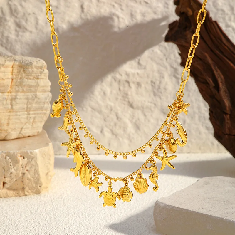 Ilona Ocean Wind Shell Starfish 18k Gold Plated Stainless Steel Pendant Necklace Anti Tarnish Fashion Jewelry Necklace for Women