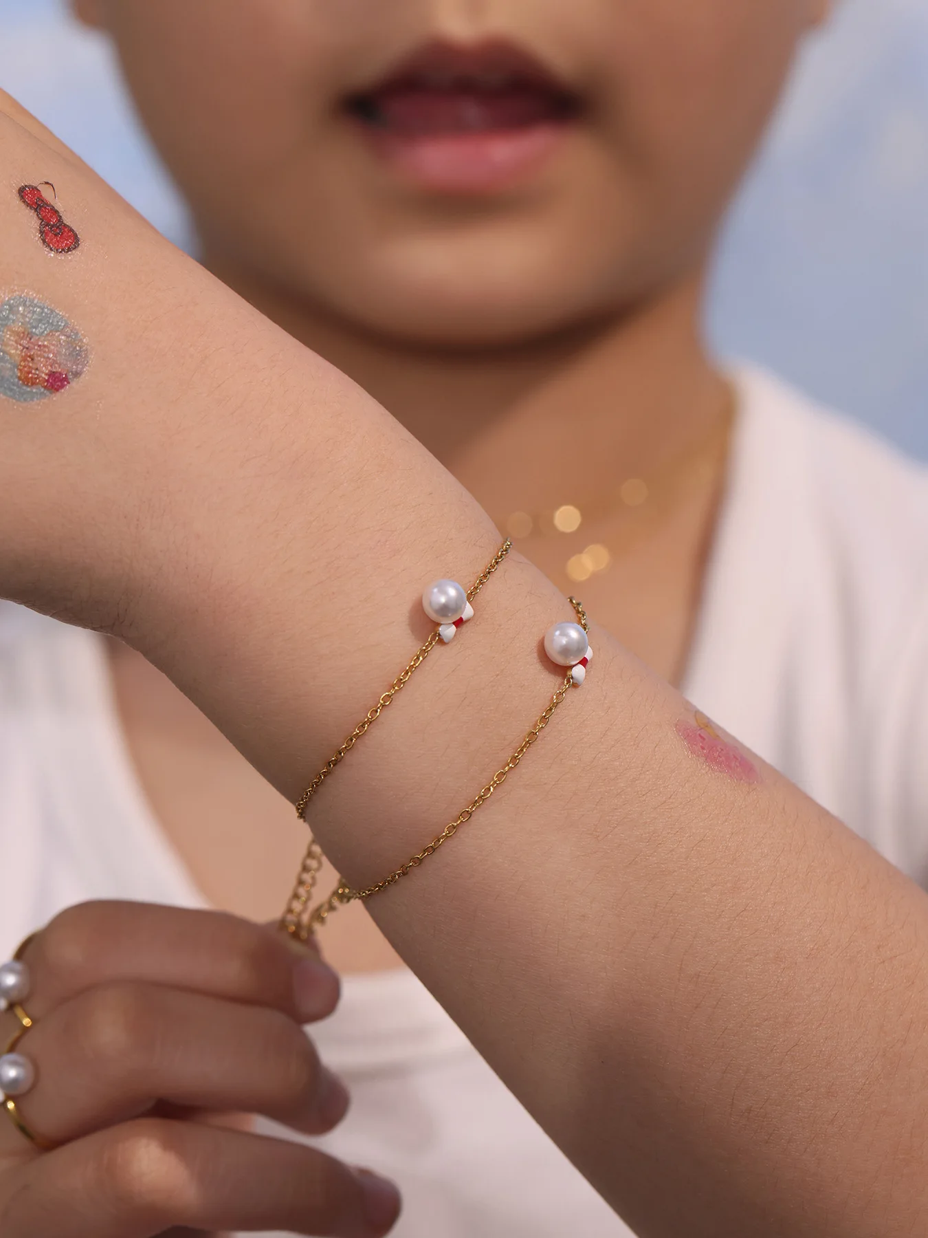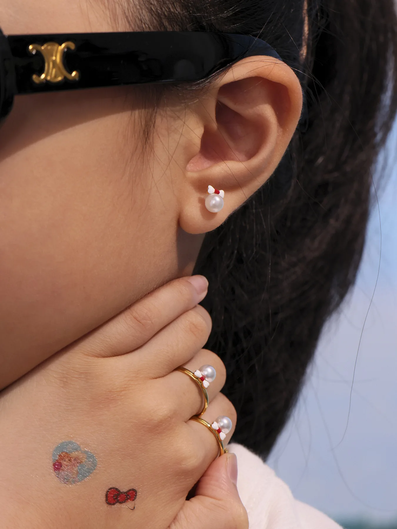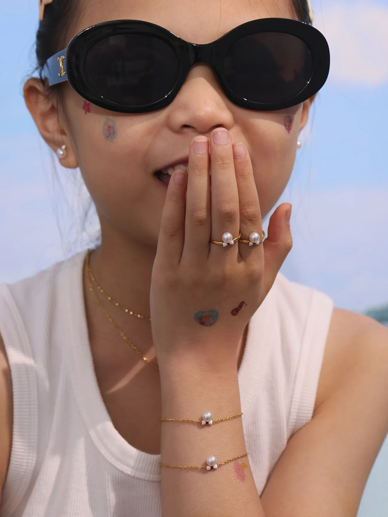 Fashion 18K Gold Plated Stainless Steel Jewelry Sets Pearl Bow-knot Necklace Bracelet Earrings Ring Sets Children's Jewelry Set