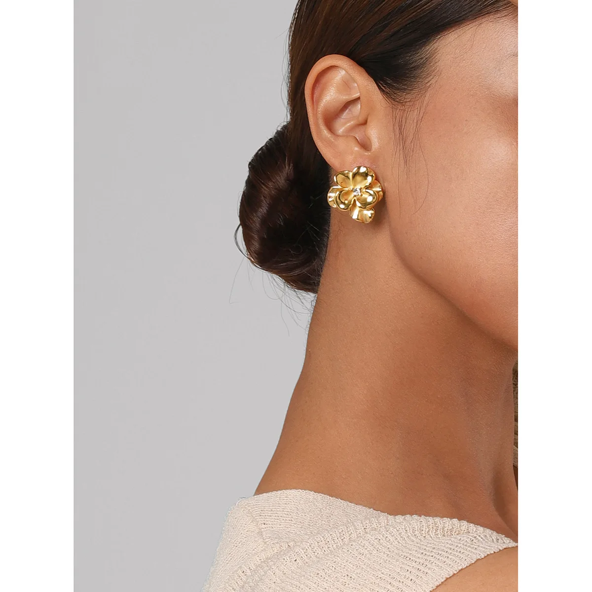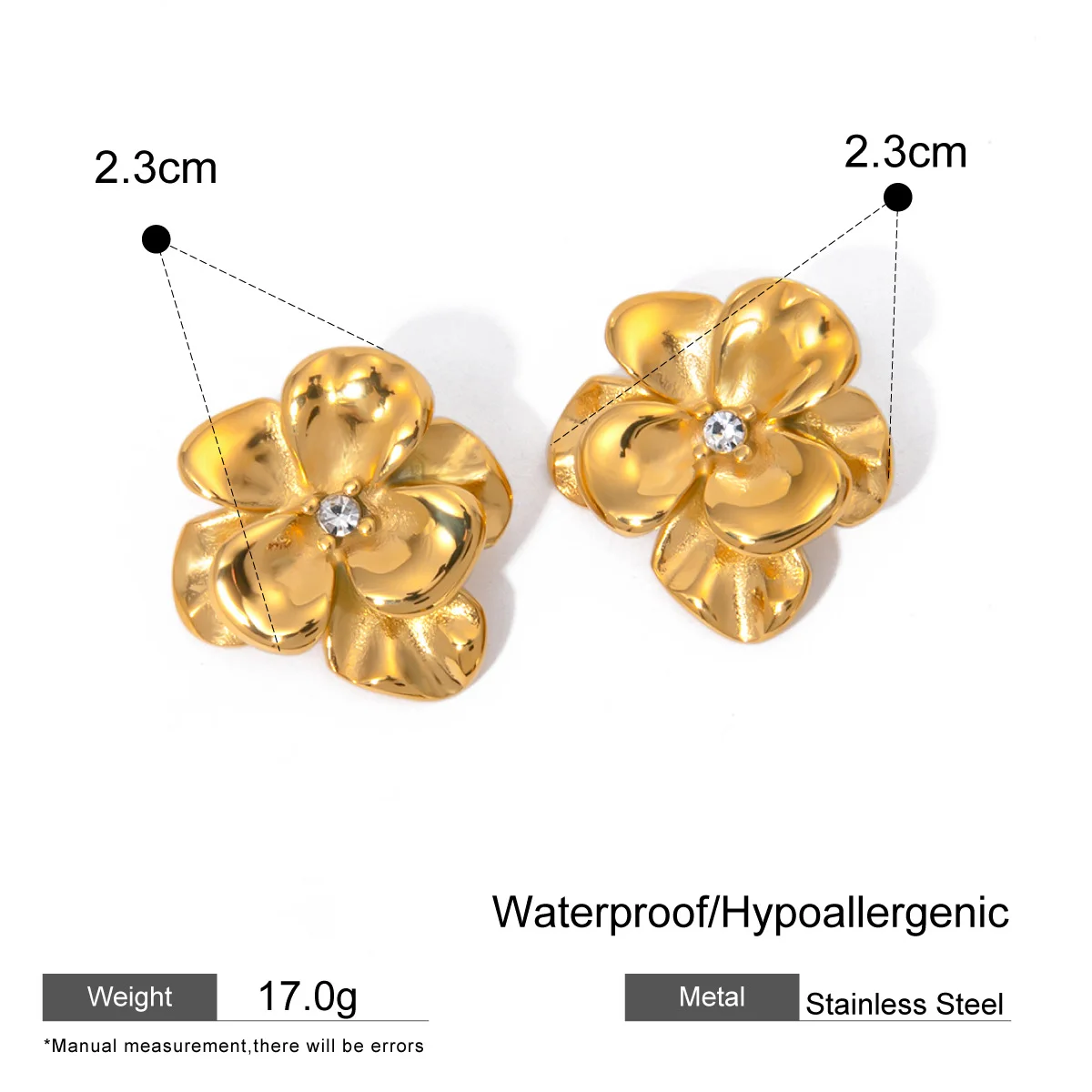Ilona Vintage Stainless Steel Stud Earrings 18K PVD Gold Plated Large Big Flower Texture Trendy Fashion Jewelry for Women