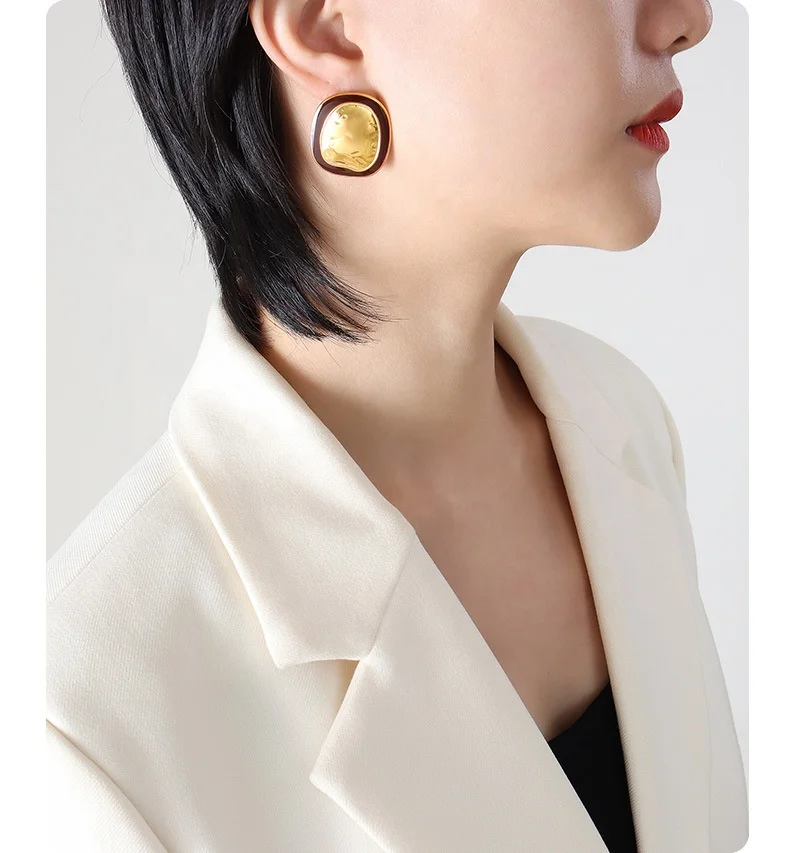 Vintage 18k Gold Plated Geometric-shaped Minimalist Stud Earrings for Women Trendy Retro Styling Jewelry