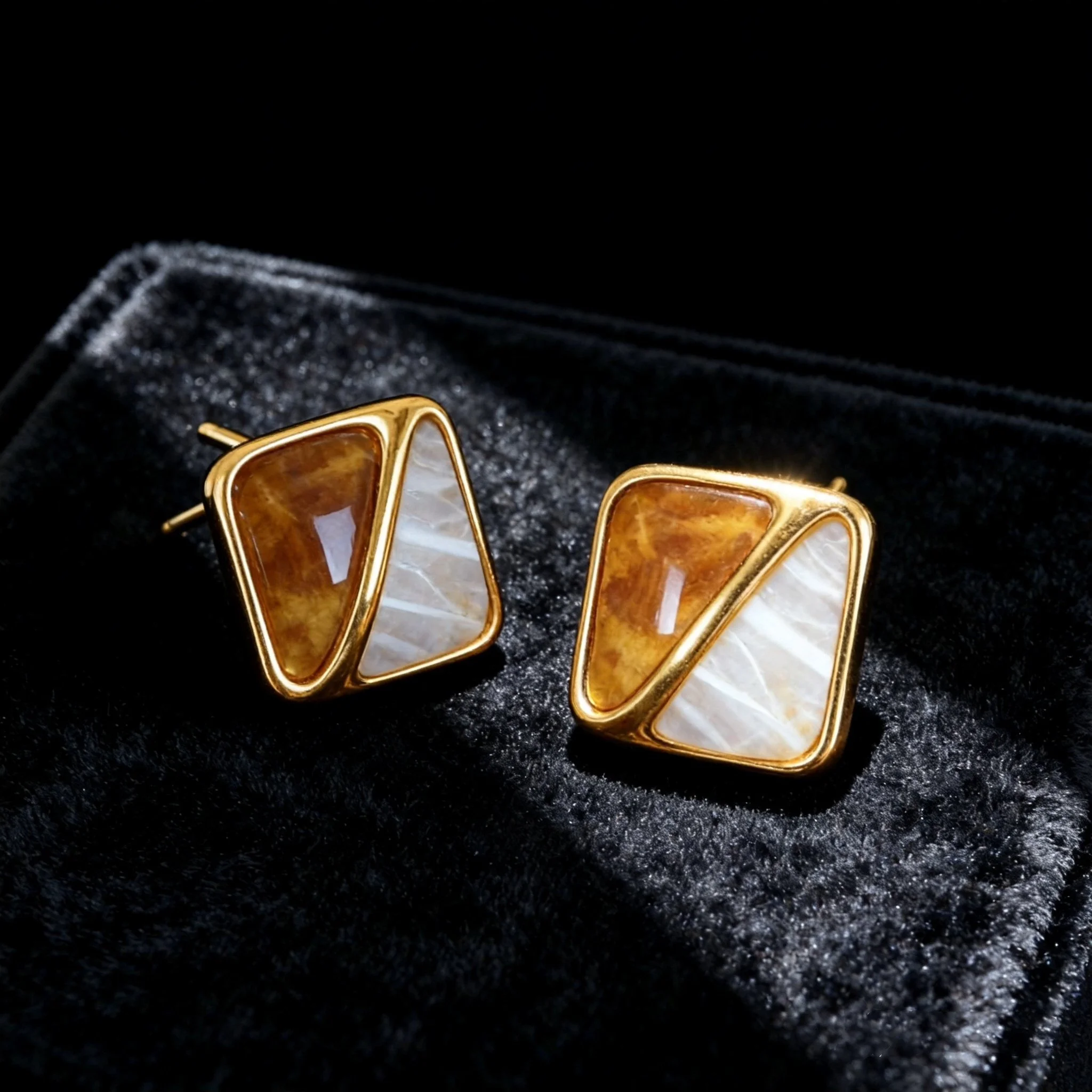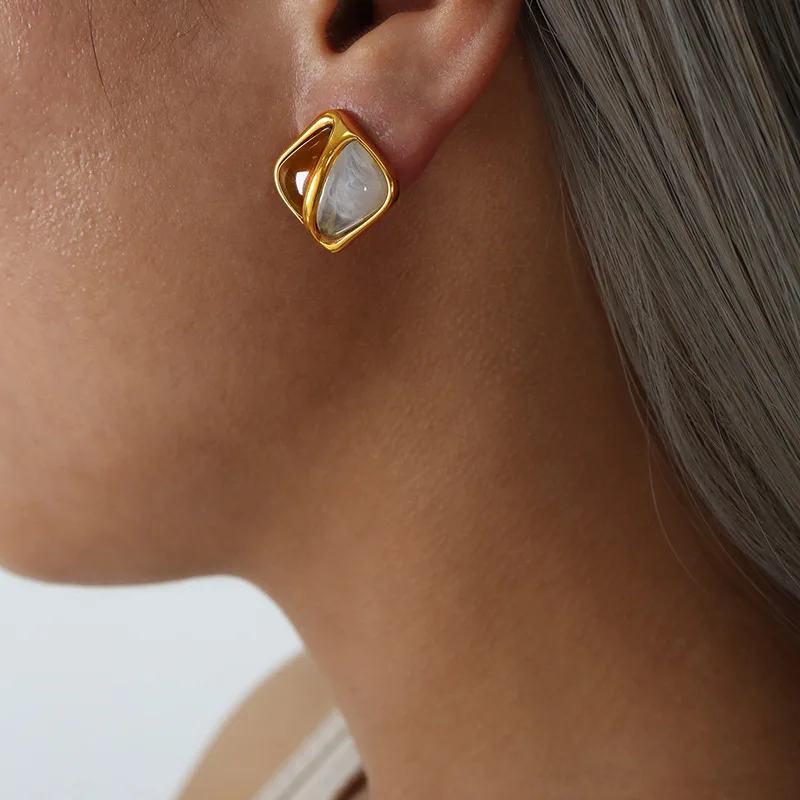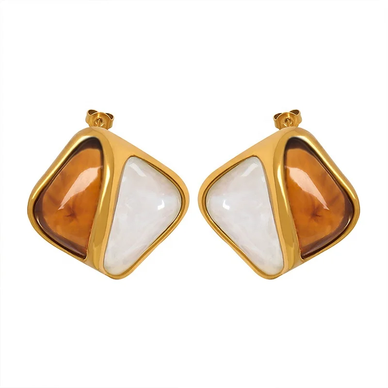Ilona Vintage Caramel Color Stainless Steel Stud Earrings Simple Square Statement Resin Non Tanish Earrings for Women