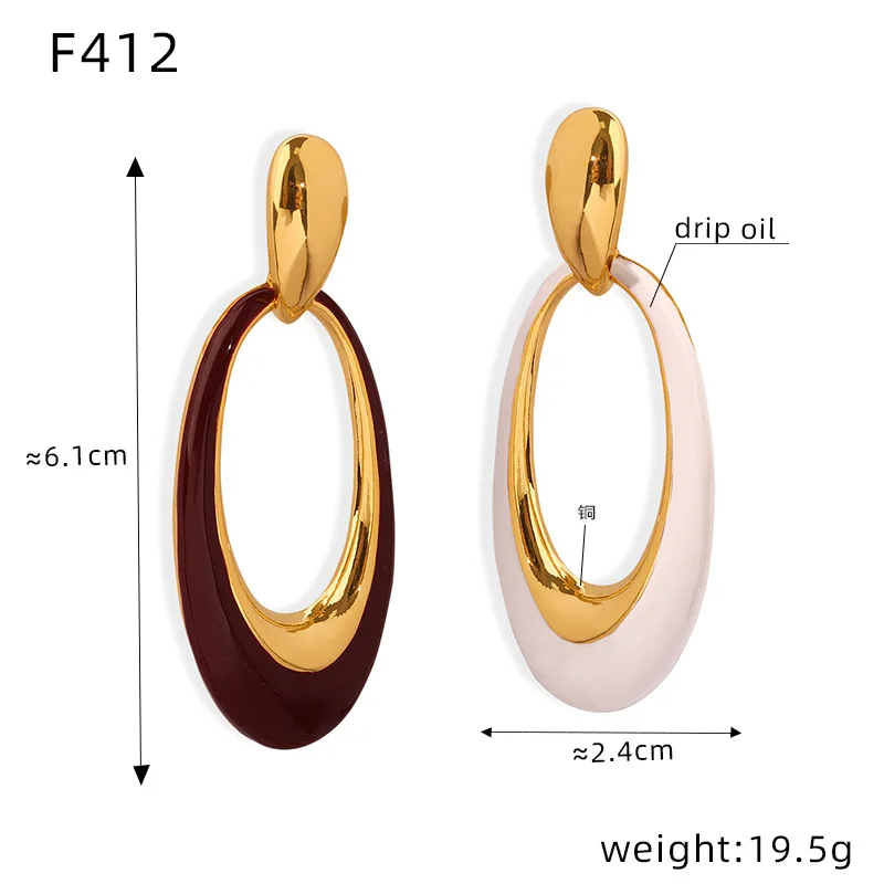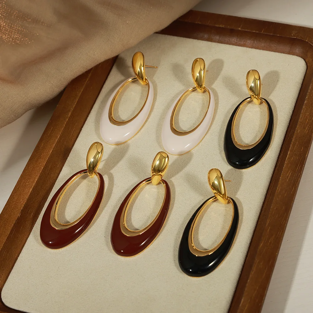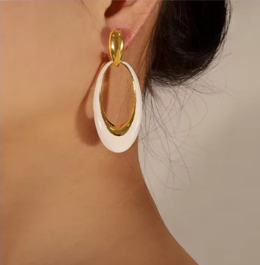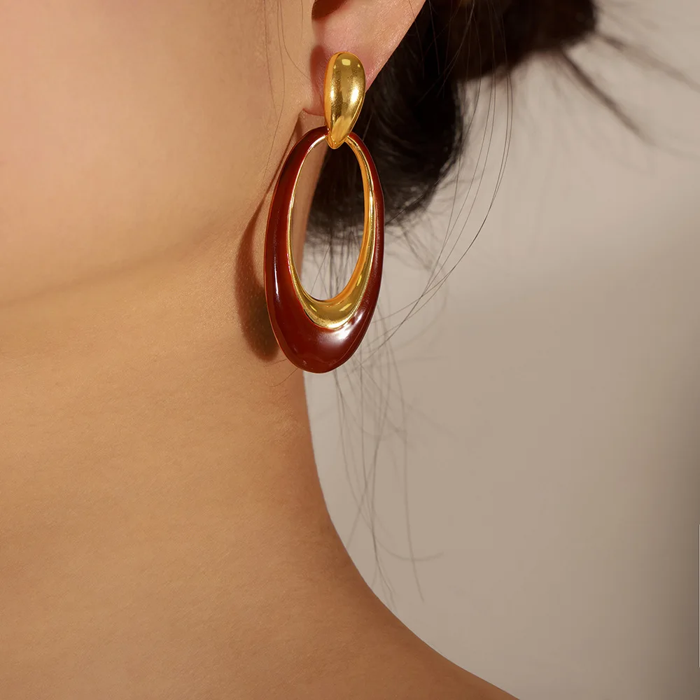 Women's 18K Gold Plated Copper Geometric Hollow Oval Drop Earrings Fashion Jewelry