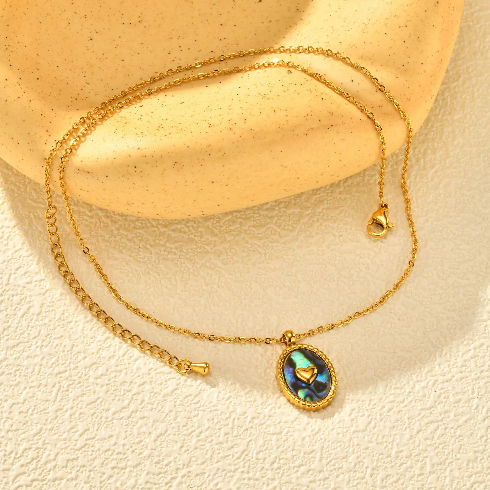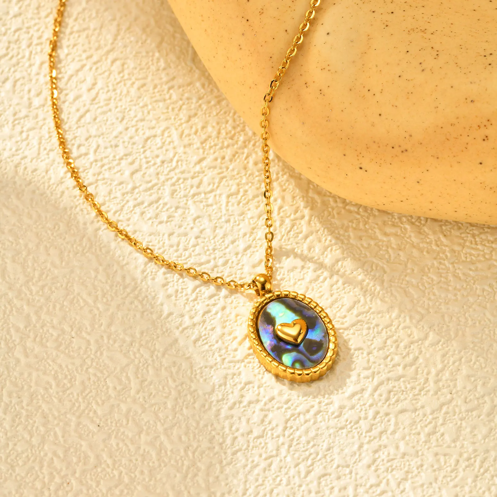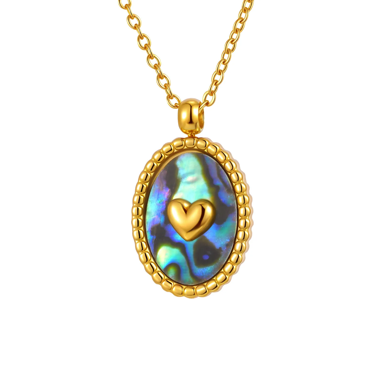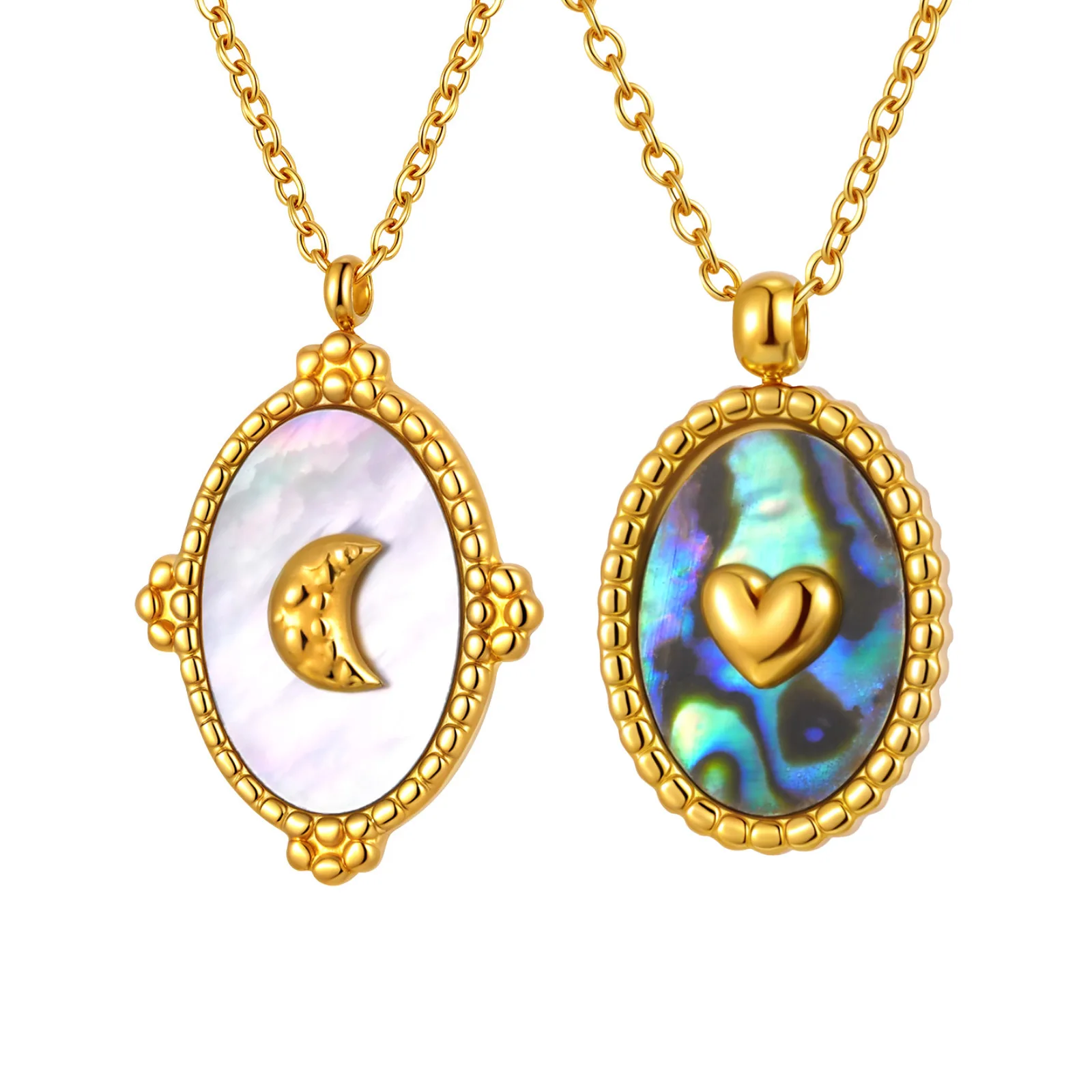 Retro Jewelry 18k Gold Plated Stainless Steel Jewelry Necklace Women Oval Moon Heart Abalone Shell Pendant Necklace