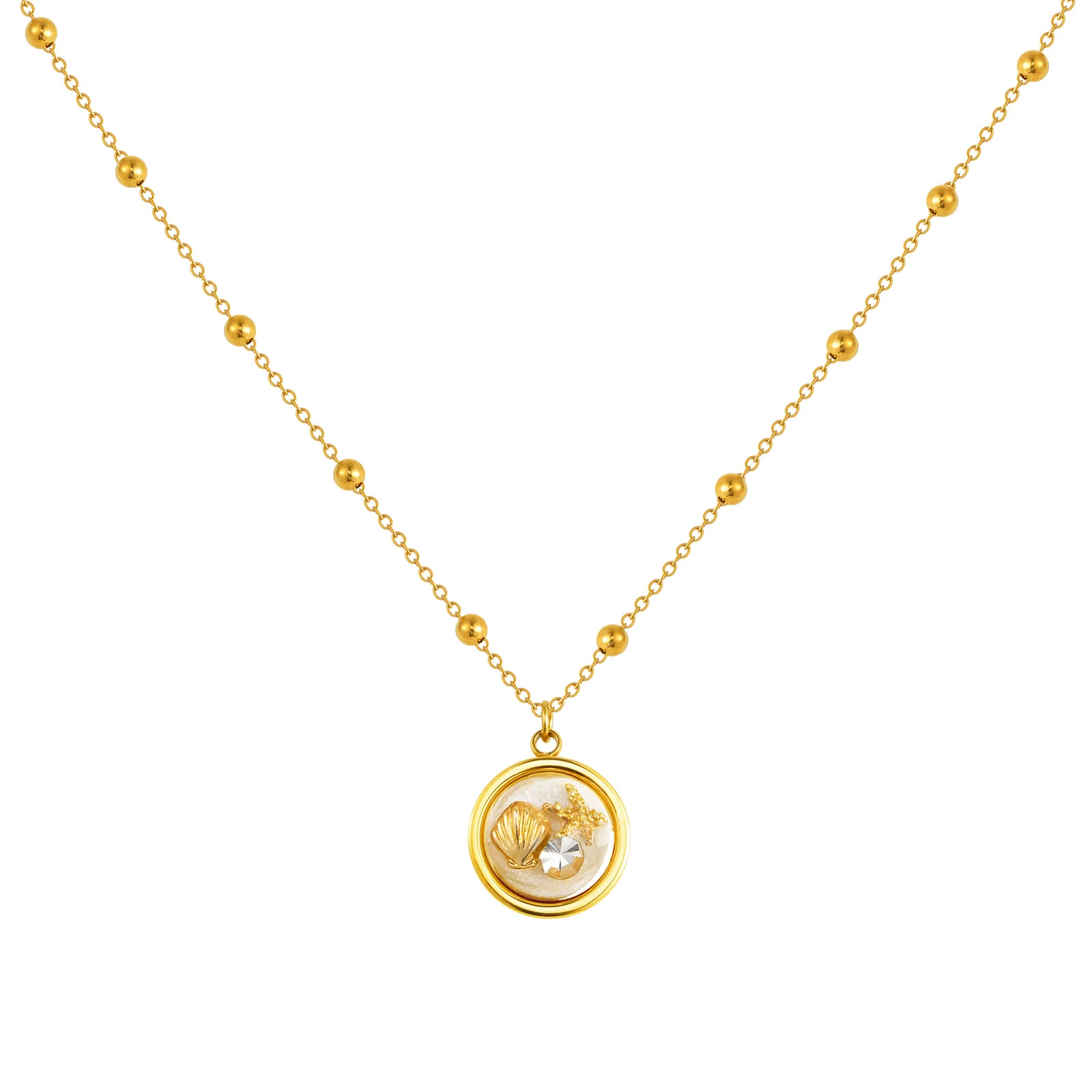 Trendy Summer Ocean Style Stainless Steel Ball Spacer Chain Resin Brand Necklace Starfish Shell Pendant Necklace for Women