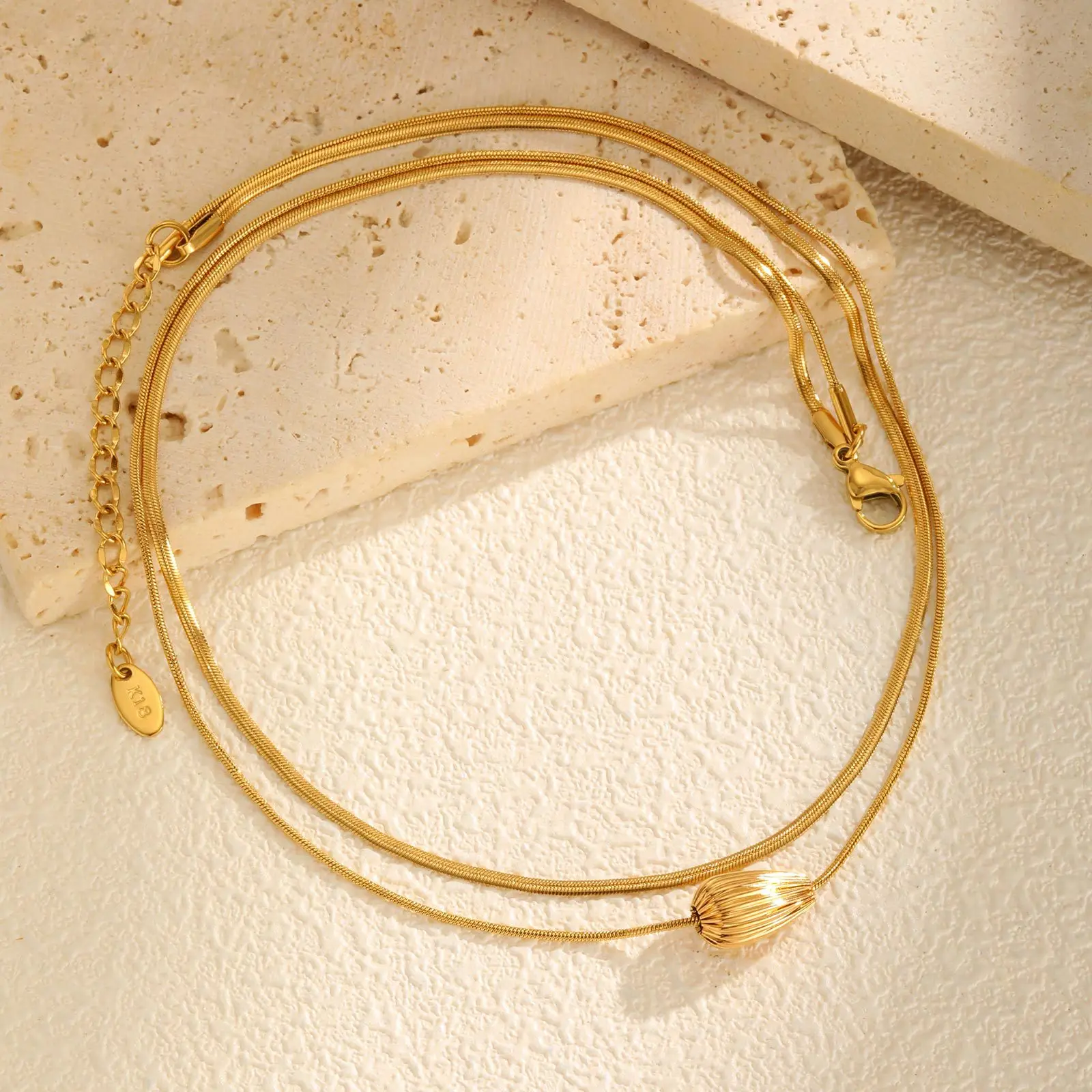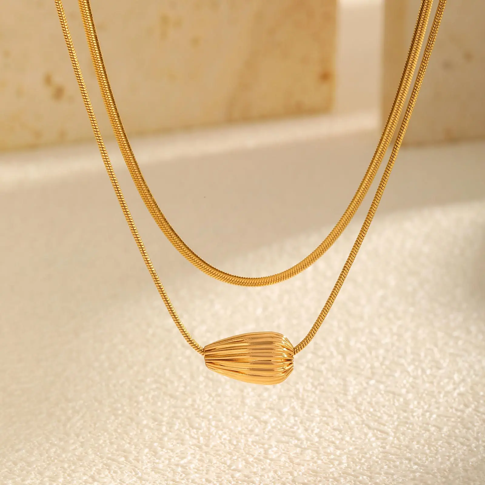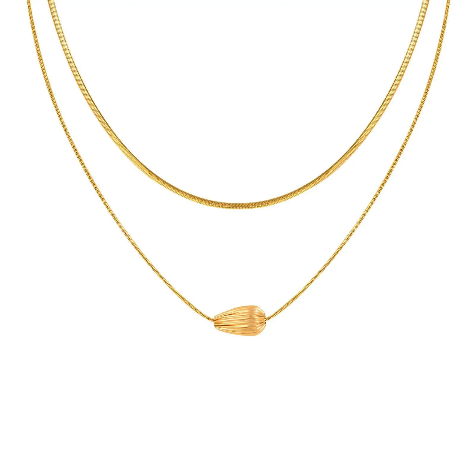 Fashion Jewelry 18k Gold Plated Stainless Steel Layered Necklace Water Drop Spacer Snake Chain Charm Beads Necklace