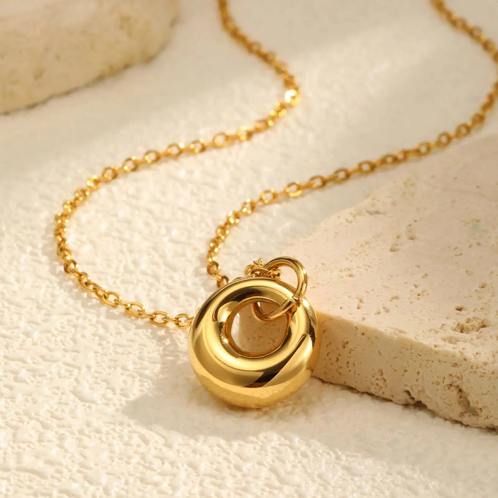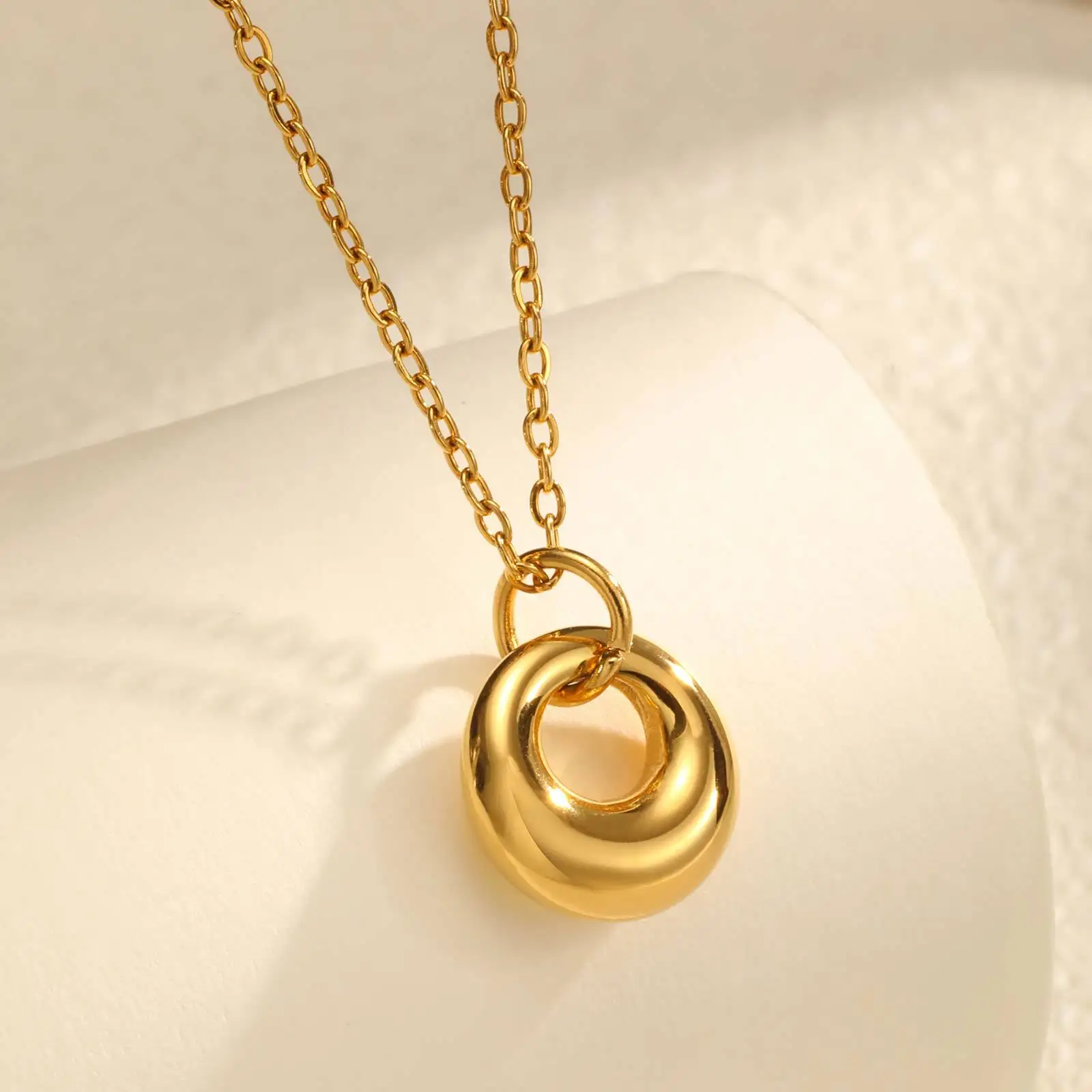 Minimalist 18k Gold Plated Circles Pendant Necklaces Stainless Steel Round Pendant Necklace for Women
