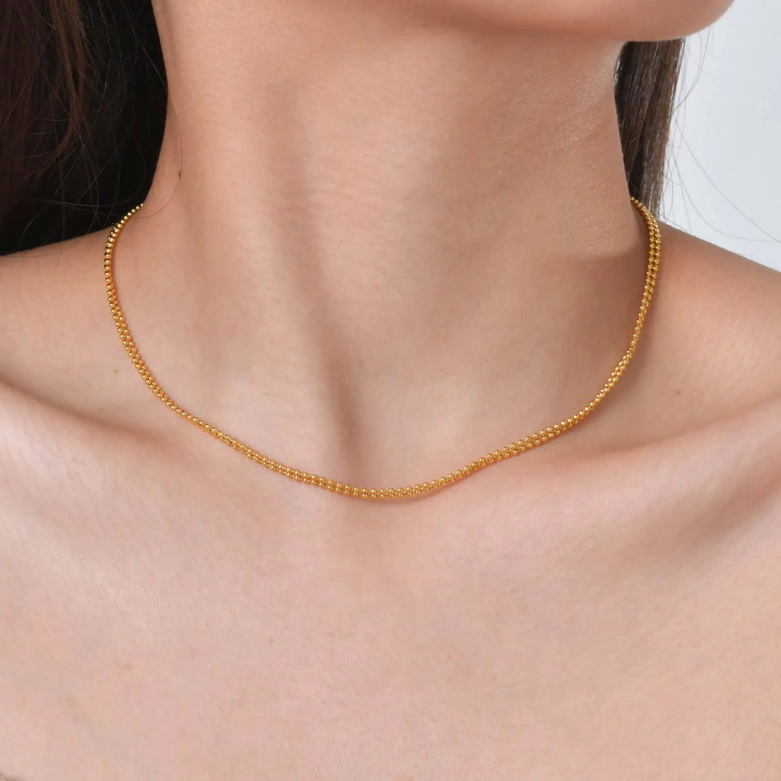 Minimalist Ins Style Stainless Steel Hollowed Out Chain Necklace Women's Double Layer Bead Chain Necklace