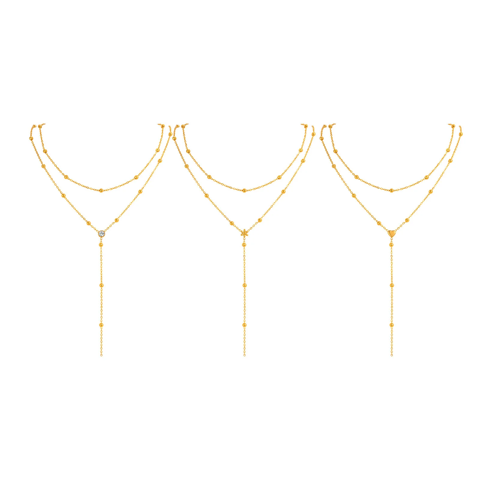 New Fashion Multilayer Stacked Collarbone Necklace Round Bead Long Fringe Gold Y Chain Women's Necklaces