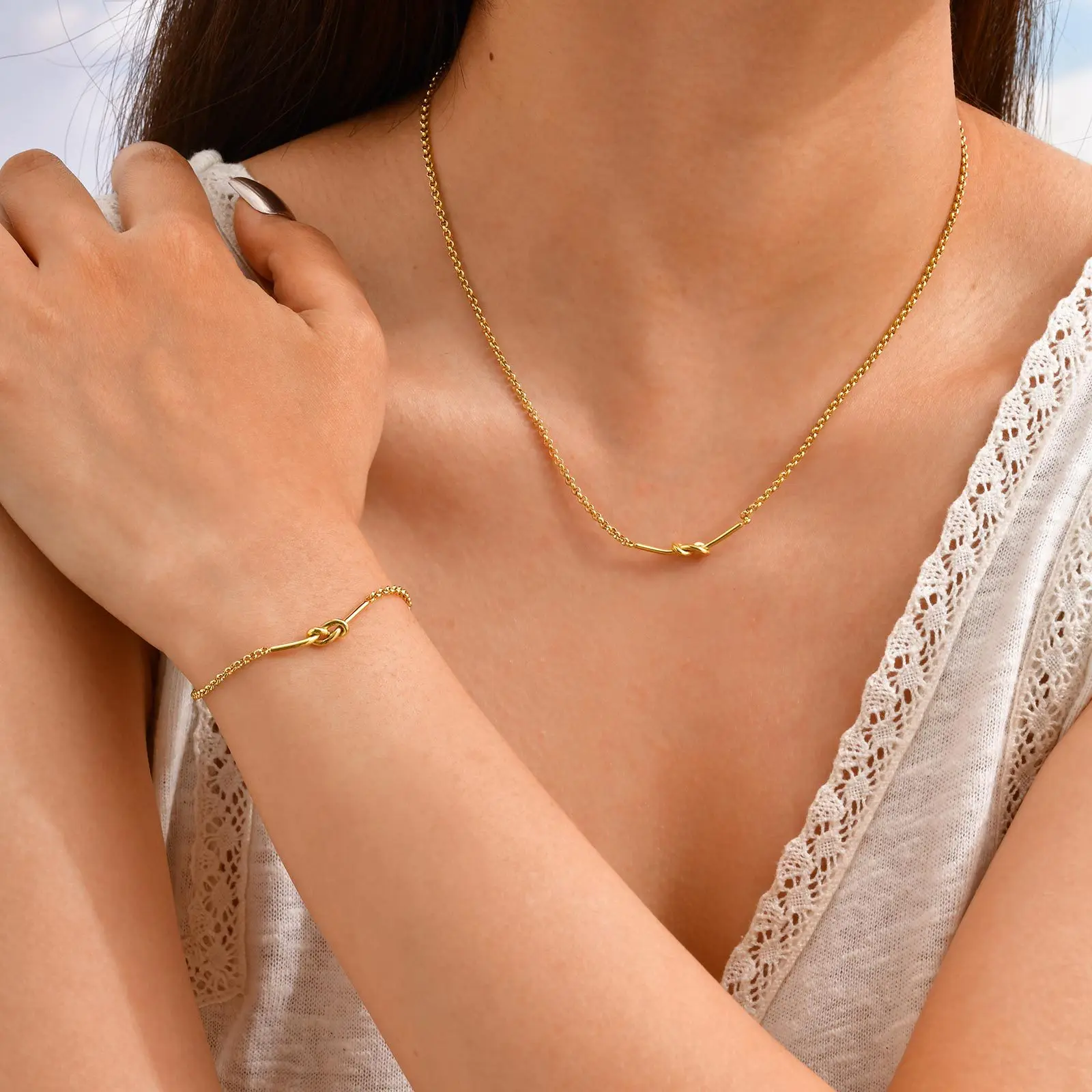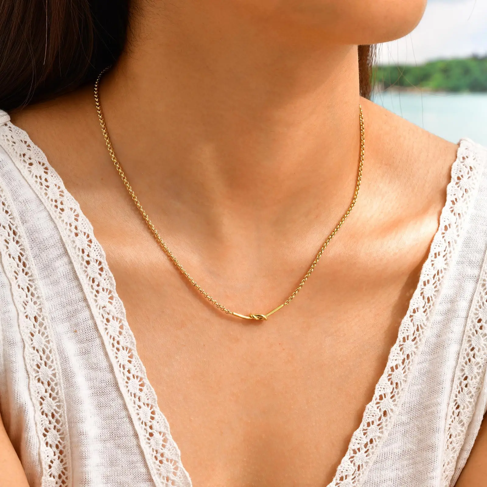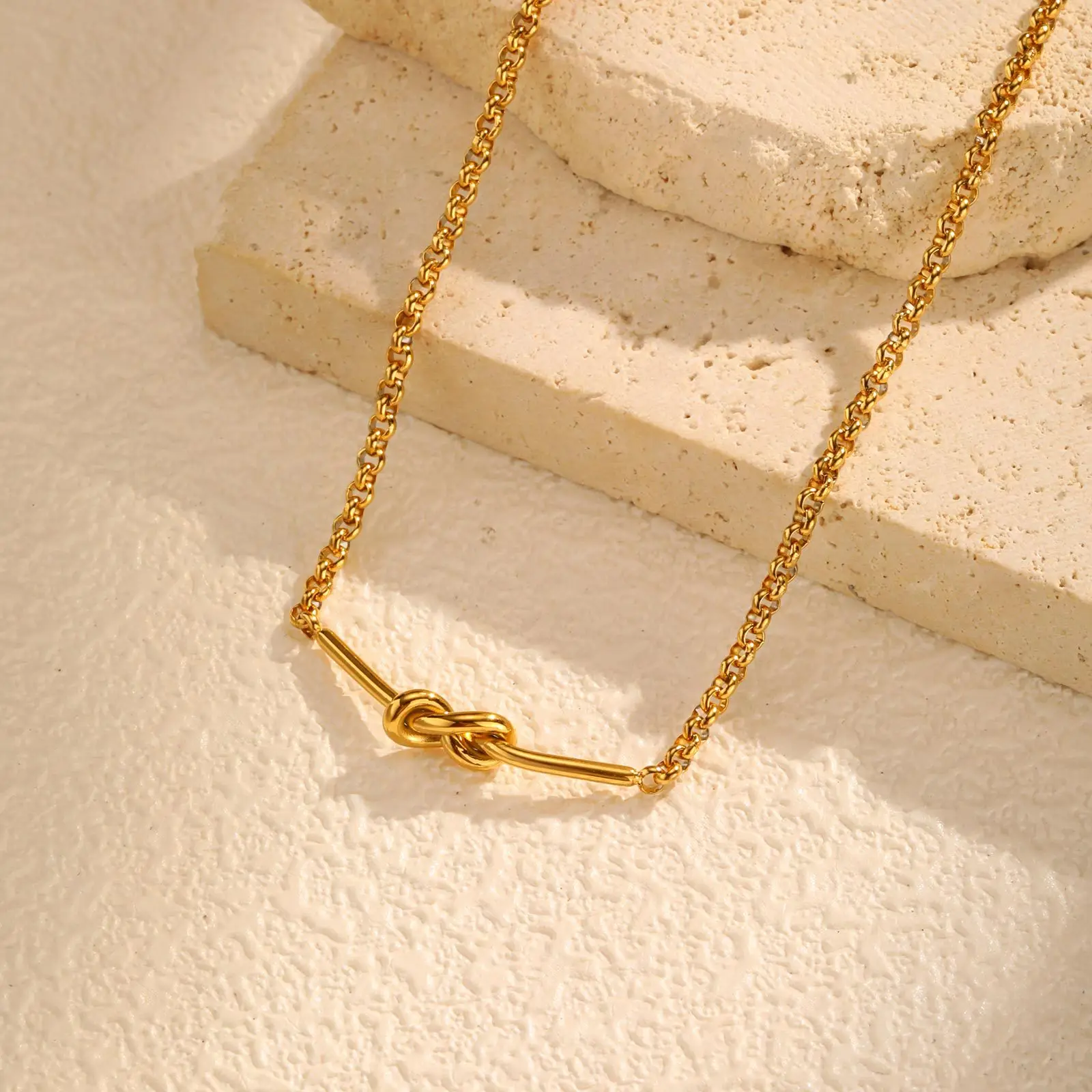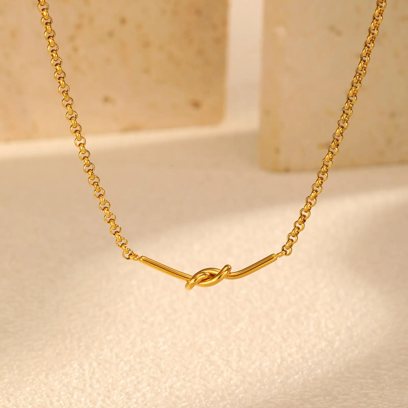 Minimal Jewelry Design Knot Clavicle Chain Necklace Gold Plated Stainless Steel Necklace for Women